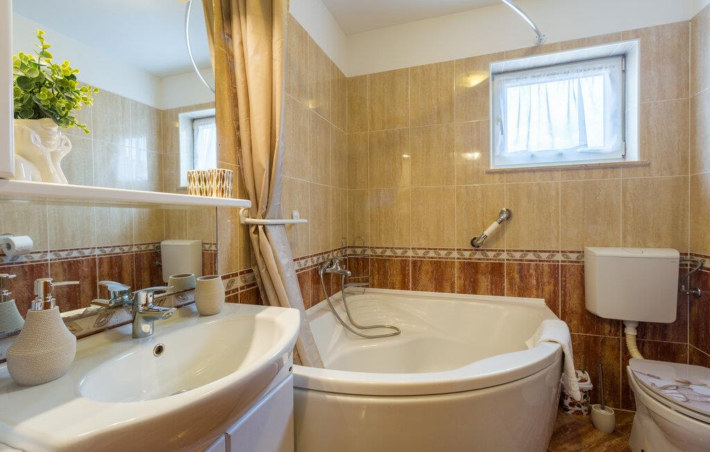 Badeværelse (nr. 1) - WC. Varmt og koldt vand. Badekar