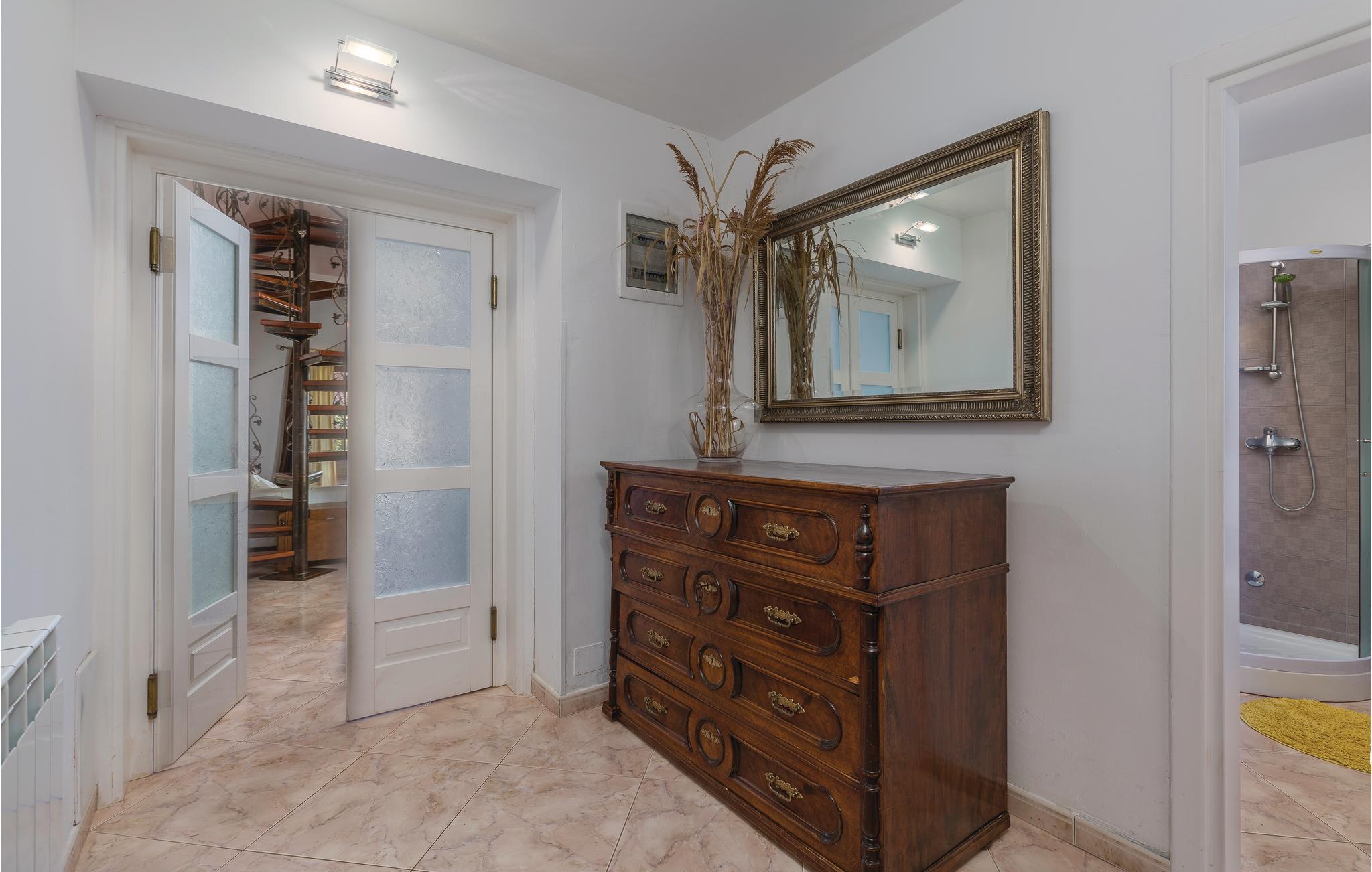 Dette smagfulde og moderne indrettede familiehus, med privat pool, er oplagt til en vellykket og uforglemmelig ferie. På den indhegnede grund, med overdækket terrasse, er der garanteret privatsfære. I kan tilberede lækre retter på grillen, udbuddet af gode kroatiske råvarer er stort. Børnene vil hurtigt forelske sig i legepladsen hvor der er rutsjebane, vippe og gynge - her kan de tilbringe timevis med leg. I jeres helt egen pool kan I forfriske jer og pjaske eller svømme alt efter lyst på de mange varme dage. I kan finde ro i den skønne have med plæner, blomster og træer - en rigtig grøn oase. I stuen er der en rummelig stue med køkken og via en vindetrappe kommer i op til 1ste sal. I stuen er der desuden to soveværelser og et badeværelse og på første sal er der endnu et soveværelse. Centrum nås på få minutter i bil. Besøg Novigrad med attraktioner og flere dejlige strande, det vil blive en uforglemmelig oplevelse.