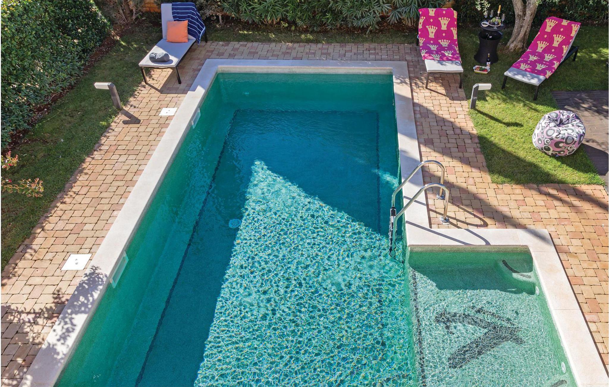 På det kendte feriemål, i byen Novigrad, i gode og rolige omgivelser tæt på havet ligger denne moderne villa. Den er luksuøst indrettet, i stueetagen ligger køkkenet, opholdsområdet med en stengrill, et soveværelse med bad og en sauna, hvor I kan slappe af. På første sal ligger to ekstra soveværelser med tilhørende badeværelser. I den velholdte have venter poolen med liggeområde og en opvarmet whirlpool på jer og indbyder til at slappe af. Ved siden af den er udekøkkenet med grill, hvor I kan lave lækker mad. Kør også til den lille bys centrum, hvor der venter talrige underholdende kulturarrangementer på jer.
