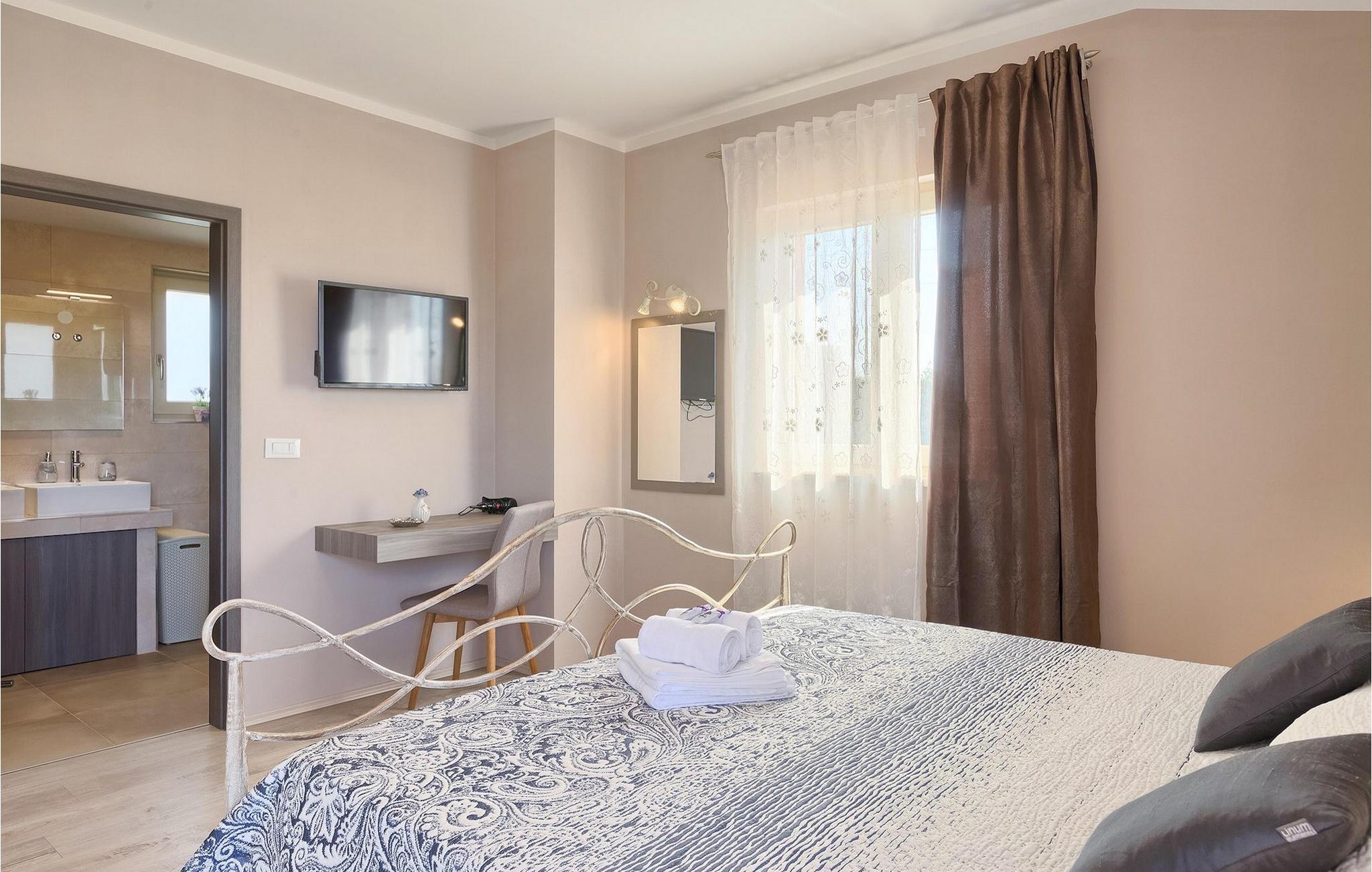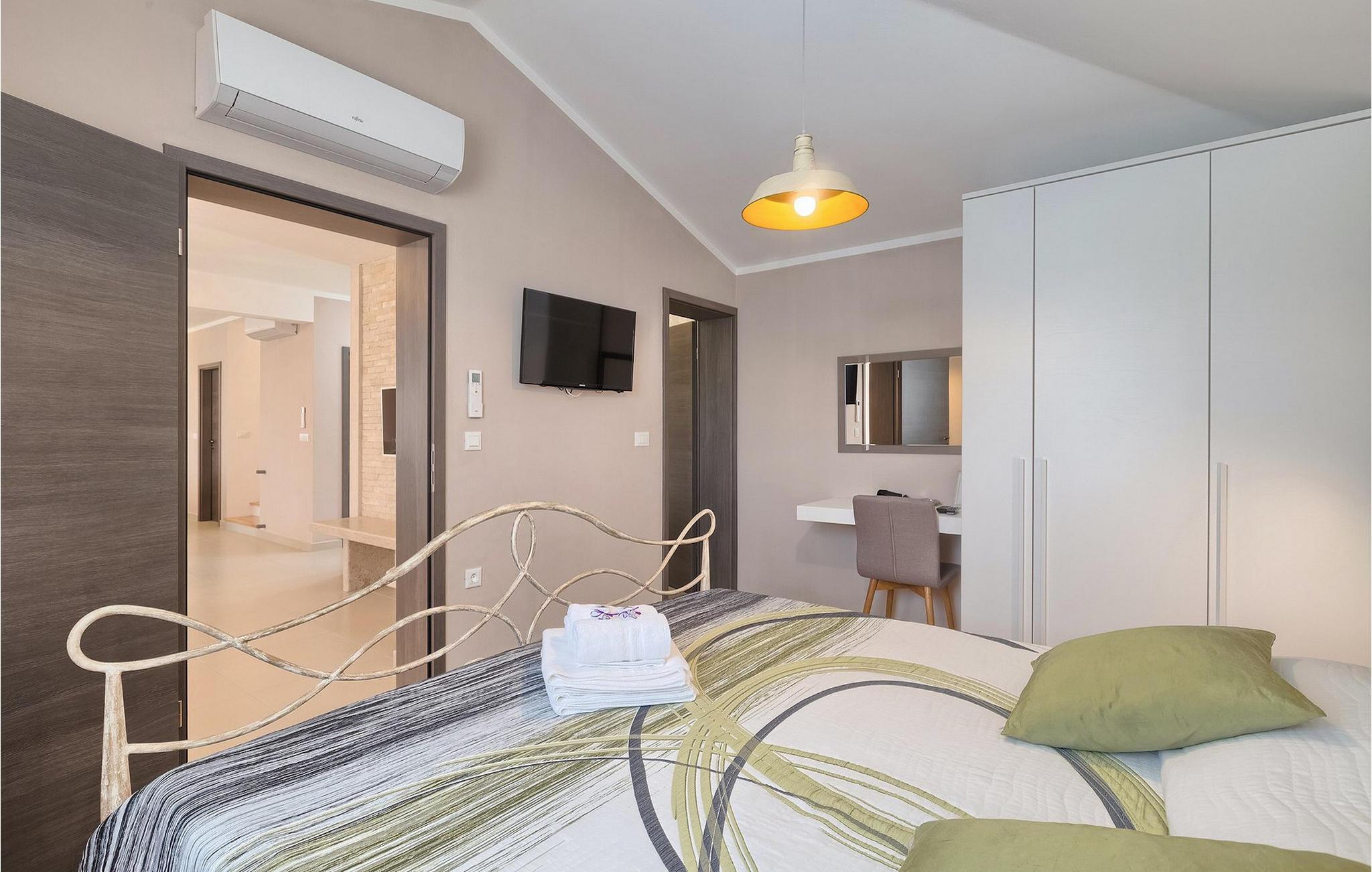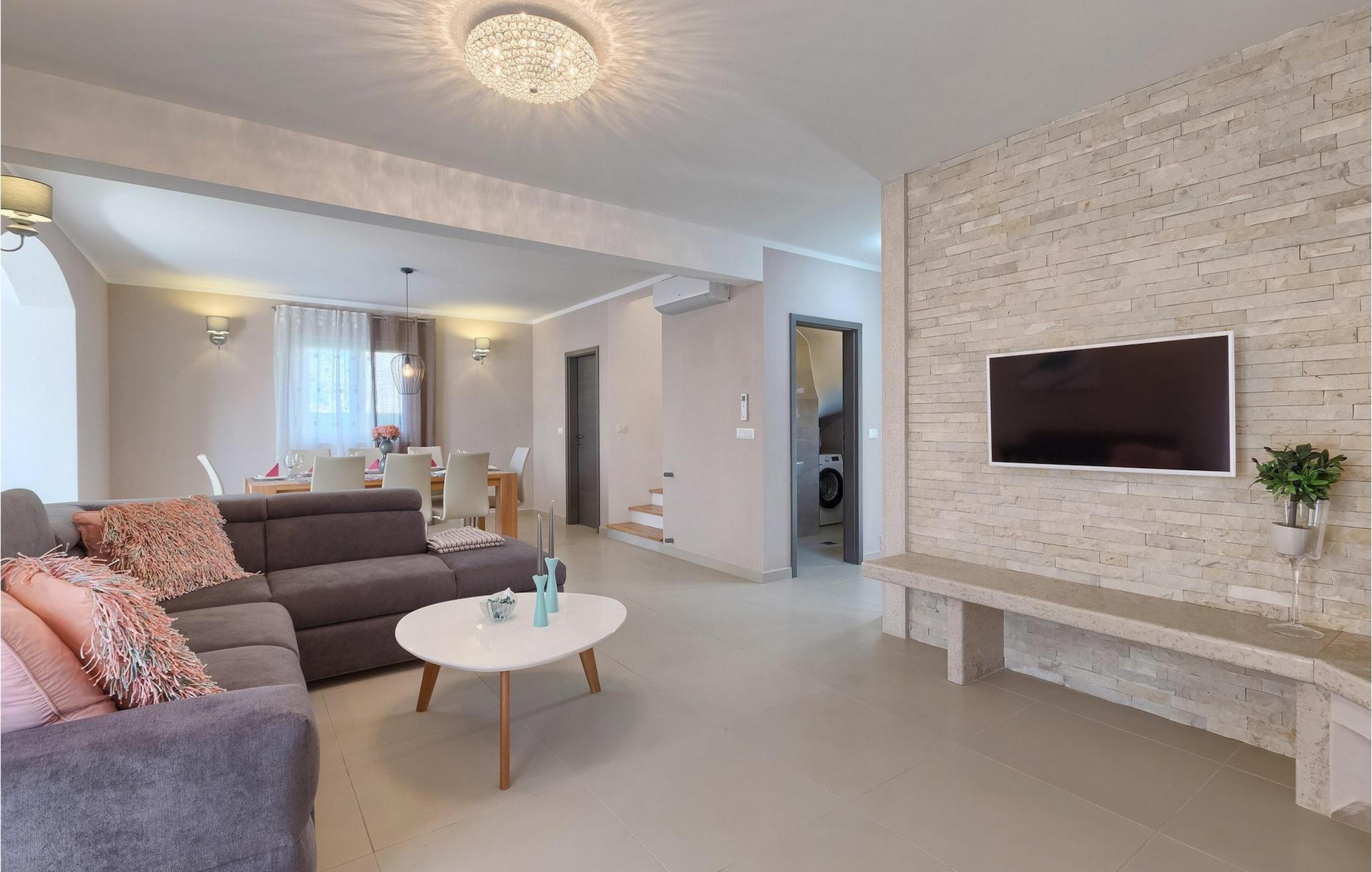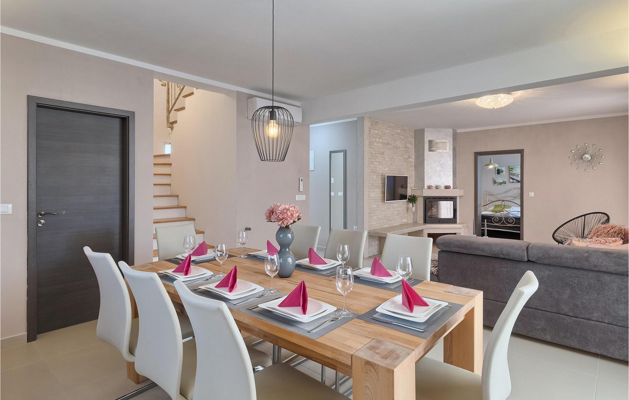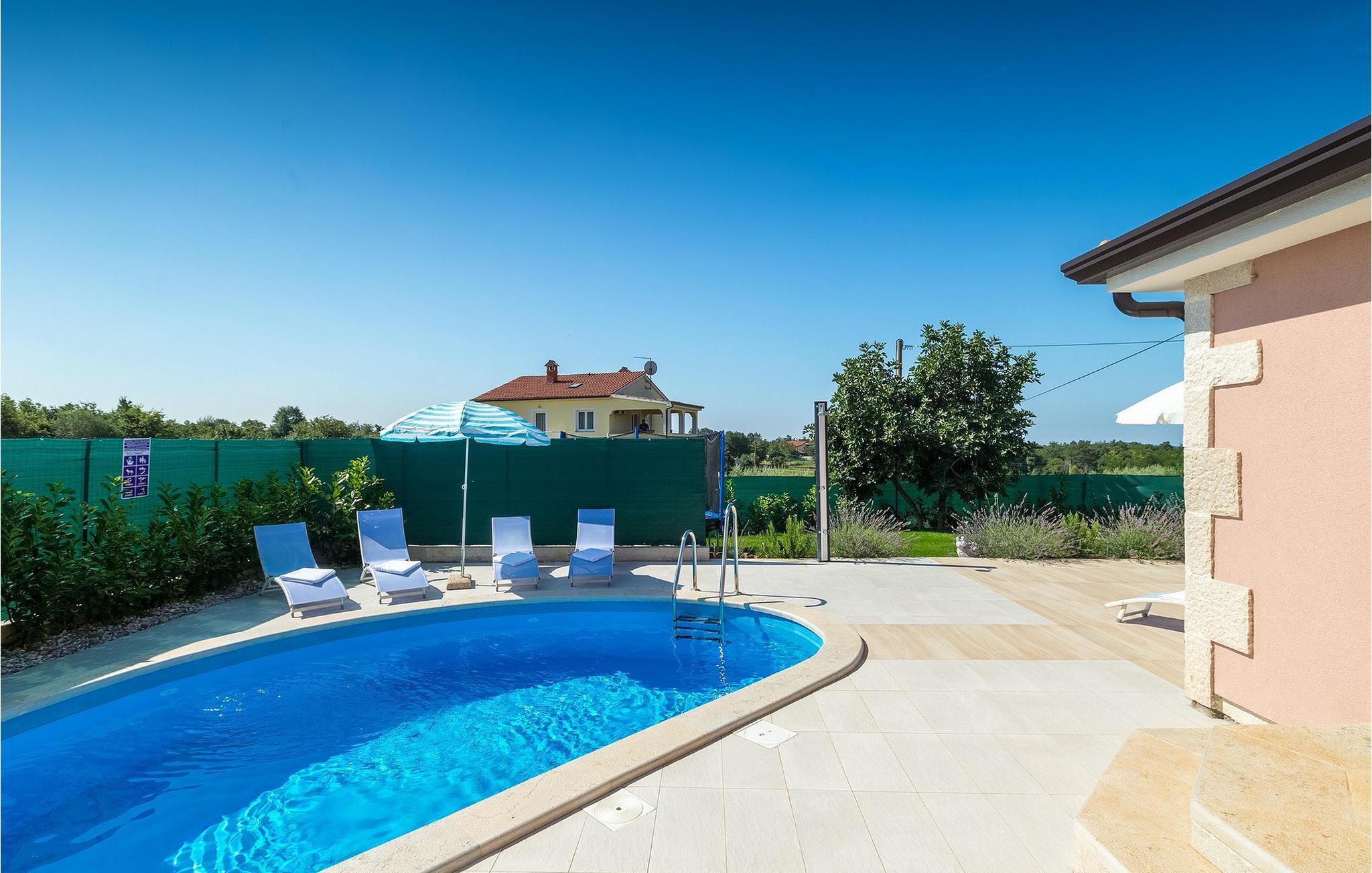 Dejlige Villa Murva er en 3-værelses villa nær Porec. Stueetagen består af et opholds- og spiseområde, forbundet med et fuldt udstyret køkken, som har direkte adgang til poolområdet i villaens have. Alle de tre soveværelser har aircondition og har dobbeltseng, tv og eget badeværelse. Et af soveværelserne ligger i stueetagen, mens den anden etage ligger på øverste etage og deler en hyggelig terrasse. Udenfor, i haven, er der en overdækket terrasse, hvor du kan nyde udendørs spisning og tilberede måltider på kulgrillen. Der er en lille græsplæne med trampolin, hvor børnene kan hygge sig og have det sjovt, mens I nyder solen på liggestolene ved siden af poolen. Villaen er den perfekte familieindkvartering, velegnet til op til 8 gæster, fuldt airconditioneret, med to private parkeringspladser og beliggende på et lille sted, men tæt på alle de faciliteter, du måtte have brug for under din ferie. :)