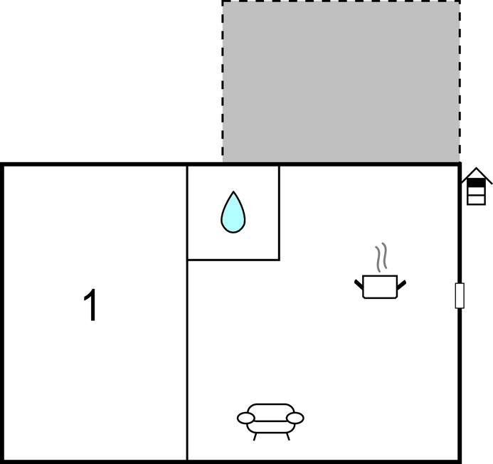 Opholdsstue/køkken - 1 Soveplads. (Sofa, madras eller lignende).
