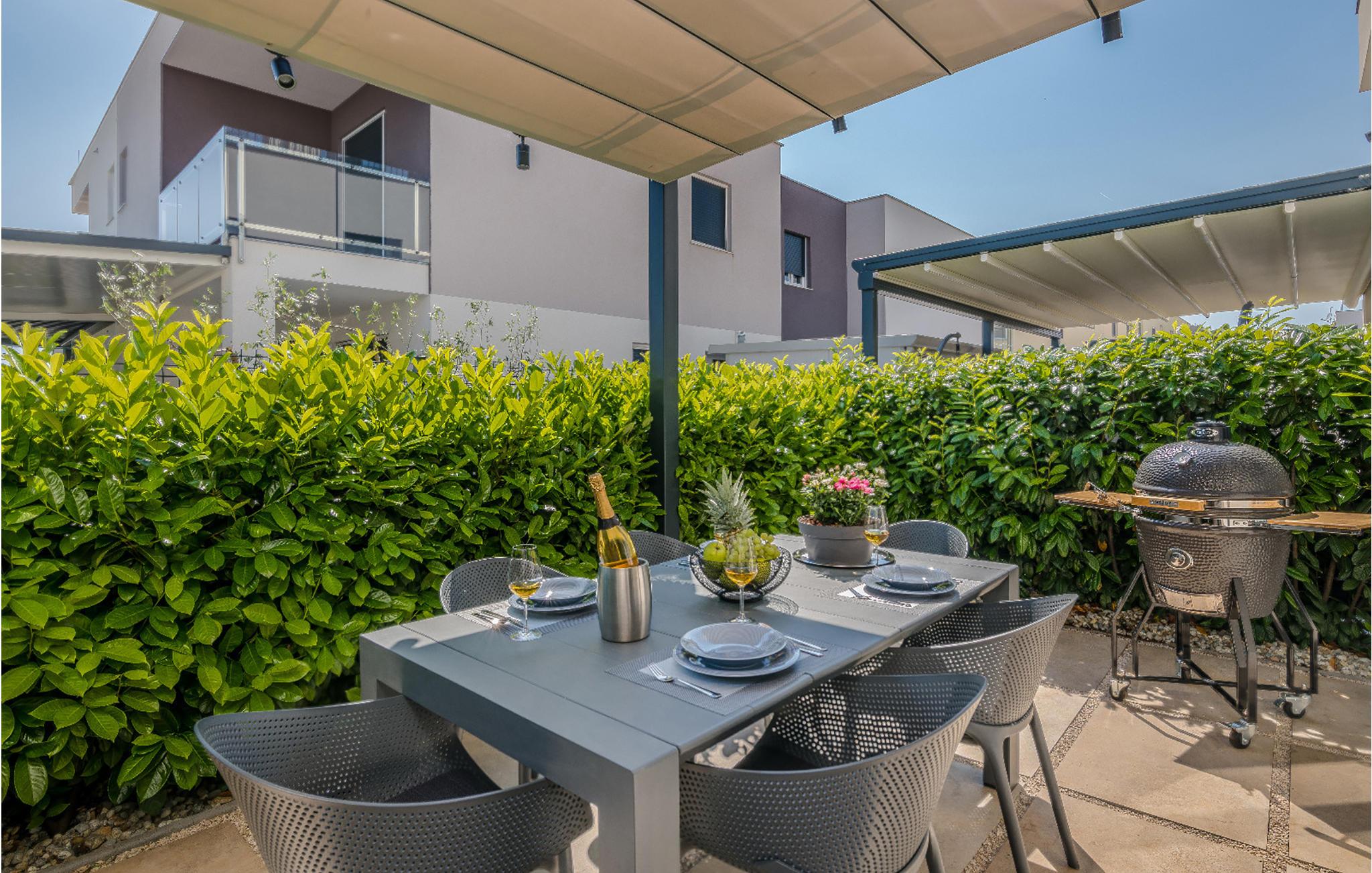Det moderne rækkehus tilbyder alt, hvad hjertet begærer. Det kombinerer alle bekvemmelighederne i et fuldt udstyret feriehus, hvorfra I kan nyde en dag på stranden i nærheden sammen med jeres familie.