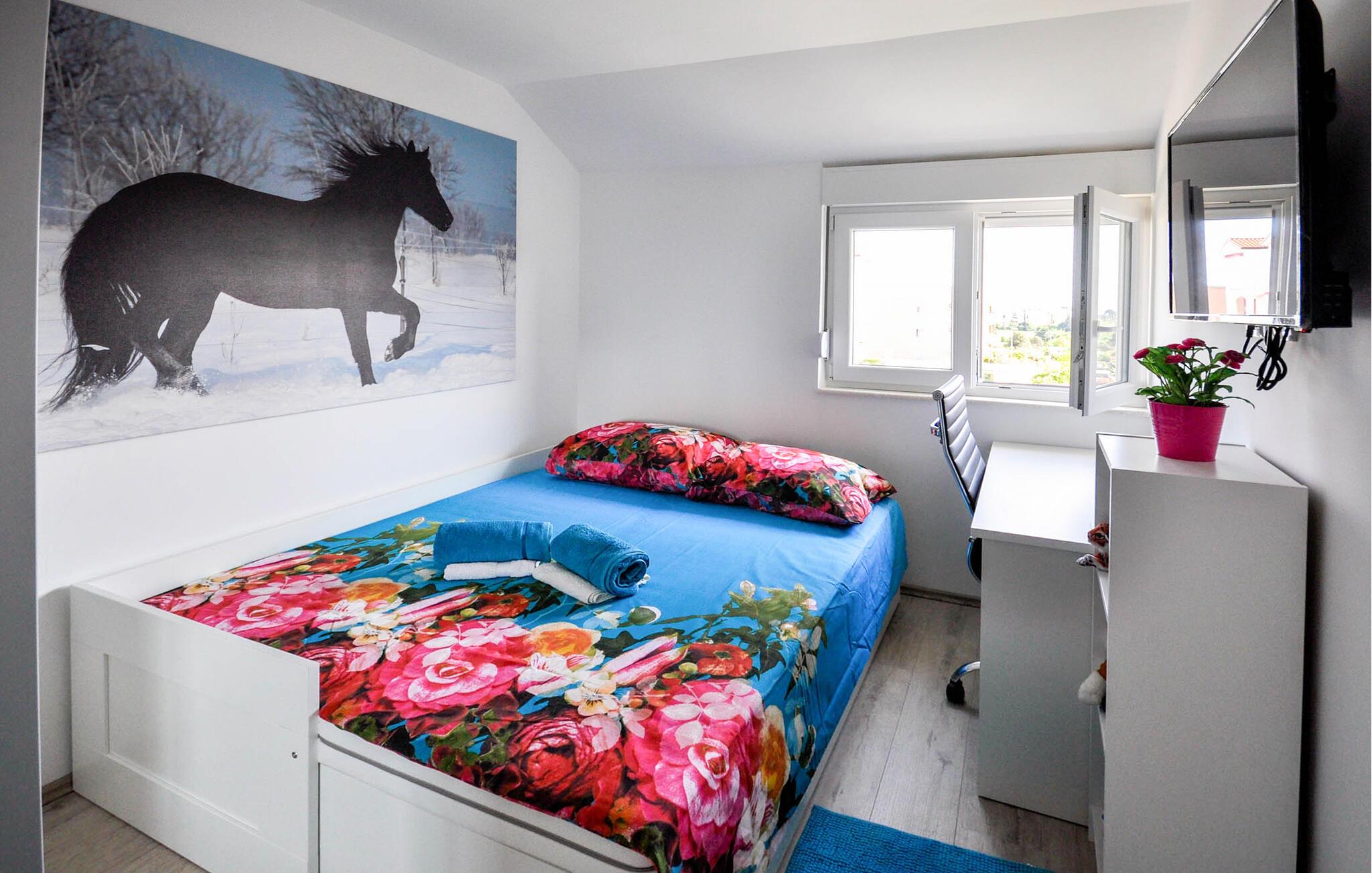 Lejligheden ligger kun få hundrede meter fra havet, så I kan gå en tur ned til stranden når som helst og nyde Adriaterhavets krystalklare vand. Takket være nærheden til centrum kan I hurtigt nå den charmerende gamle bydel i Novigrad med dens livlige gyder, hyggelige caféer og fremragende restauranter. Gå en tur langs havnepromenaden, besøg havnen eller oplev kulturelle højdepunkter som de historiske bymure eller Lapidarium-museet. Uanset om I er på udkig efter en badetur, kulinariske lækkerier eller en middelhavslivsstil – alt er i nærheden.