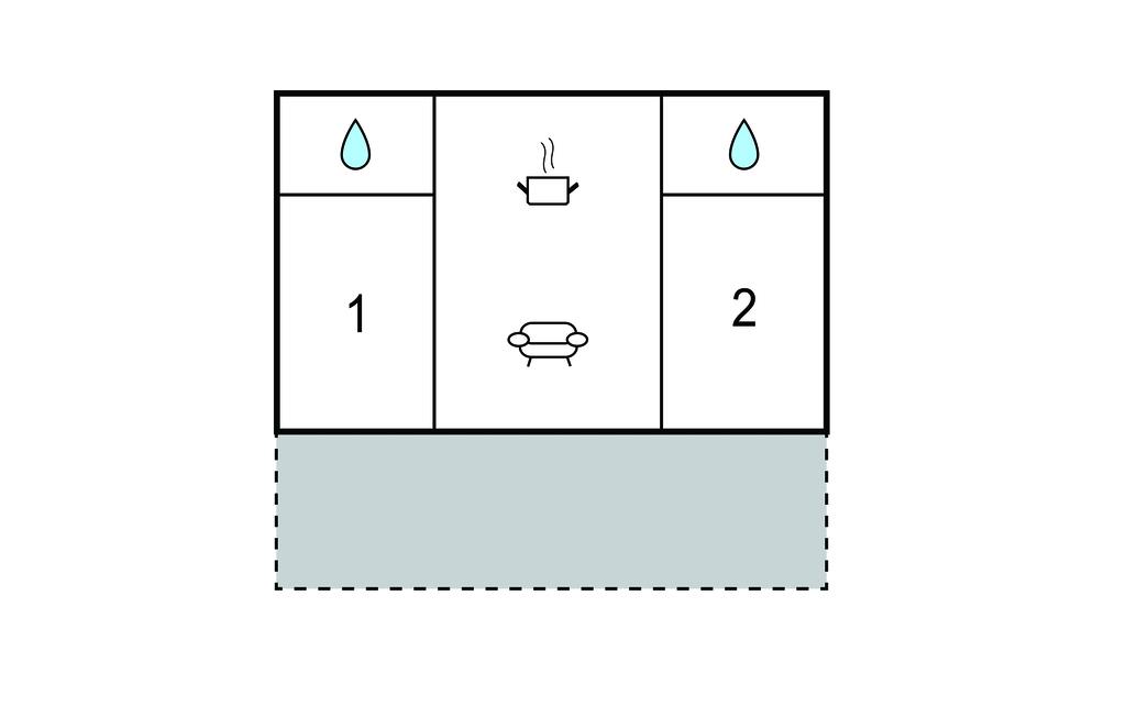 Opholdsstue/køkken 15m2 - 2 Sovepladser. (Sofa, madras eller lignende).