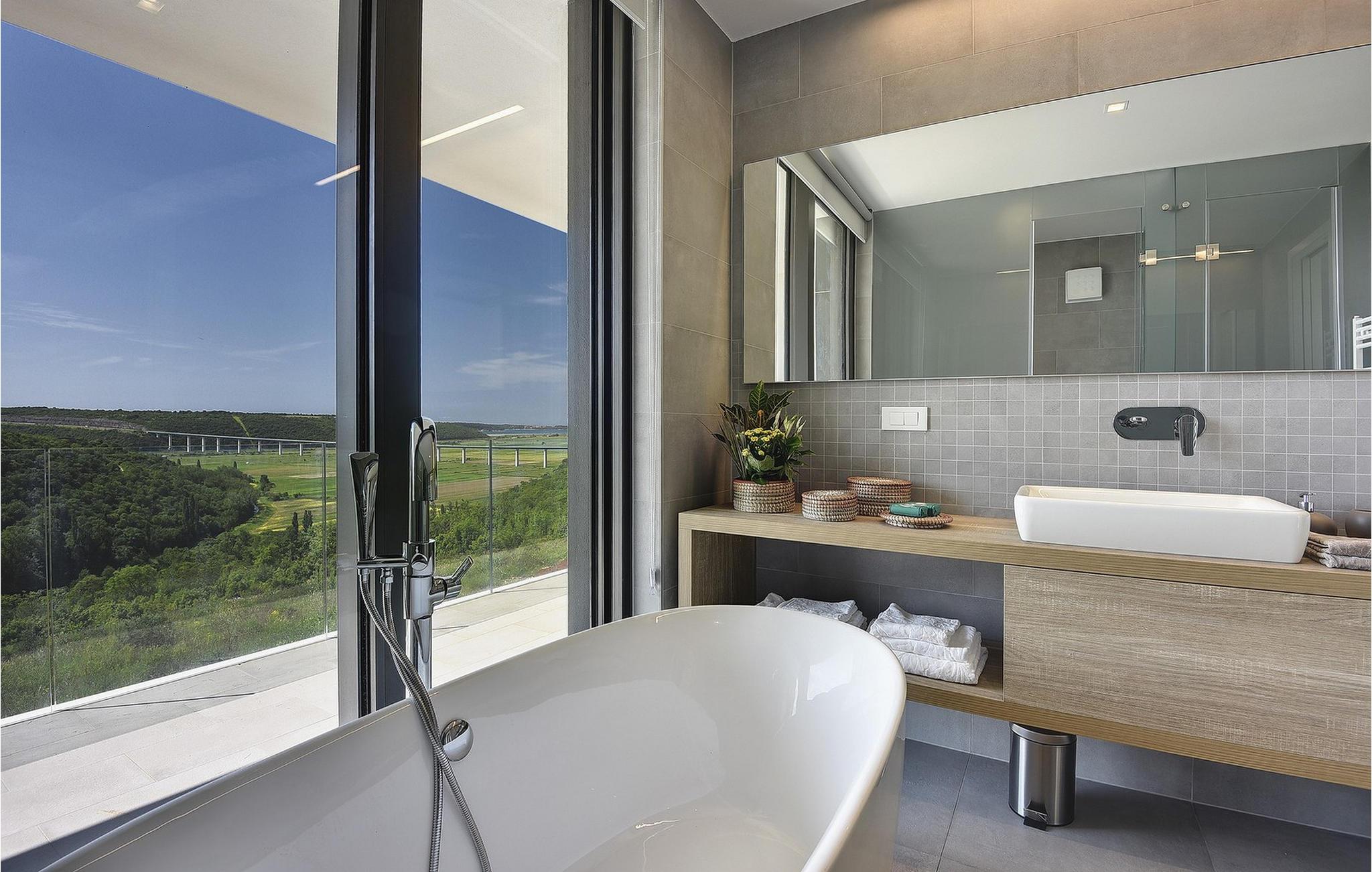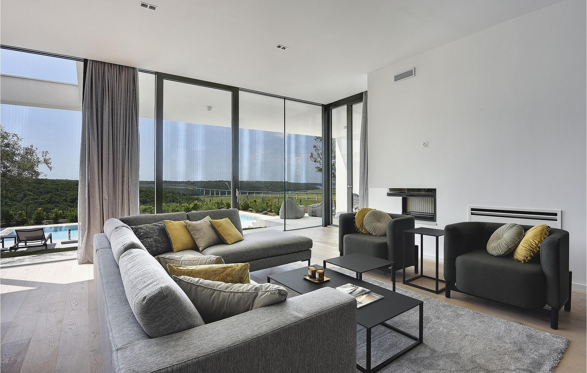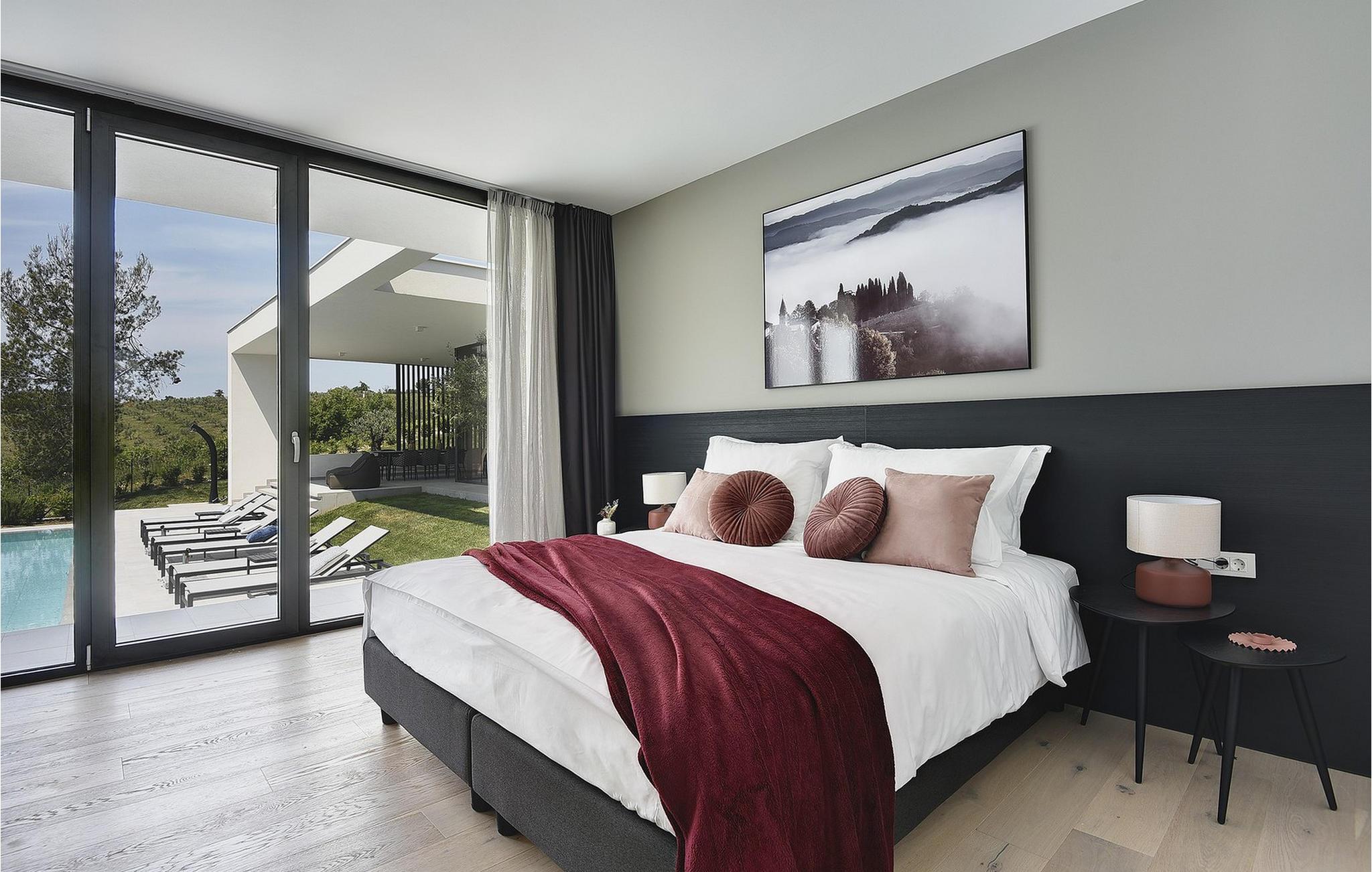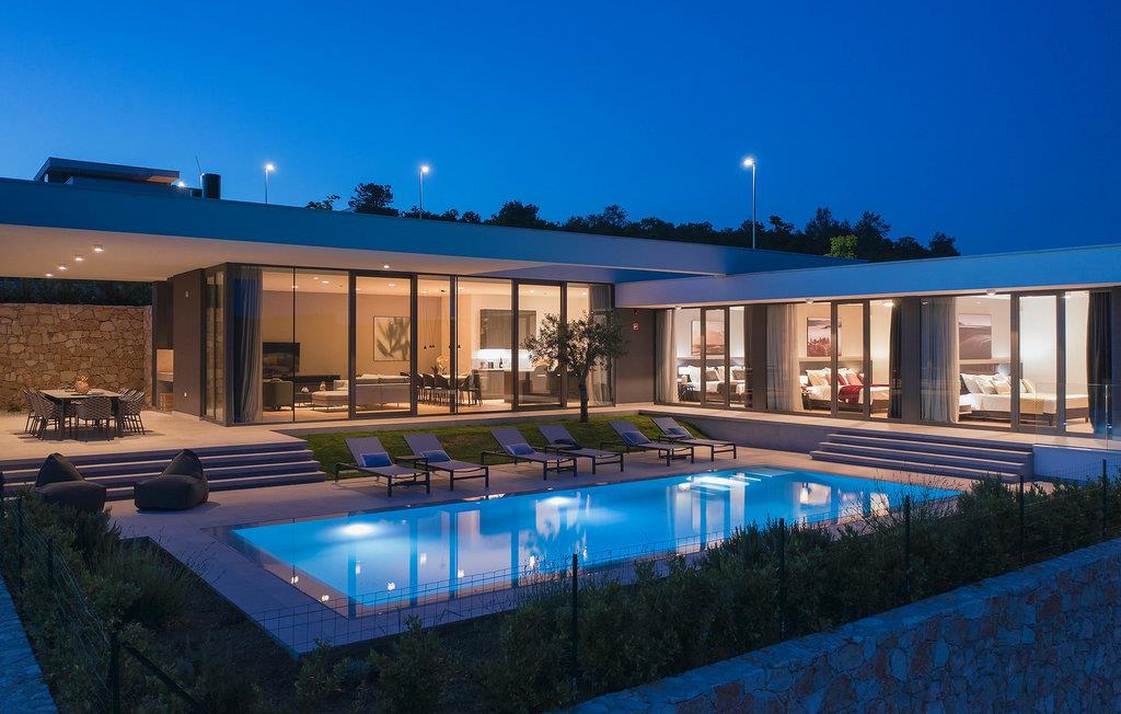 Den moderne Villa Kalipso ligger i den lille istriske by Nova Vas og er kendetegnet ved sin enkelhed og isolerede beliggenhed, som indbyder til at slappe af og nyde freden. Store glasvægge, som er et kendetegn ved moderne konstruktion, tilføjer luftighed til hvert værelse i villaen og lysner interiøret. Villaens overnatningskapacitet er maksimalt 8 personer og har i alt 4 soveværelser, to af dem med to dobbeltsenge og de resterende to med to enkeltsenge, der også kan kombineres til dobbeltsenge. Der er også 4 ekstra senge til rådighed i villaen efter anmodning. I villaens stueetage er der alle fire soveværelser, en rummelig stue, et moderne køkken og en åben spisestue, der tilbyder gæsterne en smuk udsigt over det blå Adriaterhav. På villaens rummelige terrasse er der en stor opvarmet pool på 40 m2 og en dybde på 1,5 m. Omkring poolen er der 10 liggestole, hvor du kan tilbringe hyggelige stunder og nyde sommersolen. Der er 4 parkeringspladser til rådighed i villaens fuldt indhegnede gård. Den smukke istriske by Novigrad, kun 6 km væk, er den nærmeste strand Maestral, hvor du kan slappe af eller deltage i vandsport såsom dykning, svømning og sejlads. Istrien er anderledes end resten af Kroatien. For lang tid siden gav romerne det navnet "Terra Magica". Det var i italiensk eje indtil efter Anden Verdenskrig. Den har en velkendt og anerkendt gastronomi, topvine og førsteklasses olivenolier. Dens skønheder er meget overkommelige, og indlandet er lige så smukt som kysten. Istrien kan også prale af et af Kroatiens mest berømte antikke monumenter, Arenaen i Pula. Arenaen er ikke kun det sjettestørste romerske amfiteater i verden, det er også et af de bedst bevarede. Det uundværlige symbol på Istrien, der er omkring to tusind år gammelt, er også et sted, hvor du kan opleve unikke, storslåede forestillinger af lokale og udenlandske kunstnere. I Istrien kan du finde forskellige underholdnings- og kulturelle begivenheder i sommermånederne. I nabolandet Brtonigla, et malerisk sted på en bakke omgivet af vinmarker, kan du om sommeren deltage i forskellige gastrofestivaler såsom Chokolade- og Vinfestivalen, Svampedage eller etno-arrangementet "In the Colors of Tradition". Oplev det hele. charmen af forskelligartede Istrien og slap af i den luksuriøse Villa Kalipso! Poolopvarmning er tilgængelig mod et ekstra gebyr, der betales lokalt.Kæledyr er tilladt på denne ejendom efter ejerens skøn eller mod et gebyr. Bemærk venligst, at denne ejendom kun accepterer ungdomsgrupper eller polterabender mod betaling af et refunderbart depositum En ungdomsgruppe i denne ejendom består af personer under 30 år. Hvis du er en ungdomsgruppe eller polterabend, vil du blive bedt om at betale depositum ved ankomst Alle beløb, der er nødvendige at reparere eventuelle skader på boligen forårsaget af dig under dit ophold, vil blive trukket fra depositum og derefter returneret til dig.