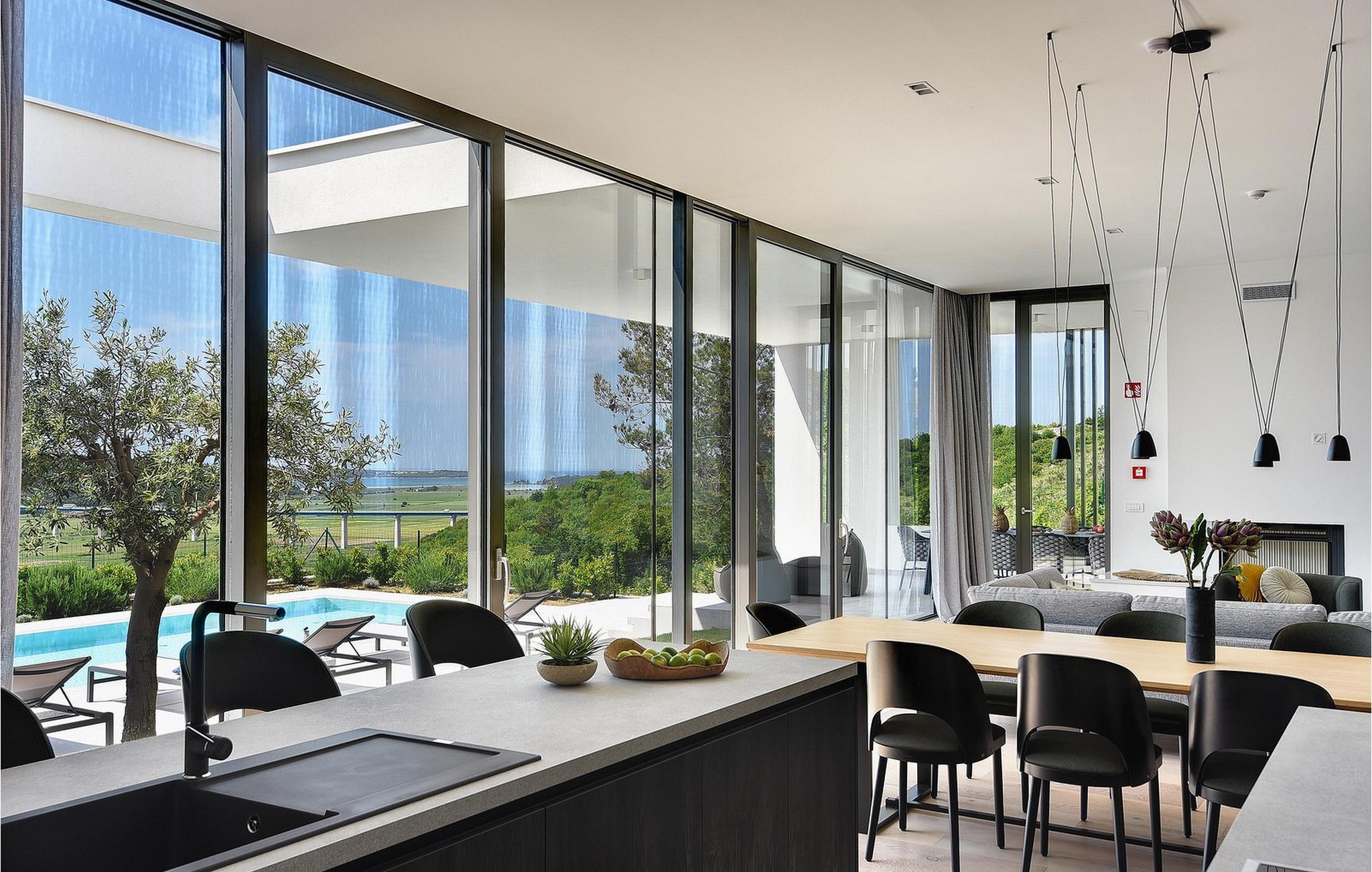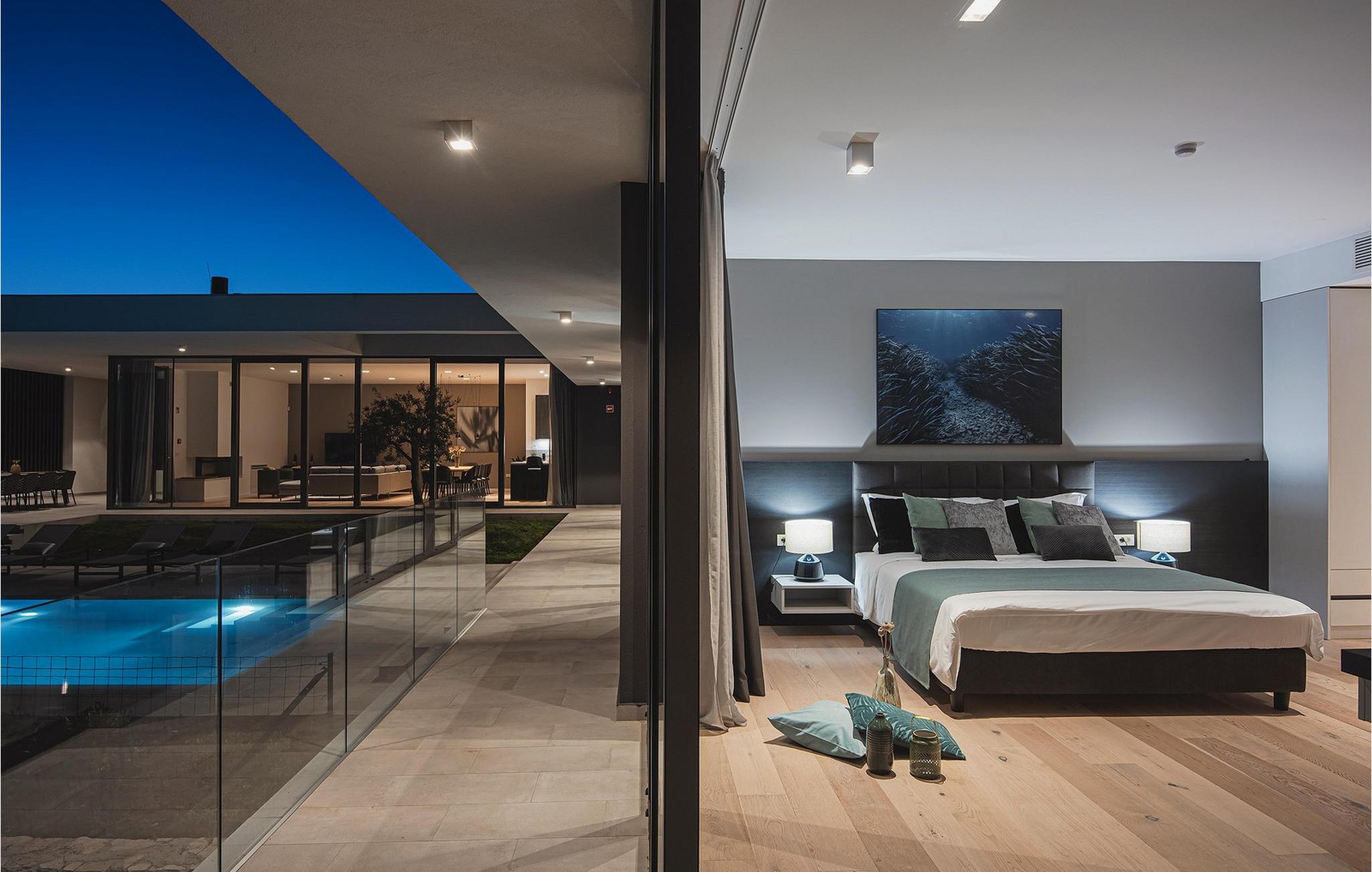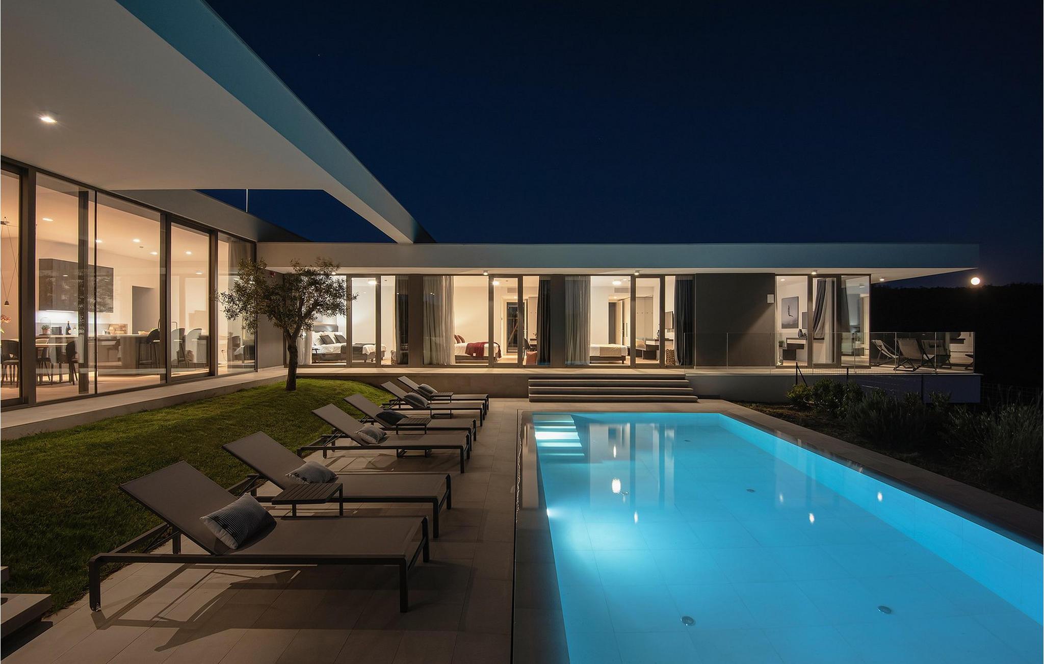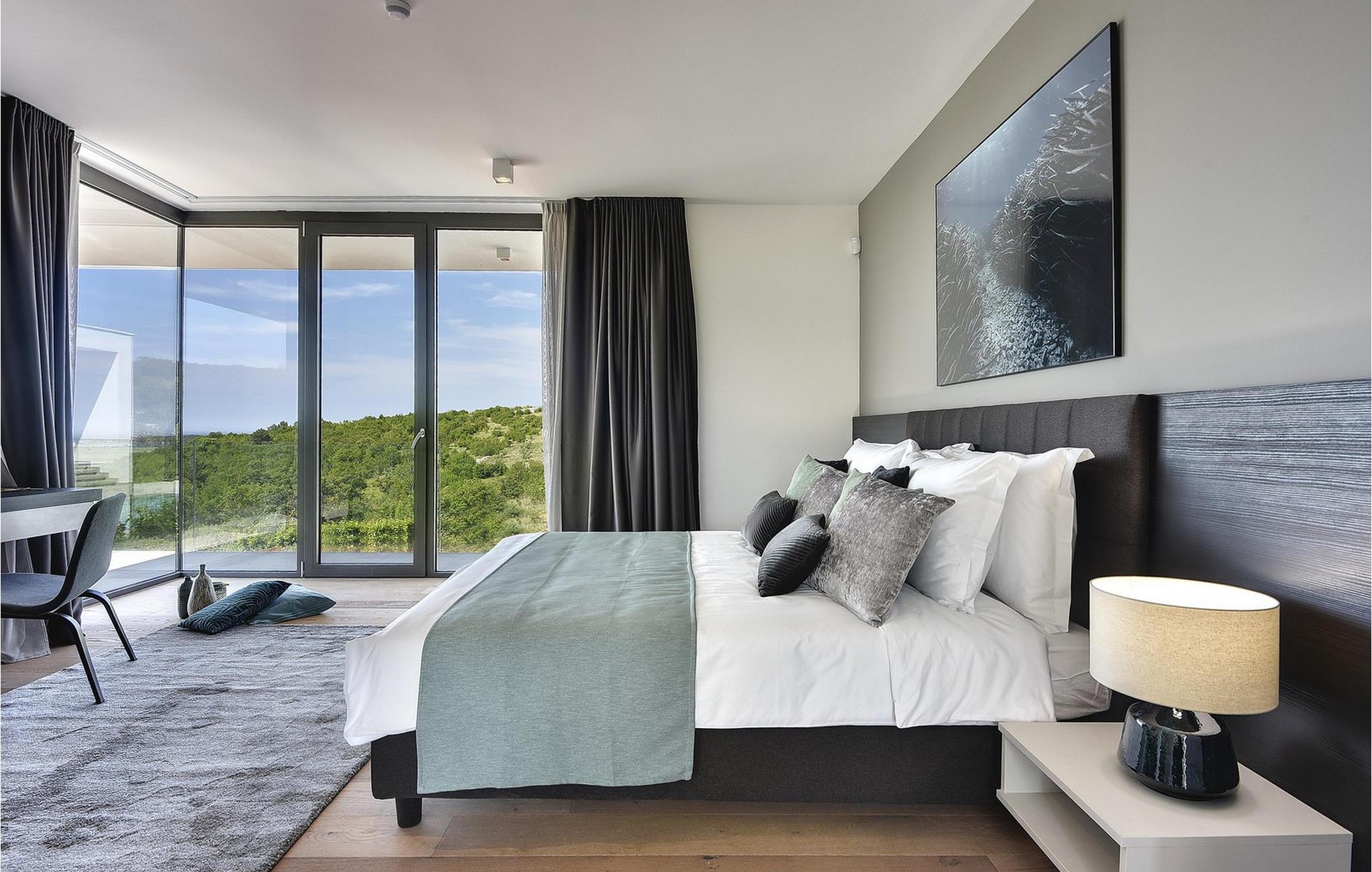 Den moderne Villa Kalipso ligger i den lille istriske by Nova Vas og er kendetegnet ved sin enkelhed og isolerede beliggenhed, som indbyder til at slappe af og nyde freden. Store glasvægge, som er et kendetegn ved moderne konstruktion, tilføjer luftighed til hvert værelse i villaen og lysner interiøret. Villaens overnatningskapacitet er maksimalt 8 personer og har i alt 4 soveværelser, to af dem med to dobbeltsenge og de resterende to med to enkeltsenge, der også kan kombineres til dobbeltsenge. Der er også 4 ekstra senge til rådighed i villaen efter anmodning. I villaens stueetage er der alle fire soveværelser, en rummelig stue, et moderne køkken og en åben spisestue, der tilbyder gæsterne en smuk udsigt over det blå Adriaterhav. På villaens rummelige terrasse er der en stor opvarmet pool på 40 m2 og en dybde på 1,5 m. Omkring poolen er der 10 liggestole, hvor du kan tilbringe hyggelige stunder og nyde sommersolen. Der er 4 parkeringspladser til rådighed i villaens fuldt indhegnede gård. Den smukke istriske by Novigrad, kun 6 km væk, er den nærmeste strand Maestral, hvor du kan slappe af eller deltage i vandsport såsom dykning, svømning og sejlads. Istrien er anderledes end resten af Kroatien. For lang tid siden gav romerne det navnet "Terra Magica". Det var i italiensk eje indtil efter Anden Verdenskrig. Den har en velkendt og anerkendt gastronomi, topvine og førsteklasses olivenolier. Dens skønheder er meget overkommelige, og indlandet er lige så smukt som kysten. Istrien kan også prale af et af Kroatiens mest berømte antikke monumenter, Arenaen i Pula. Arenaen er ikke kun det sjettestørste romerske amfiteater i verden, det er også et af de bedst bevarede. Det uundværlige symbol på Istrien, der er omkring to tusind år gammelt, er også et sted, hvor du kan opleve unikke, storslåede forestillinger af lokale og udenlandske kunstnere. I Istrien kan du finde forskellige underholdnings- og kulturelle begivenheder i sommermånederne. I nabolandet Brtonigla, et malerisk sted på en bakke omgivet af vinmarker, kan du om sommeren deltage i forskellige gastrofestivaler såsom Chokolade- og Vinfestivalen, Svampedage eller etno-arrangementet "In the Colors of Tradition". Oplev det hele. charmen af forskelligartede Istrien og slap af i den luksuriøse Villa Kalipso! Poolopvarmning er tilgængelig mod et ekstra gebyr, der betales lokalt.Kæledyr er tilladt på denne ejendom efter ejerens skøn eller mod et gebyr. Bemærk venligst, at denne ejendom kun accepterer ungdomsgrupper eller polterabender mod betaling af et refunderbart depositum En ungdomsgruppe i denne ejendom består af personer under 30 år. Hvis du er en ungdomsgruppe eller polterabend, vil du blive bedt om at betale depositum ved ankomst Alle beløb, der er nødvendige at reparere eventuelle skader på boligen forårsaget af dig under dit ophold, vil blive trukket fra depositum og derefter returneret til dig.