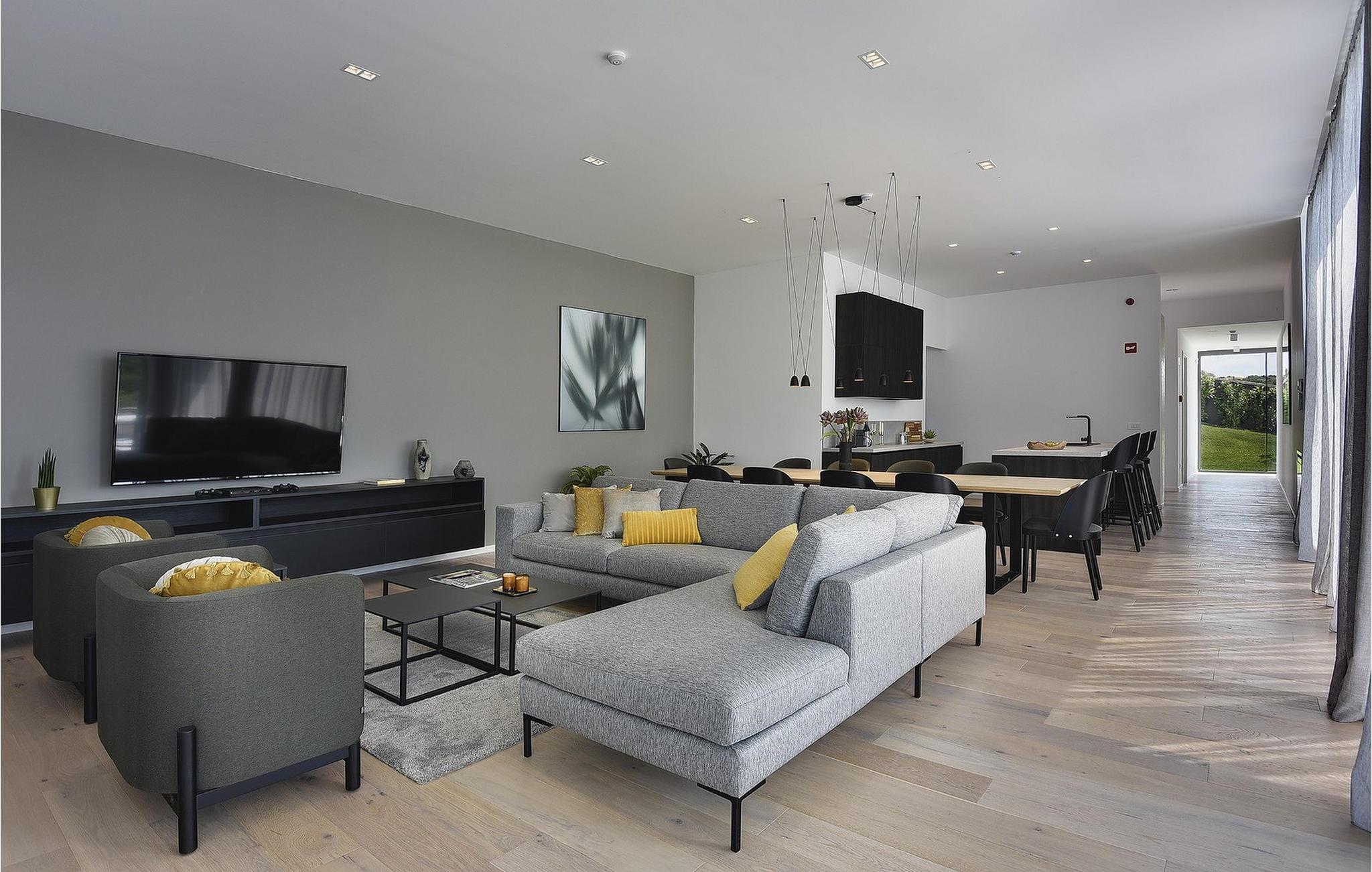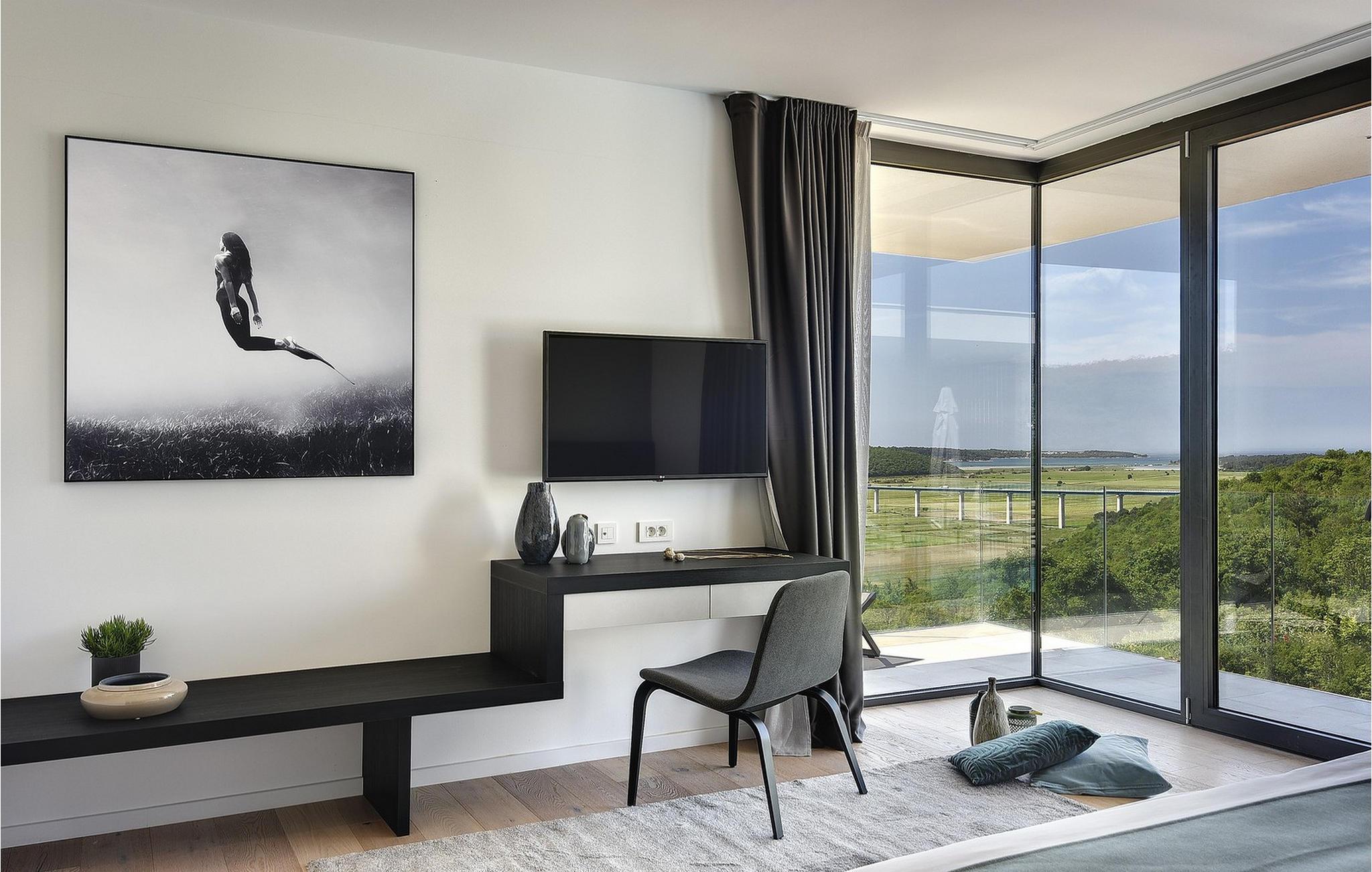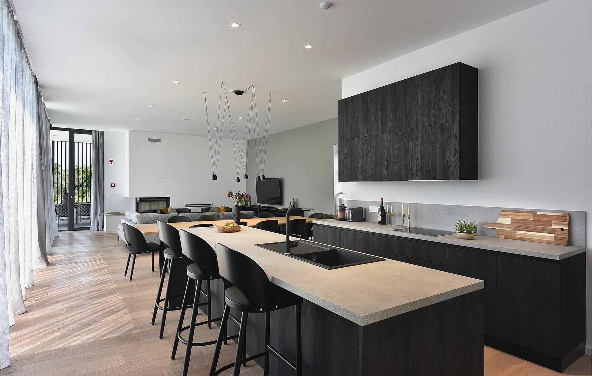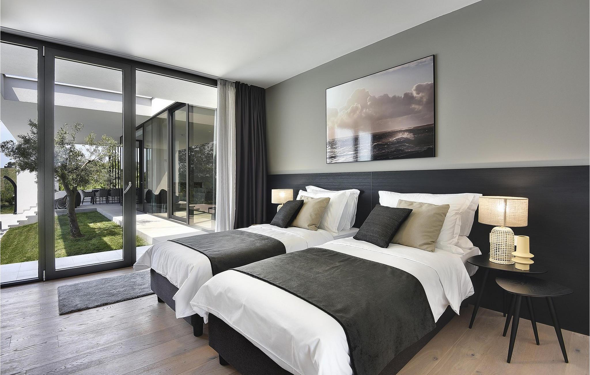 Den moderne Villa Kalipso ligger i den lille istriske by Nova Vas og er kendetegnet ved sin enkelhed og isolerede beliggenhed, som indbyder til at slappe af og nyde freden. Store glasvægge, som er et kendetegn ved moderne konstruktion, tilføjer luftighed til hvert værelse i villaen og lysner interiøret. Villaens overnatningskapacitet er maksimalt 8 personer og har i alt 4 soveværelser, to af dem med to dobbeltsenge og de resterende to med to enkeltsenge, der også kan kombineres til dobbeltsenge. Der er også 4 ekstra senge til rådighed i villaen efter anmodning. I villaens stueetage er der alle fire soveværelser, en rummelig stue, et moderne køkken og en åben spisestue, der tilbyder gæsterne en smuk udsigt over det blå Adriaterhav. På villaens rummelige terrasse er der en stor opvarmet pool på 40 m2 og en dybde på 1,5 m. Omkring poolen er der 10 liggestole, hvor du kan tilbringe hyggelige stunder og nyde sommersolen. Der er 4 parkeringspladser til rådighed i villaens fuldt indhegnede gård. Den smukke istriske by Novigrad, kun 6 km væk, er den nærmeste strand Maestral, hvor du kan slappe af eller deltage i vandsport såsom dykning, svømning og sejlads. Istrien er anderledes end resten af Kroatien. For lang tid siden gav romerne det navnet "Terra Magica". Det var i italiensk eje indtil efter Anden Verdenskrig. Den har en velkendt og anerkendt gastronomi, topvine og førsteklasses olivenolier. Dens skønheder er meget overkommelige, og indlandet er lige så smukt som kysten. Istrien kan også prale af et af Kroatiens mest berømte antikke monumenter, Arenaen i Pula. Arenaen er ikke kun det sjettestørste romerske amfiteater i verden, det er også et af de bedst bevarede. Det uundværlige symbol på Istrien, der er omkring to tusind år gammelt, er også et sted, hvor du kan opleve unikke, storslåede forestillinger af lokale og udenlandske kunstnere. I Istrien kan du finde forskellige underholdnings- og kulturelle begivenheder i sommermånederne. I nabolandet Brtonigla, et malerisk sted på en bakke omgivet af vinmarker, kan du om sommeren deltage i forskellige gastrofestivaler såsom Chokolade- og Vinfestivalen, Svampedage eller etno-arrangementet "In the Colors of Tradition". Oplev det hele. charmen af forskelligartede Istrien og slap af i den luksuriøse Villa Kalipso! Poolopvarmning er tilgængelig mod et ekstra gebyr, der betales lokalt.Kæledyr er tilladt på denne ejendom efter ejerens skøn eller mod et gebyr. Bemærk venligst, at denne ejendom kun accepterer ungdomsgrupper eller polterabender mod betaling af et refunderbart depositum En ungdomsgruppe i denne ejendom består af personer under 30 år. Hvis du er en ungdomsgruppe eller polterabend, vil du blive bedt om at betale depositum ved ankomst Alle beløb, der er nødvendige at reparere eventuelle skader på boligen forårsaget af dig under dit ophold, vil blive trukket fra depositum og derefter returneret til dig.