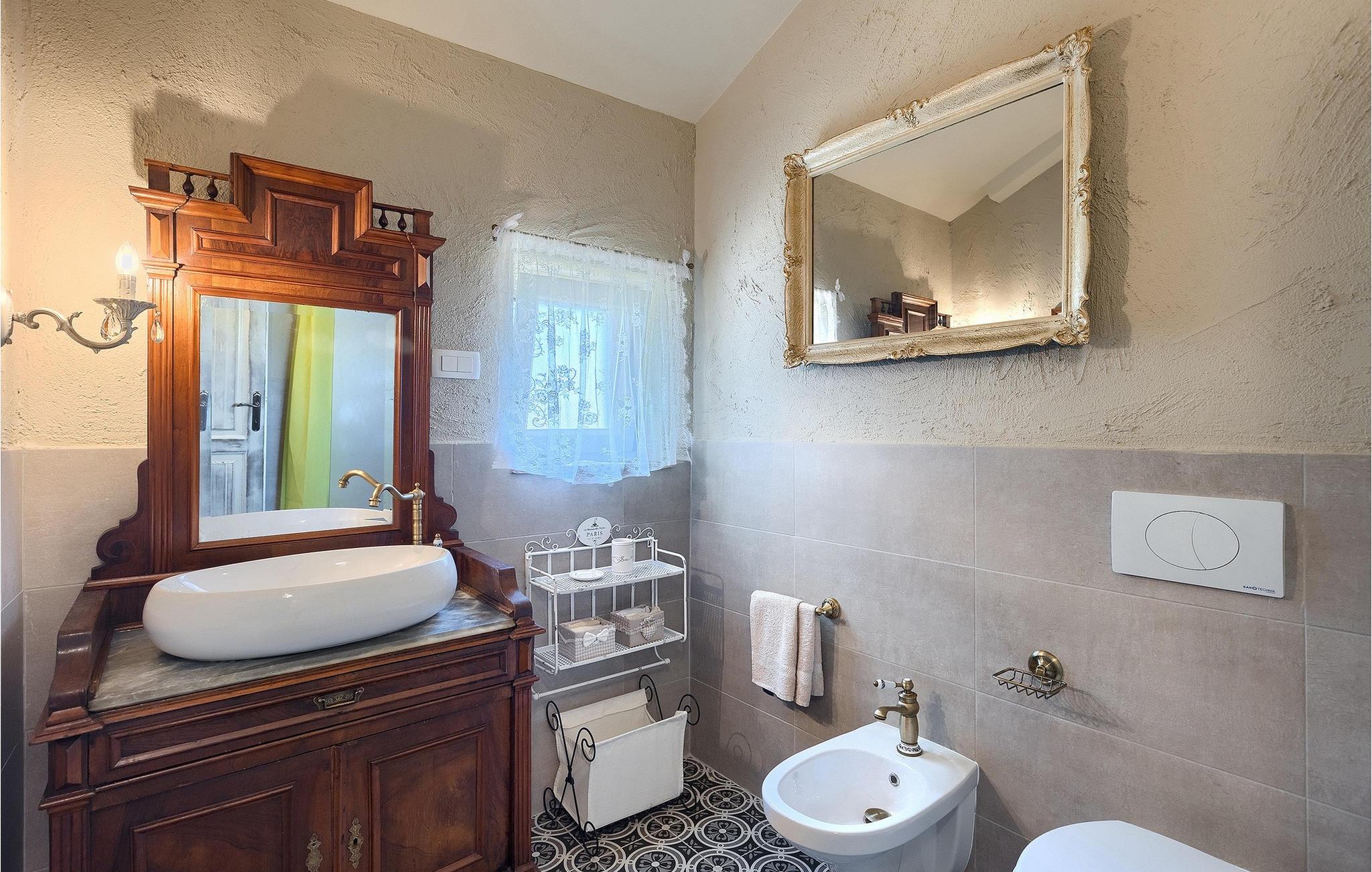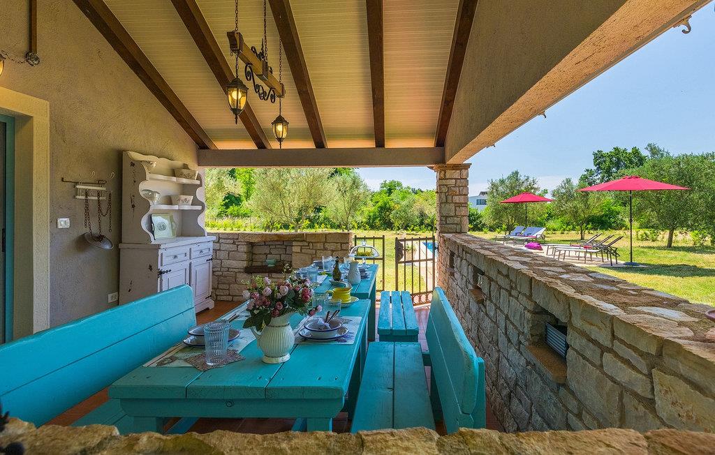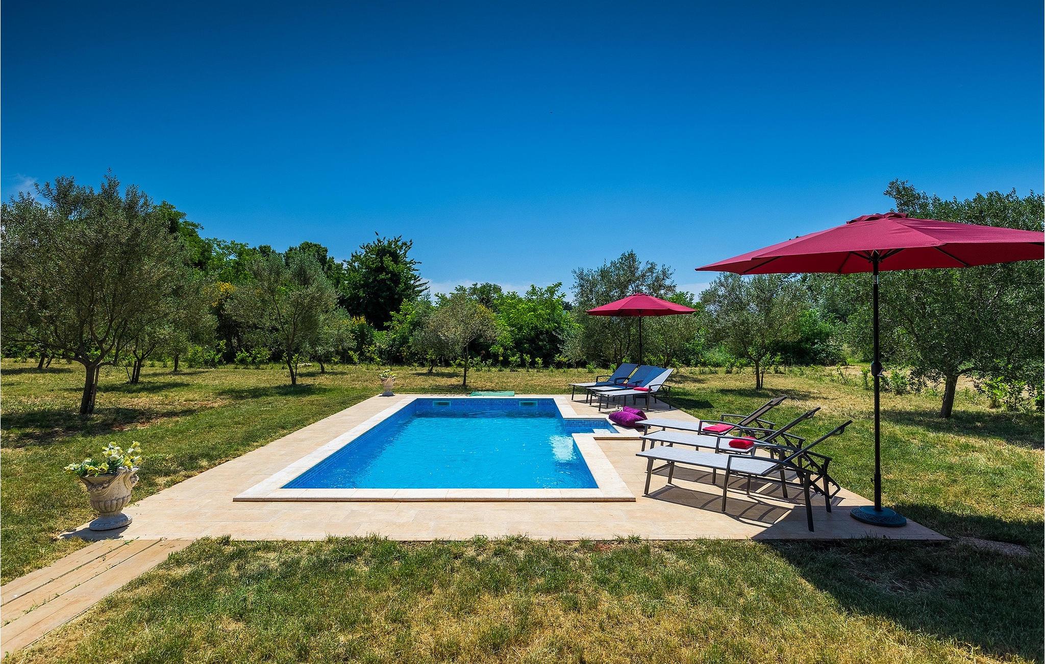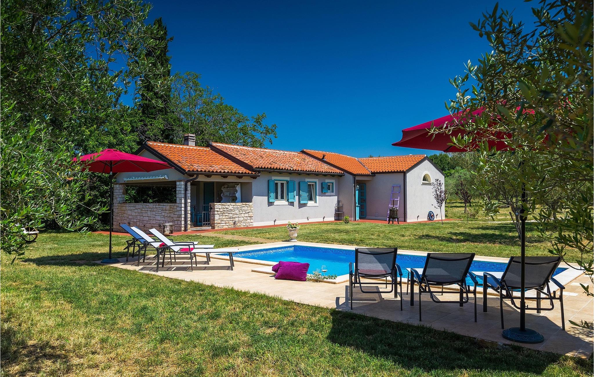 Den charmerende Villa Marco - Stancija Vinjeri ligger i den lille landsby Bužinija i Istrien. Den kan rumme op til otte personer og er ideel til en ferie med familie eller venner. Villaen består af opholdsstue, køkken og spiseplads, tre komfortable soveværelser med eget badeværelse og separat toilet og tilbyder alt hvad du behøver for en afslappende ferie. Det stilfulde interiør med antikke møbler vil fange dit øje med det samme. Udendørsområdet byder på en privat pool med liggestole, parasol og udendørs bruser - perfekt til en forfriskning på varme sommerdage. Her kan du nyde privatlivets fred! På den 40m2 overdækkede terrasse er der en grill med spiseplads. Dit kæledyr er også meget velkommen. En privat parkeringsplads og internetadgang er til din rådighed. Book Villa Marco - Stancija Vinjeri og tilbring uforglemmelige øjeblikke med dine kære og opdag Istriens skatte!Villa Marco - Stancija Vinieri ligger i den lille landsby Buzinija nær byen Novigrad i Istrien. Der vil du finde et udvalg af caféer, barer og restauranter, hvor du kan smage typiske lokale specialiteter. Oplev smukke strande med krystalklart vand. Vandlandet Istralandia ligger kun en kort køretur væk. Vi anbefaler en dagstur - sjov for hele familien er garanteret! Middelalderbyerne Motovun og Groznjan er nemme at nå og et besøg værd. I regionens hovedstad, Pula, finder du det fortryllende romerske amfiteater, hvor du kan deltage i mange filmbegivenheder men også kulturelle begivenheder og livekoncerter af verdensberømte kunstnere. Istrien byder på alt, hvad du kan ønske dig til en afslappende, men spændende ferie.