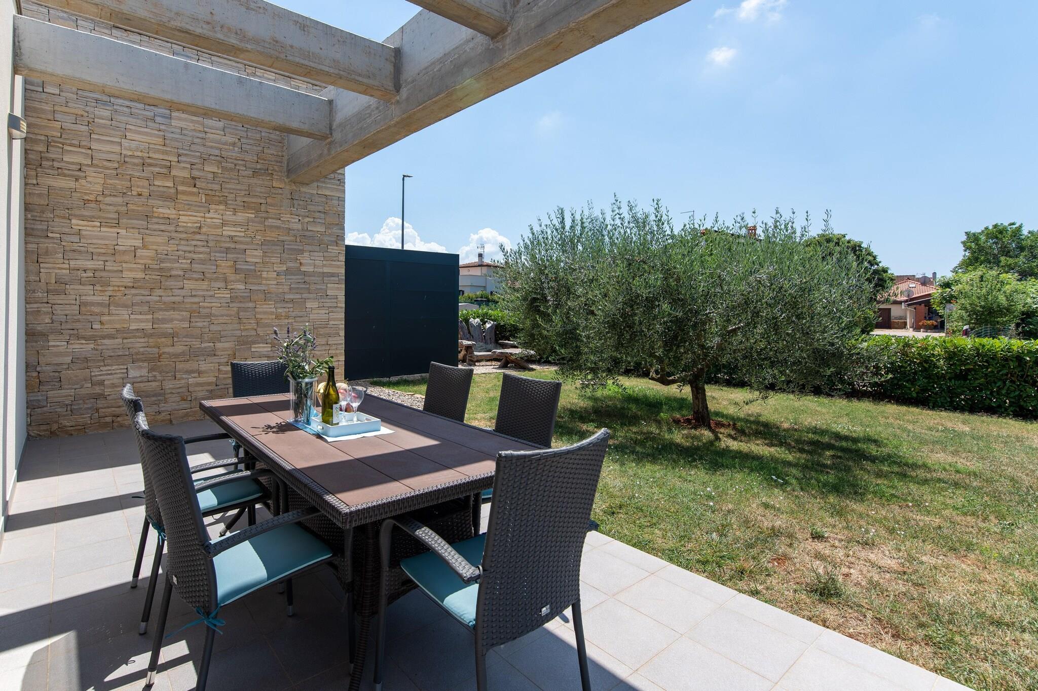 Denne stilfulde villa i Novigrad er vært for seks gæster fordelt på tre soveværelser, hver med sit eget badeværelse. Stuen har satellit-tv og et hyggeligt opholdsområde, mens køkkenet er fuldt udstyret med moderne apparater, herunder opvaskemaskine, ovn og kaffemaskine. En privat terrasse og terrasse tilbyder problemfri indendørs-udendørs ophold. Slap af i den opvarmede private pool eller nyd den udendørs bruser efter solbadning på liggestolene. Den indhegnede have omfatter grill, parasol og loungesæt, perfekt til udendørs spisning. Villaen har aircondition og gratis WiFi og blander luksus med bekvemmelighed. Villaen ligger 2 km fra Novigrads centrum og havet og tilbyder nem adgang til butikker, restauranter (kun 500 m væk) og lægetjenester. Uanset om du slentrer til stranden eller udforsker Istriens kystcharme, er denne villa en fredfyldt base for din ferie.