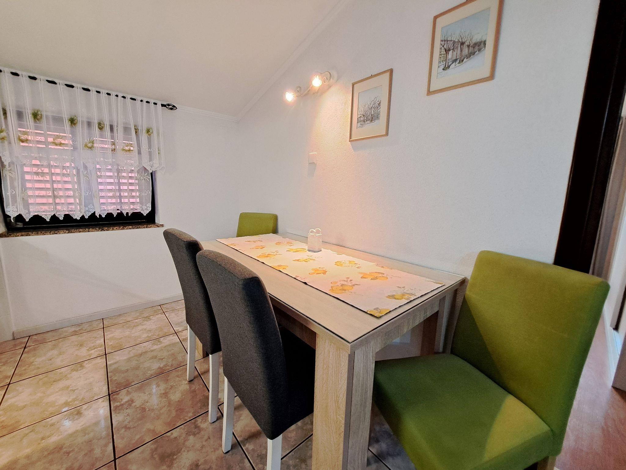 Ferienwohnung bietet Platz für 5 Gäste. Die Betten sind in Schlafzimmern, die es 2 gibt, innerhalb einer Gesamtfläche von 54m2, angeordnet. Die Gäste haben eine eigene Terrasse zur Verfügung, auf der sie in warmen Sommernächten genießen können. IM PREIS INBEGRIFFEN: Kurtaxe, Endreinigung, Klimatisierung, Parkplatz, Internet, Kinderbett, Bügeleisen, Bügelbrett, Föhn, Sonnenschirm. VERBINDLICHE ZUSÄTZLICHE KOSTEN: Aufzahlung für Kurzaufenthalte (prozentualer Zuschlag pro Nächtigungsanzahl: 30% - 1, 20% - 2, 10% - 3). UNVERBINDLICHE ZUSÄTZLICHE KOSTEN: Wäschewaschen (5,00 € Waschen), Fahrrad (25,00 € täglich (pro Stück)). Die Verfügbarkeit zusätzlicher Dienstleistungen in Ihrem reservierten Termin und die Preise derselben (falls nicht aufgeführt) müssen im Voraus überprüft werden. Zusätzliche Dienstleistungen die in der Zahlungsaufforderung nicht aufgeführt sind werden direkt beim Vermieter bezahlt, angenommen der Gast nutzt auch diese. Ermäßigung auf den Grundpreis: Gratistag 14=13 (bei einem Aufenthalt von 14 Tagen oder mehr erhalten Sie einen Gratistag für den Aufenthalt bis 31.12.26).