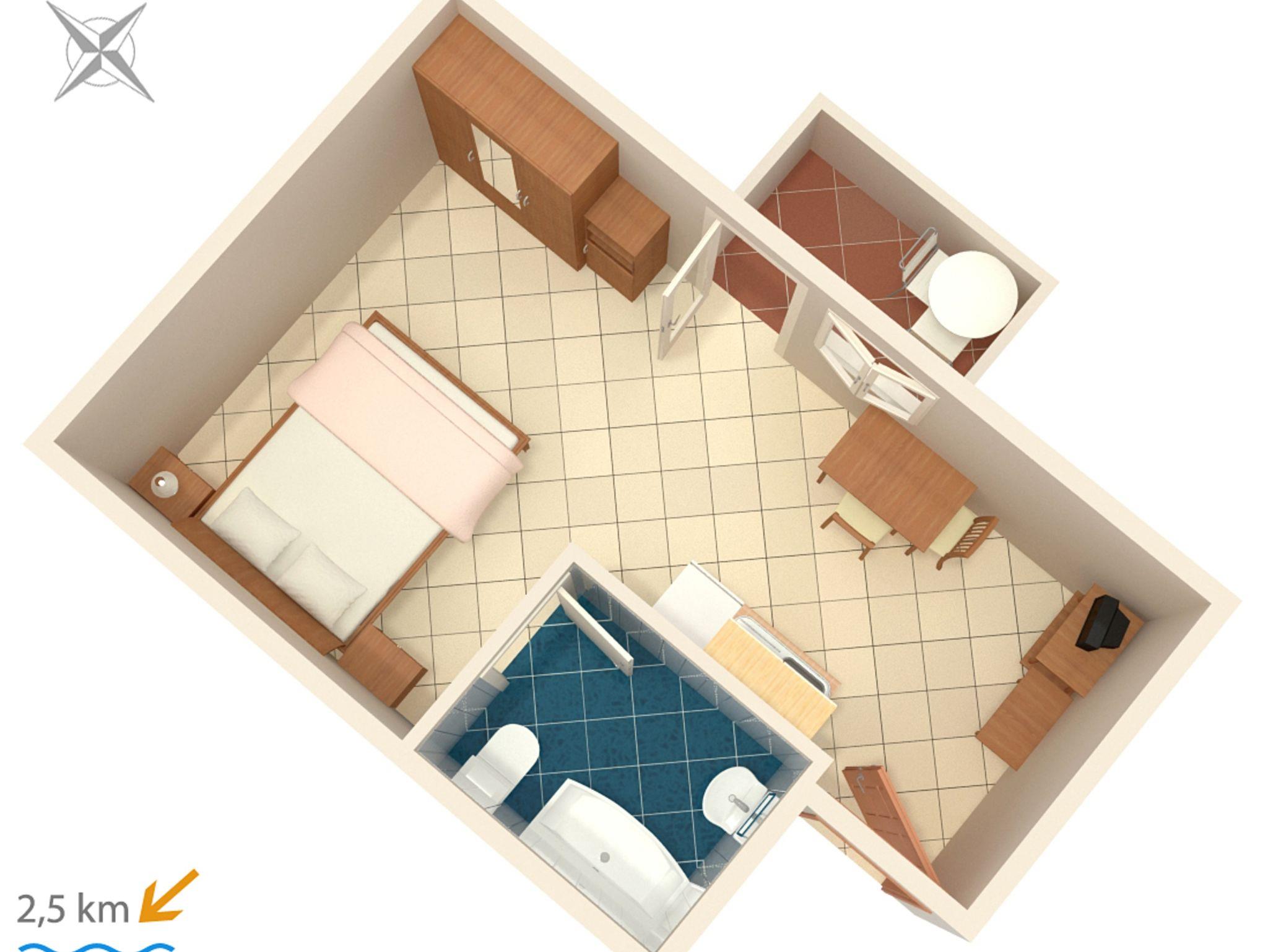 Studio bietet Platz für 2 Gäste. Die Betten sind in Schlafzimmern, die es 1 gibt, innerhalb einer Gesamtfläche von 23m2, angeordnet. Die Gäste haben einen eigenen Balkon zur Verfügung, auf der sie in warmen Sommernächten genießen können. IM PREIS INBEGRIFFEN: Kurtaxe, Endreinigung, Klimatisierung, Parkplatz, Internet, Kinderbett, Bügeleisen, Bügelbrett, Föhn, Sonnenschirm. VERBINDLICHE ZUSÄTZLICHE KOSTEN: Aufzahlung für Kurzaufenthalte (prozentualer Zuschlag pro Nächtigungsanzahl: 30% - 1, 20% - 2, 10% - 3). UNVERBINDLICHE ZUSÄTZLICHE KOSTEN: Wäschewaschen (5,00 € Waschen), Fahrrad (25,00 € täglich (pro Stück)). Die Verfügbarkeit zusätzlicher Dienstleistungen in Ihrem reservierten Termin und die Preise derselben (falls nicht aufgeführt) müssen im Voraus überprüft werden. Zusätzliche Dienstleistungen die in der Zahlungsaufforderung nicht aufgeführt sind werden direkt beim Vermieter bezahlt, angenommen der Gast nutzt auch diese. Ermäßigung auf den Grundpreis: Gratistag 14=13 (bei einem Aufenthalt von 14 Tagen oder mehr erhalten Sie einen Gratistag für den Aufenthalt bis 31.12.26).