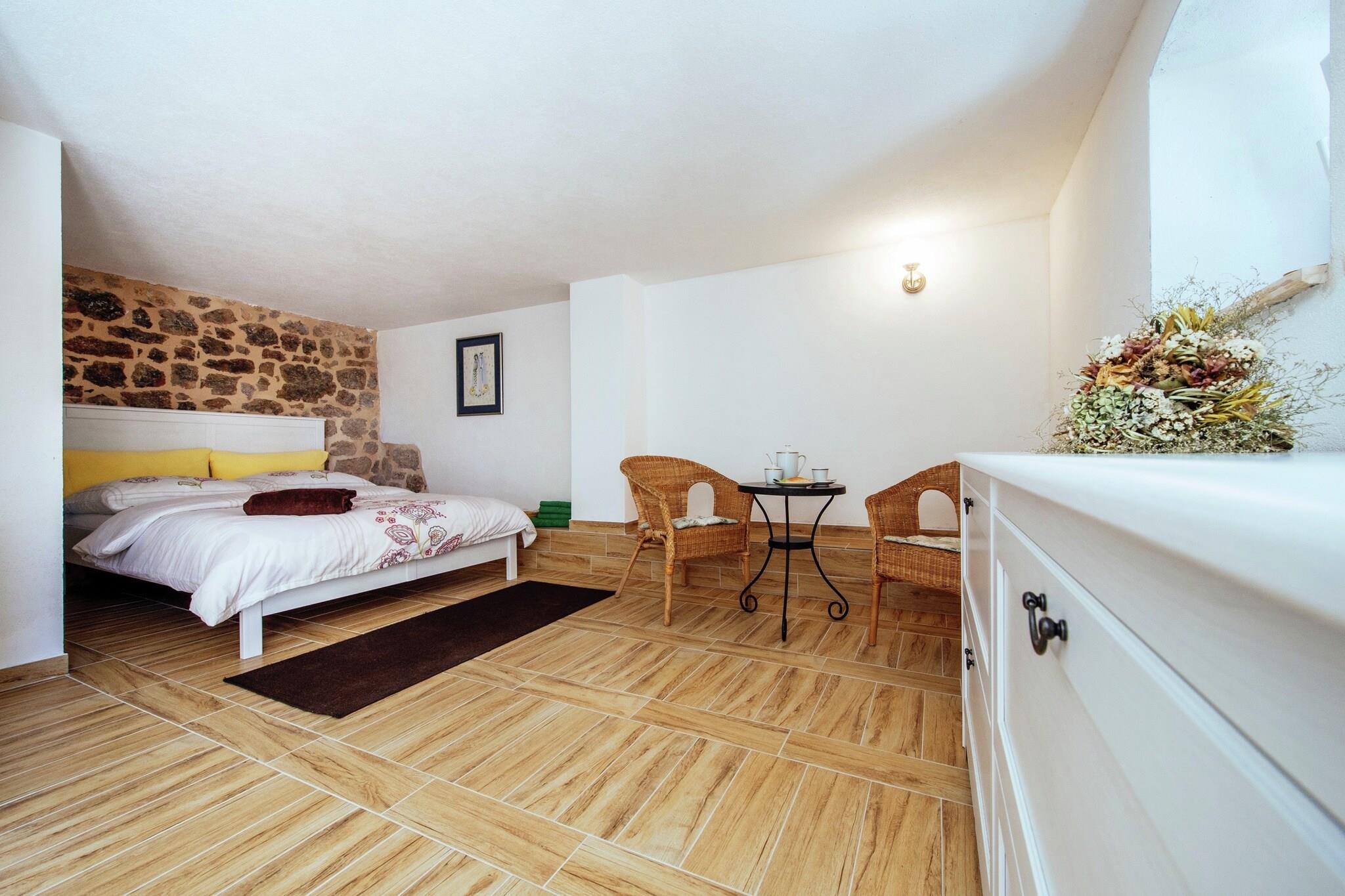 Dette feriehus med 2 soveværelser ligger i Zaton Obrovacki. Det kommer med en privat swimmingpool og overdækket terrasse, hvor du kan slappe af og dvæle i den friske luft. Feriehuset er ideelt til en familie eller gruppe på 6 personer. En charmerende blanding af River Canyon og bjergene byder på en række aktiviteter såsom rafting, kajaksejlads, cykling, trekking, mountainbiking, gåture og offroad-safari. 1 km fra feriehuset har I skovene og en sø til udflugter. Lokale retter er tilgængelige på restauranterne 1 km derfra. Obrovacs centrum og supermarkeder ligger 4 km derfra. For en afslappet dag med at beundre solopgangen eller solnedgangen, er Adriaterhavet 12 km væk. Feriehuset har en stue med aircondition til et hyggeligt ophold. I den private have kan du gå ture morgen og aften. Der er grill til hyggelige sammenkomster med lidt vin og musik. En børneseng er til stede, mens en barneseng kan anmodes om. Swimmingpoolen kan benyttes fra 12.06.-17.09 Parkering er gratis. Op til 3 kæledyr er tilladt gratis. Lufthavnen ligger 35 km derfra.
