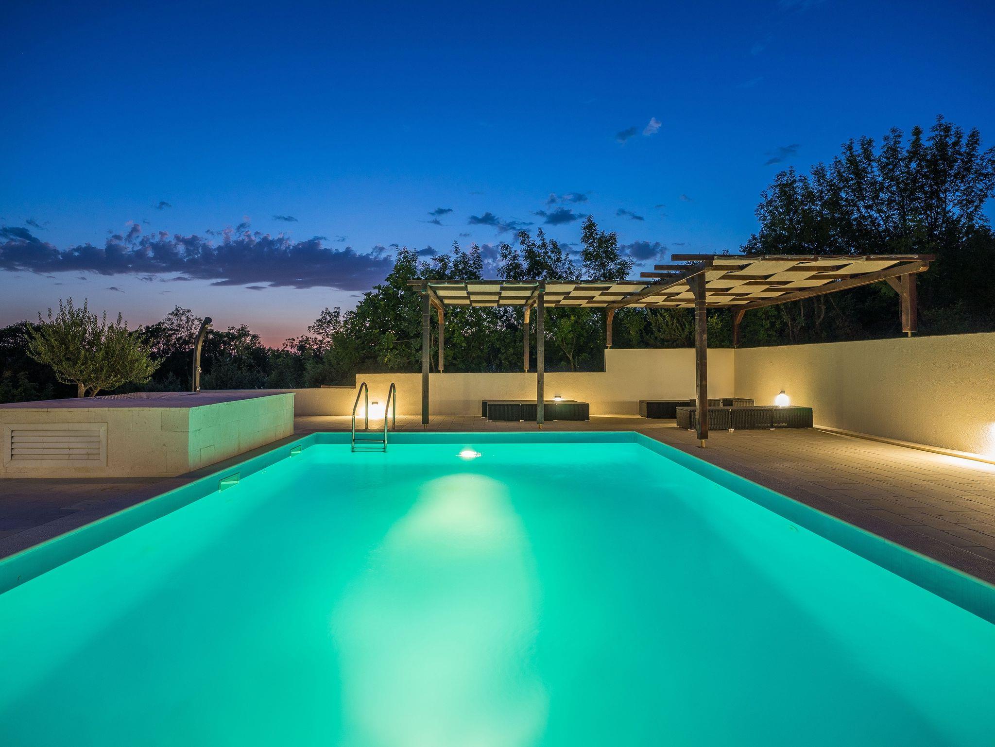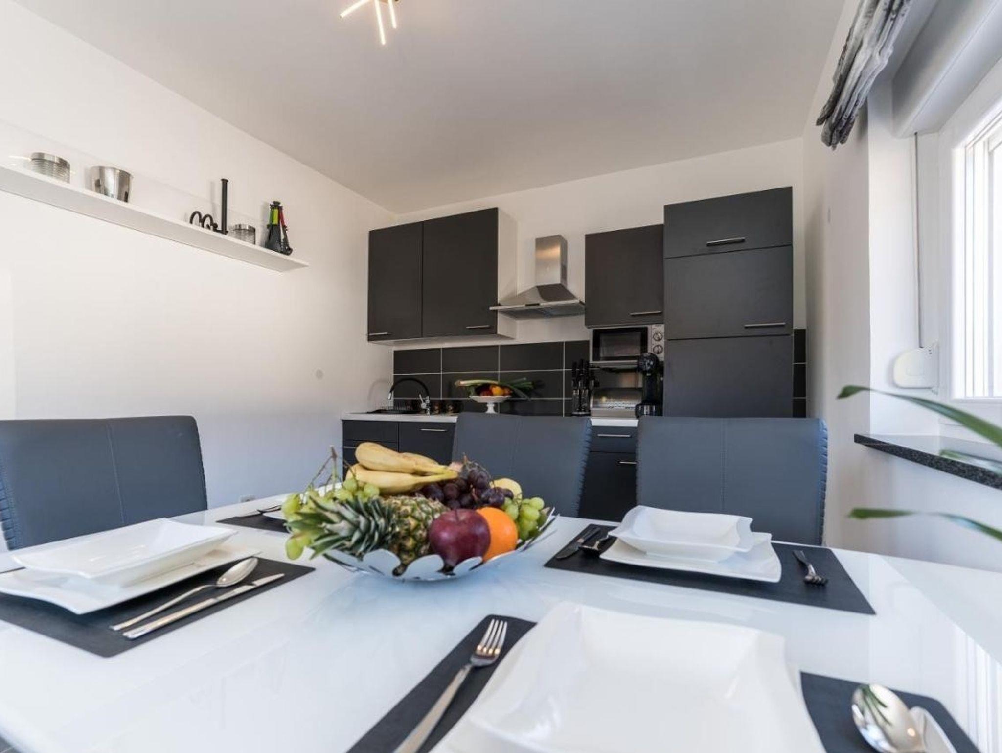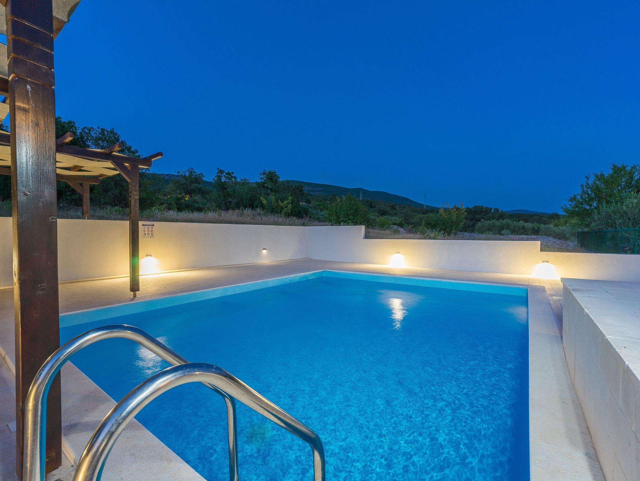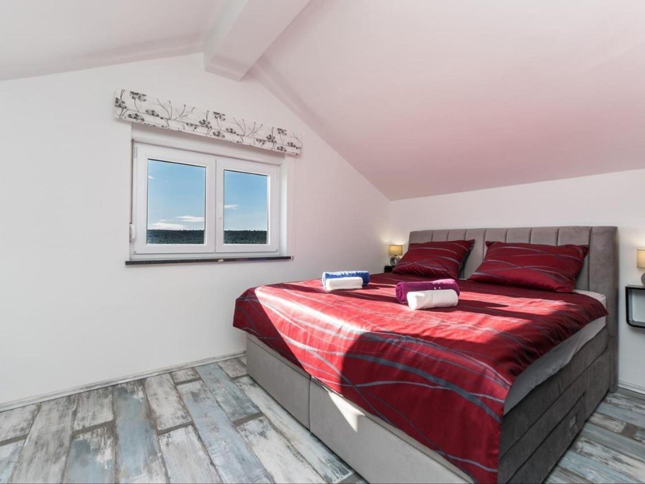 Haus bietet Platz für 6 Gäste. Die Betten sind in Schlafzimmern, die es 2 gibt, und in Wohnzimmer, innerhalb einer Gesamtfläche von 79m2, angeordnet. Die Gäste haben eine eigene Terrasse zur Verfügung, auf der sie in warmen Sommernächten genießen können. Für vollen Genuss und Entspannung gibt es einen privaten Grill für Gäste dieser Unterkunft. Während ihres Aufenthalts können sich Gäste im privaten Schwimmbad entspannen. In der Unterkunftseinheit besteht die Möglichkeit des Mitbringens von Haustieren, und die Dienstleistung ist im Preis der Unterkunft enthalten. IM PREIS INBEGRIFFEN: Kurtaxe, Endreinigung, Klimatisierung, Pool, Parkplatz, Internet, Bootsanlegeplatz, Haustiere, Bügeleisen, Bügelbrett, Föhn, Liegestühle. Die Verfügbarkeit zusätzlicher Dienstleistungen in Ihrem reservierten Termin und die Preise derselben (falls nicht aufgeführt) müssen im Voraus überprüft werden. Zusätzliche Dienstleistungen die in der Zahlungsaufforderung nicht aufgeführt sind werden direkt beim Vermieter bezahlt, angenommen der Gast nutzt auch diese. Ermäßigung auf den Grundpreis: Gratistag 14=13 (bei einem Aufenthalt von 14 Tagen oder mehr erhalten Sie einen Gratistag für den Aufenthalt bis 31.12.26).