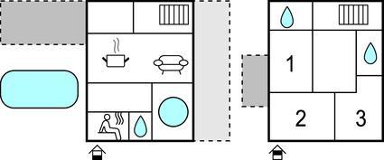 Soveværelse 14m2 (nr. 2) - 1 Soveplads. (Enkeltseng(e)). 2 Sovepladser. (Dobbeltseng(e)).