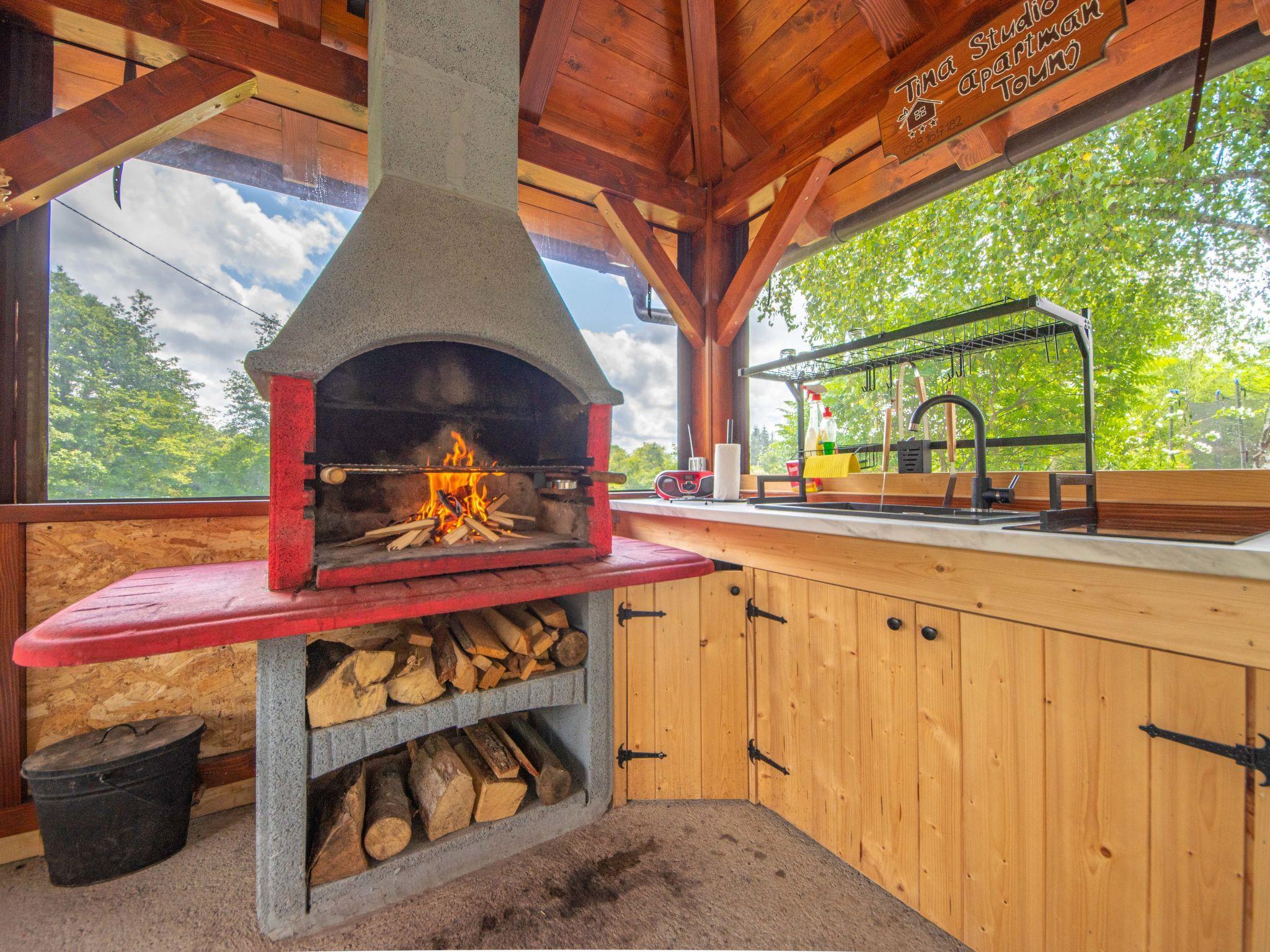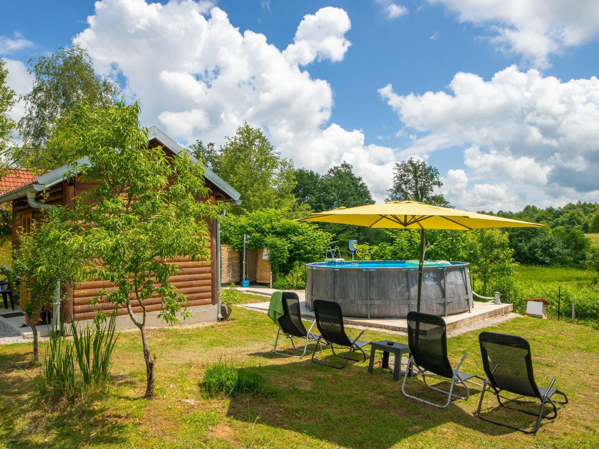 Tounj 17 km from Ogulin: Single-family house "Tina". 2 km from the centre of Tounj, in a quiet, sunny position, in the countryside. Private: property 1'200 m2 (fenced) with lawn 700 m2 trees, swimming pool (above ground) round (4.50 m diameter, depth 120 cm, seasonal availability: 01.May. - 01.Oct.). Outdoor shower, terrace (20 m2), garden furniture, barbecue, barbecue house (swing). In the house: internet access, trampoline, washing machine, bicycles available. Parking (for 4 cars) at the house on the premises. Shop 2 km, restaurant 3.5 km, bus stop 1.9 km. Well-known lakes can easily be reached: Plitvicka jezera 65 km.