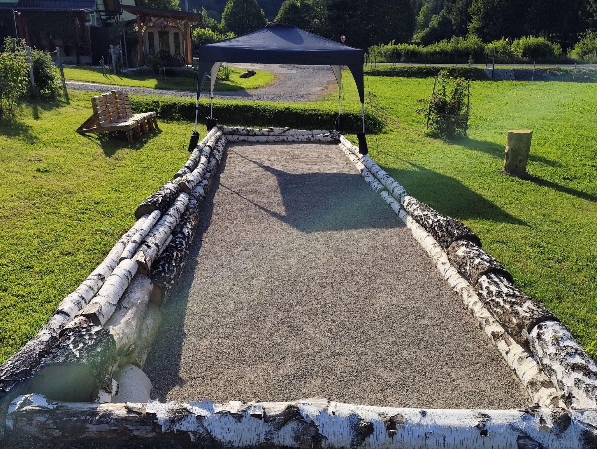 Umgebung des Objekts (Eingerichtet), Hof (1000m2, Kinderbereich, Sitzbereich), Parkplatz (Anzahl der Parkplätze: 5, Entfernung vom Objekt: im Hof), Garage, (Anzahl der Parkplätze: 1), Grill: gemeinsam, WiFi Internet, Föhn, Bügeleisen, Bügelbrett, Kinderbett
