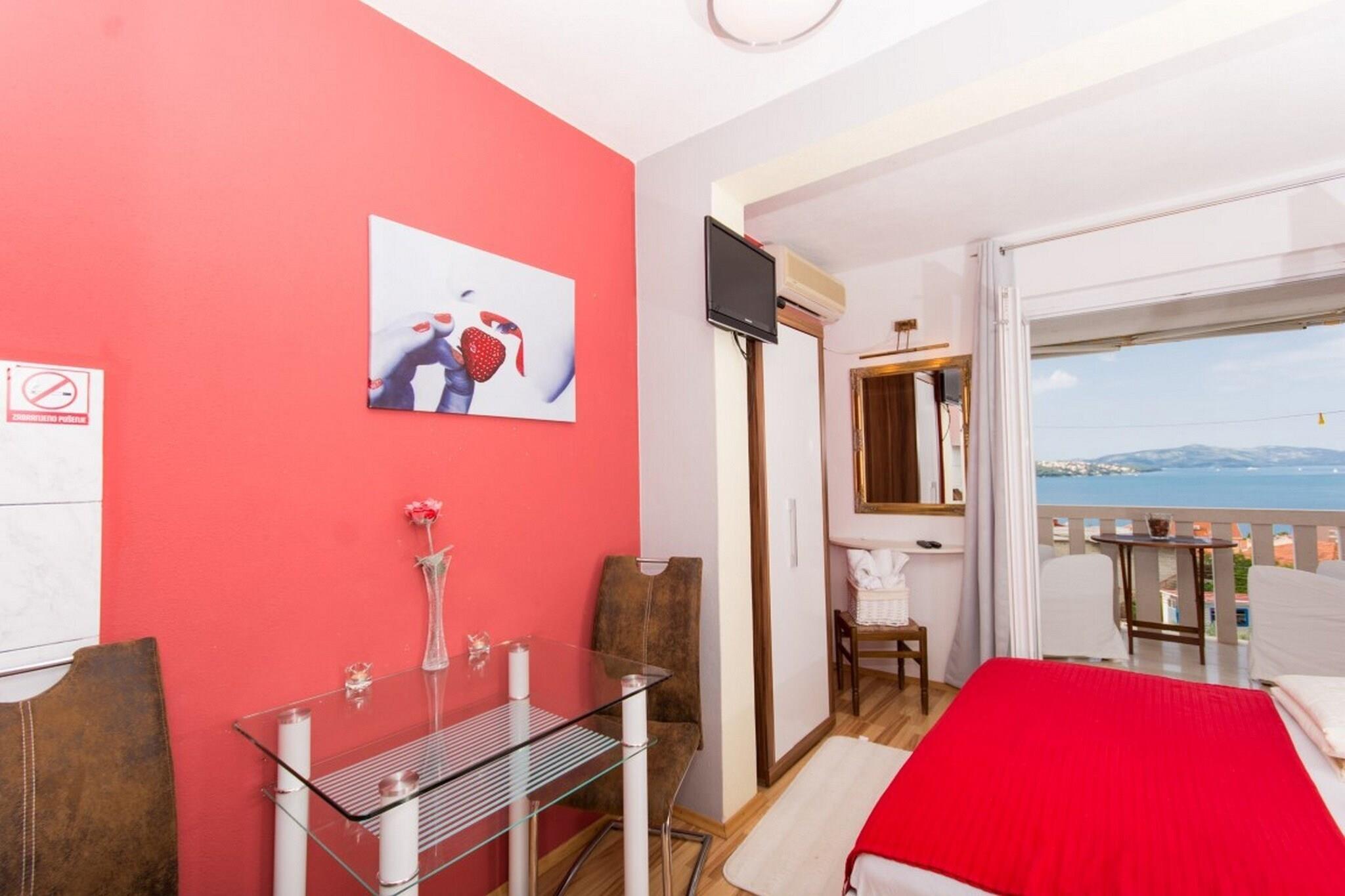 Villa Stil is located in Okrug Gornji located in the beautiful traditional village Okrug Gornji on the Island of Ciovo. Villa Stil is located only 350 m from the beach. Spacious terrace fitted with sun beds and parasols as well as a common seasonal outdoor swimming pool and a shared garden are at your disposal. Free private parking is provided, reservation is not needed. Pets are not allowed. Baby cot is available upon request. This studio apartment with balcony and sea view can accommodate two people. It features SAT LCD TV as well as air-conditioning. Kitchen is well equipped with refrigerator, trash cans, vitro ceramics and kitchen utensils. The private bathroom comes with shower and toilet.Hair dryer as well as linens and towels are at your disposal. By virtue of property's advantageous location, situated just 350 m from the restaurant and 350 m from the beach and bus stop, guests can find everything they need for every day life during their vacation in the vicinity of apartment. The closest super market is only 350 m away. Split airport is only 4.60 km away.