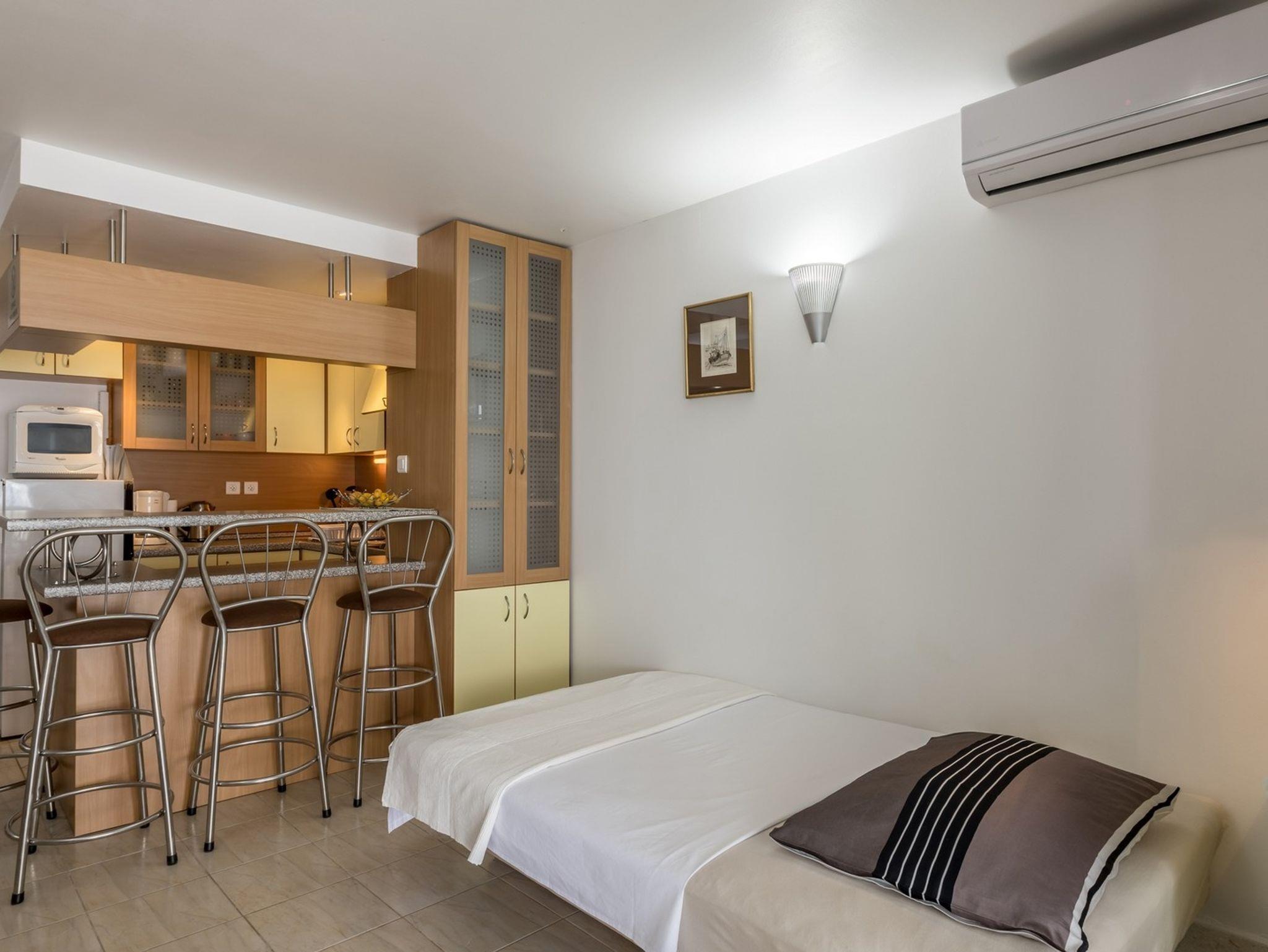 Ferienwohnung bietet Platz für 4 Gäste. Die Betten sind in Schlafzimmern, die es 1 gibt, und in Wohnzimmer, innerhalb einer Gesamtfläche von 49m2, angeordnet. Die Gäste haben eine eigene Terrasse zur Verfügung, auf der sie in warmen Sommernächten genießen können. Das Apartment bietet Meerblick. Es ist erlaubt, Speisen auf dem Gemeinschafts-Grill vorzubereiten. IM PREIS INBEGRIFFEN: Kurtaxe, Endreinigung, Klimatisierung, Parkplatz, Internet, Kinderbett, Bügeleisen, Föhn. Die Verfügbarkeit zusätzlicher Dienstleistungen in Ihrem reservierten Termin und die Preise derselben (falls nicht aufgeführt) müssen im Voraus überprüft werden. Zusätzliche Dienstleistungen die in der Zahlungsaufforderung nicht aufgeführt sind werden direkt beim Vermieter bezahlt, angenommen der Gast nutzt auch diese.