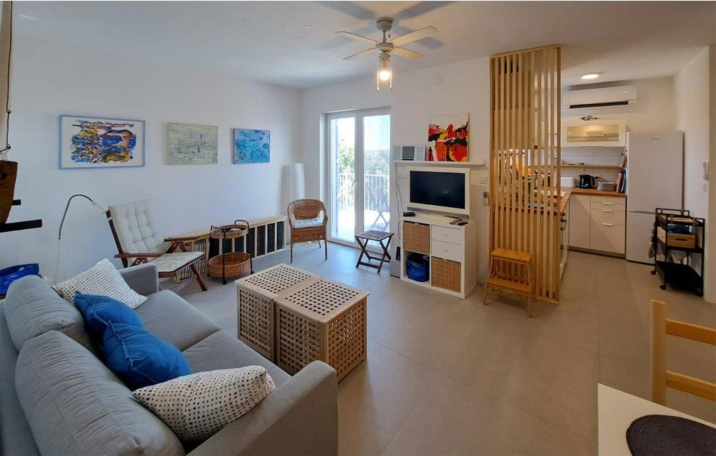 Tilbring en afslappende ferie i dette smukke feriehus på den charmerende ø Olib. Velkommen til denne skønne og hyggelige lejlighed i et moderne etageejendom. Lejligheden ligger på 1. sal og er veludstyret og nænsomt indrettet. Du kan finde dig tilpas i stuen eller spille kort ved spisebordet. Spis dine daglige måltider på den store balkon og læg planer for dine ture rundt på øen. Du ankommer til øen med daglig færge fra Zadar. Øen kan nås med bil parkeret i nærheden af lejligheden. Det er ikke tilladt at køre bil på øen, undtagen ved ankomst og afrejse. Oplev derfor den lille ø med smukke sand- og stenstrande. På øen ligger en af de mest berømte sandstrande ved Adriaterhavet, Slatina. Brug mange timer her på at nyde den dejlige badning og solbadning. Byen Olib har en bysandstrand med en betonkyst, brusere, toiletter og omklædningsrum. Du kan spille beachvolley, og der er en park for børn. For dem, der kan lide skyggen, er der en fyrreskov i umiddelbar nærhed, samt en værtshus og cafe ved bredden. Øen Olib har veje og stier til korte og lange gåture, nogle af vejene er også velegnede til cykling. Oplev øen og nyd freden og naturen. Bemærk: Olib har ikke et vandforsyningssystem, men beboerne bruger regnvandstanke eller grundvand. Dette vand bør, medmindre det er renset, ikke bruges til at drikke, men emballeret vand bør købes i butikken. Lejligheden har en drikkevandsrenser.