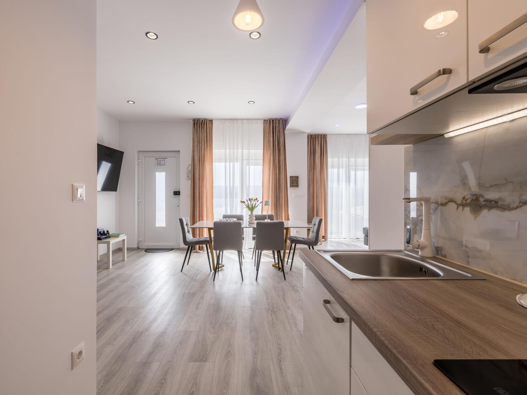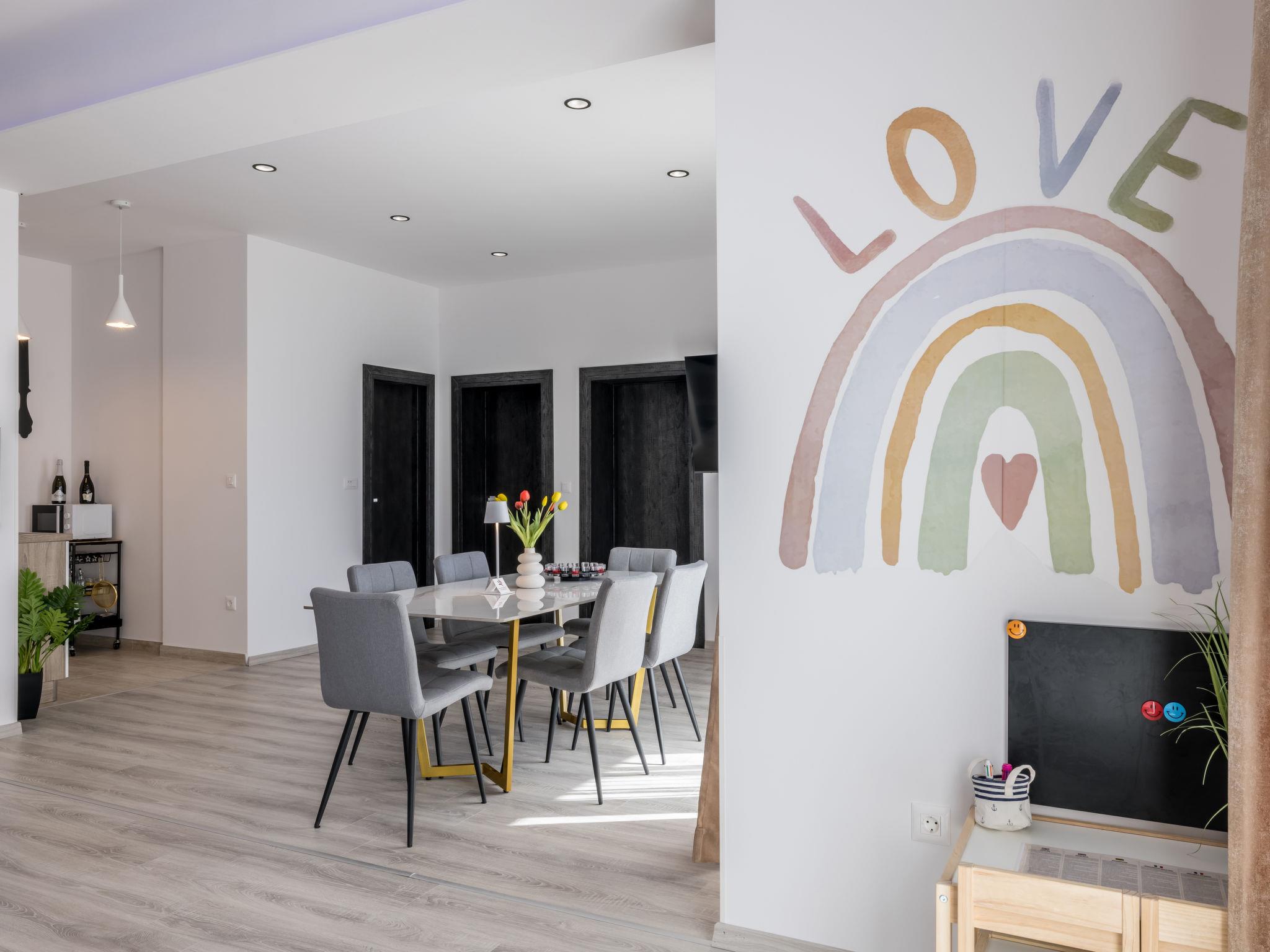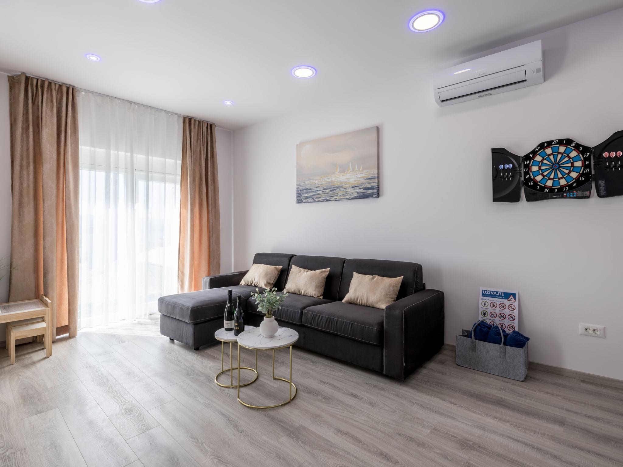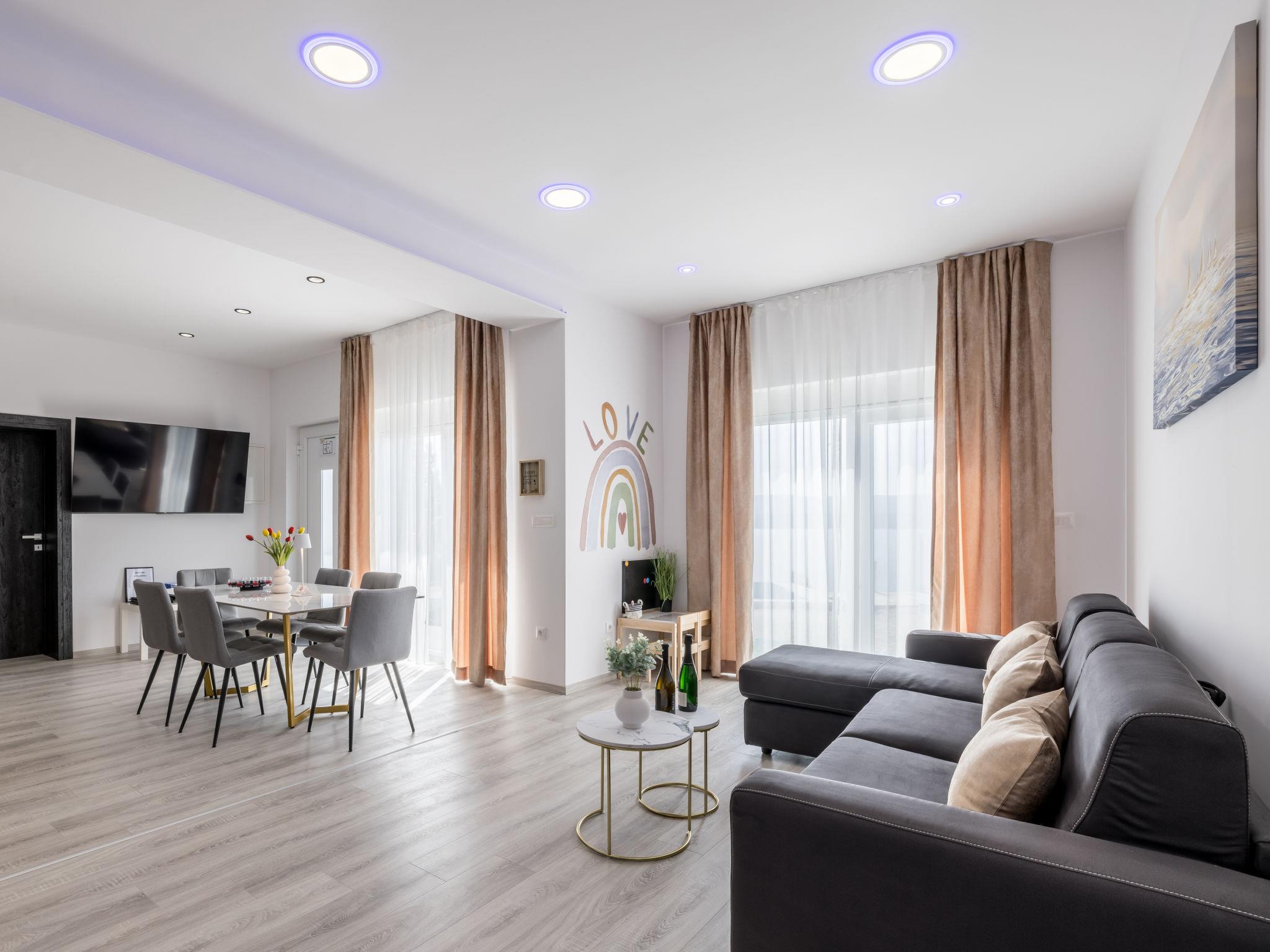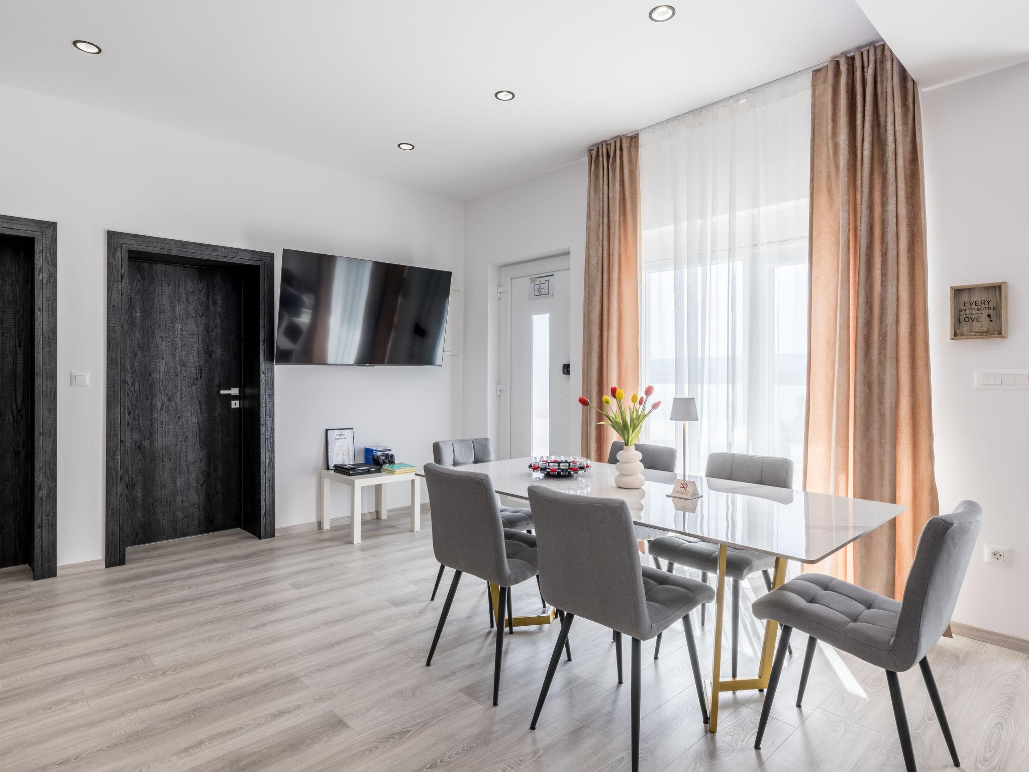 2-family house, 2 storeys, built in 2023. 6 km from the centre of Omiš, 31 km from the centre of Split, in a quiet, sunny, elevated position, 750 m from the sea, 800 m from the beach, in a cul-de-sac. Private: property 450 m2 (fenced), swimming pool angular (6 x 3 m, depth 170 cm, seasonal availability: 15.May. - 01.Oct.). Outdoor shower, badminton, terrace (30 m2), garden furniture, barbecue. In the house: internet access, table football. Parking (for 3 cars) at the house on the premises. Shop 500 m, restaurant 1 km, bus stop 1.6 km, pebble beach, rocky beach 800 m. Video surveillance of the driveway and parking.