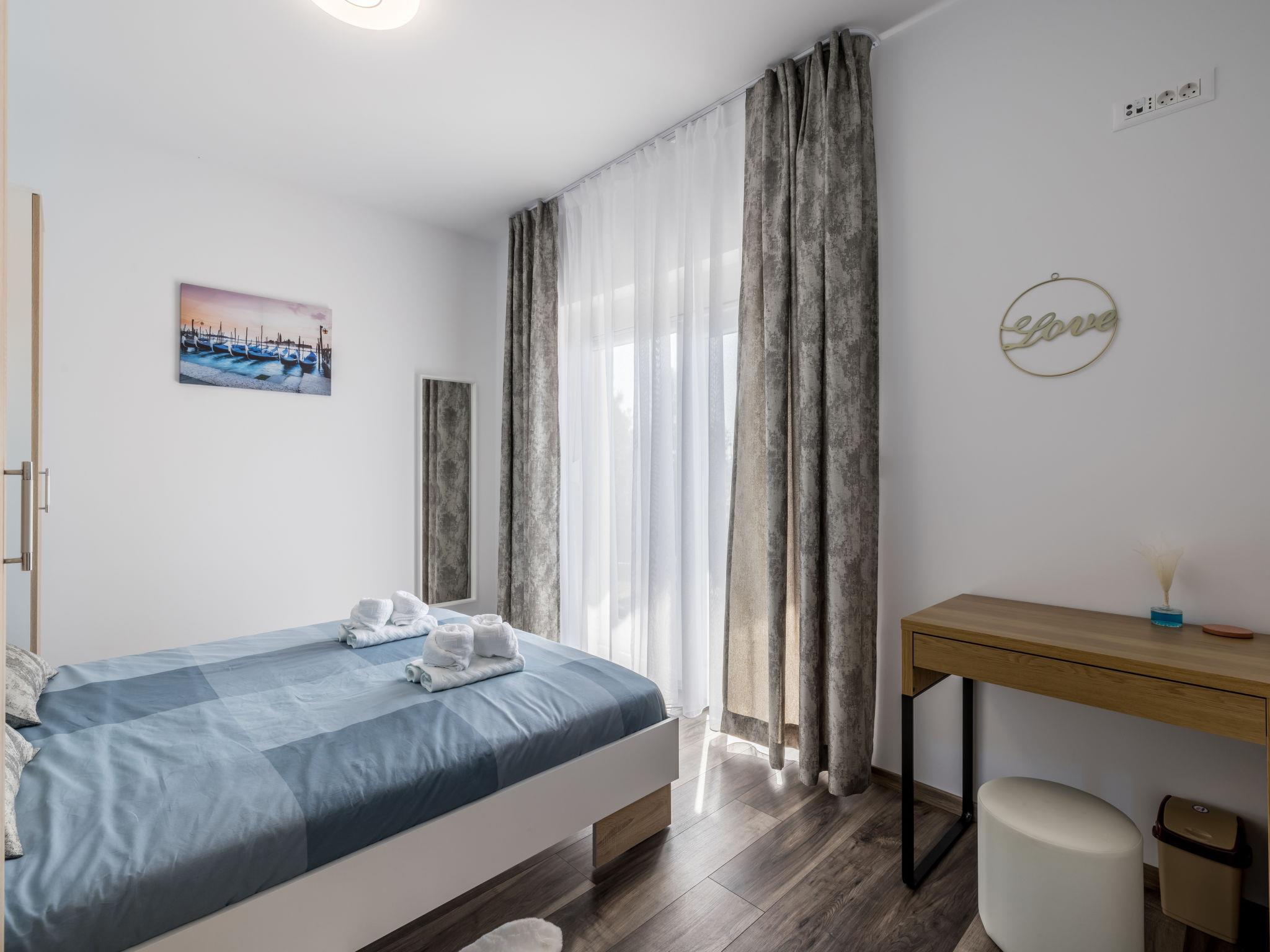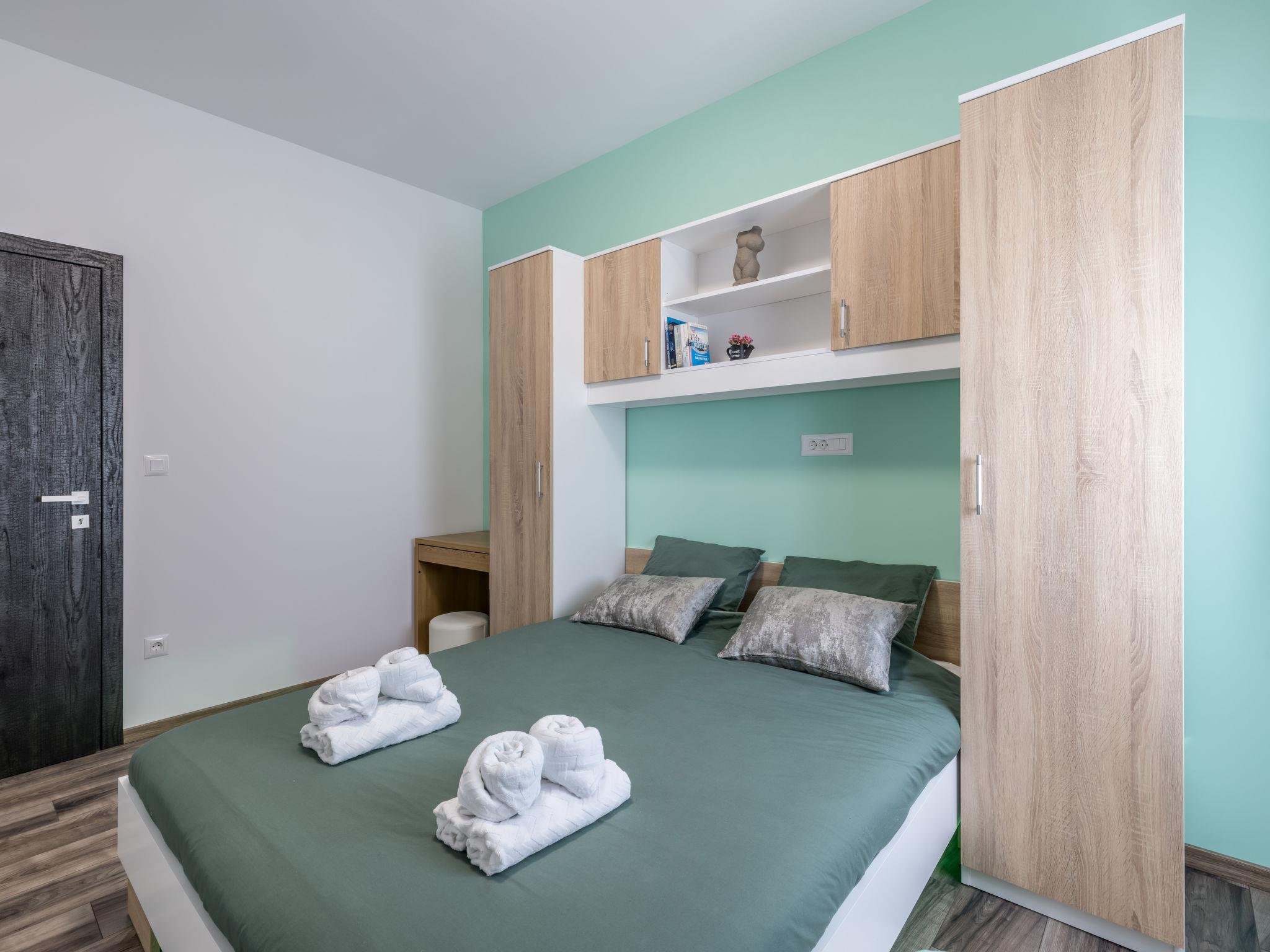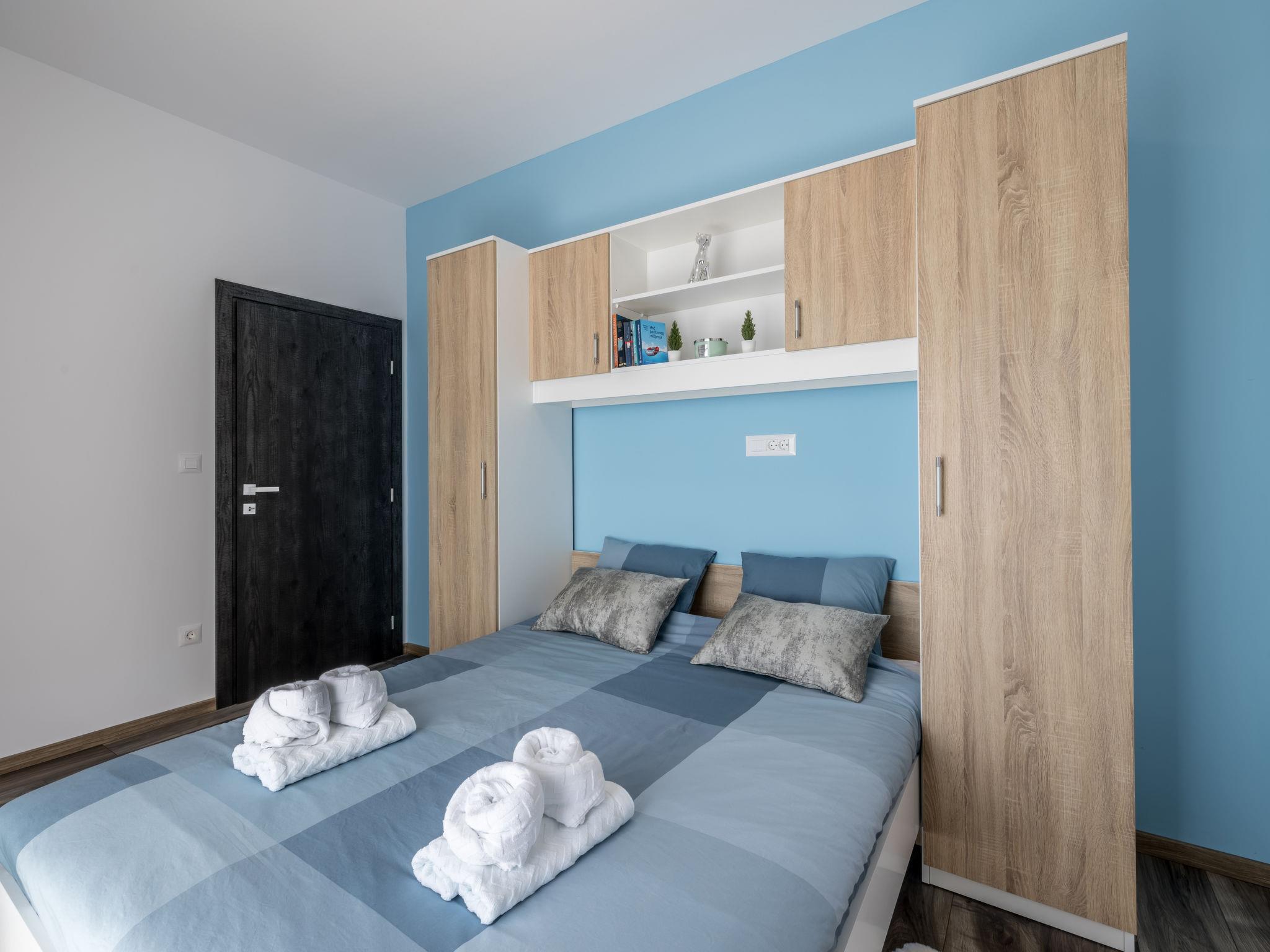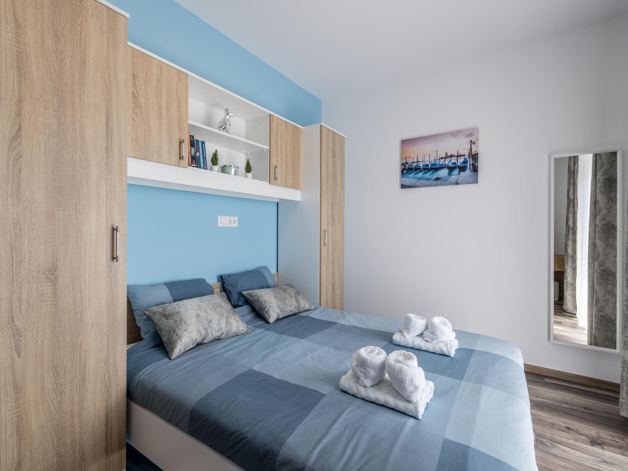 "Luxury Mir", 3-room apartment 80 m2, lower ground floor, south facing position. Living/dining room with 1 double sofabed (140 cm, length 200 cm), satellite TV (flat screen), air conditioning. Exit to the terrace, to the swimming pool. 1 room with 1 french bed (160 cm, length 200 cm), fan. Exit to the swimming pool. 1 room with 1 french bed (160 cm, length 200 cm), fan. Open kitchen (dishwasher, 2 induction hot plates, toaster, kettle, microwave, freezer, electric coffee machine). Shower/WC. Barbecue, deck chairs (4). Marvellous panoramic view of the sea. Facilities: iron, baby cot, hair dryer. Internet (WiFi, free). 2181/1-06/05-18-24-3-DP