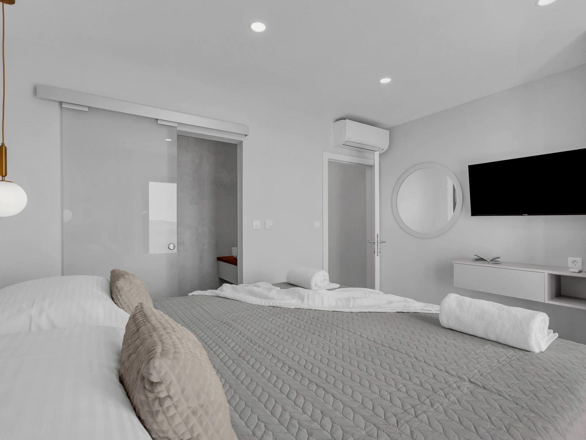 4* villa has its own swimming pool equipped with sunbeds, an outside shower and a beautiful view of the Mediterranean sea.