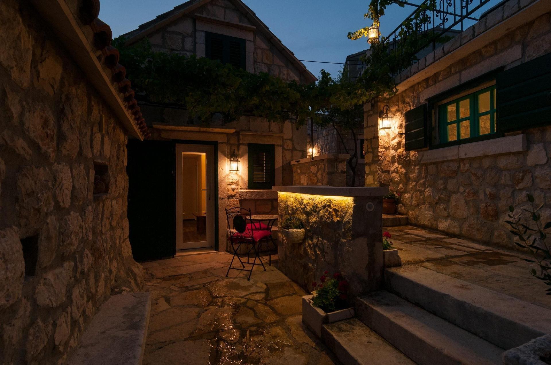 Four of the five apartments are in the interior courtyard, which is planted with olive trees and grape vines and provides a variety of seating and a grill. It invites you to relax and enjoy sociable gatherings. It is for the use of all guests. Therefore the individual apartments do not have their own private outdoor areas, but right in front of the door there is outdoor seating. It is only the studio apartment that has a private balcony with a view of the Adriatic. Five cars can be parked in front of the main house.