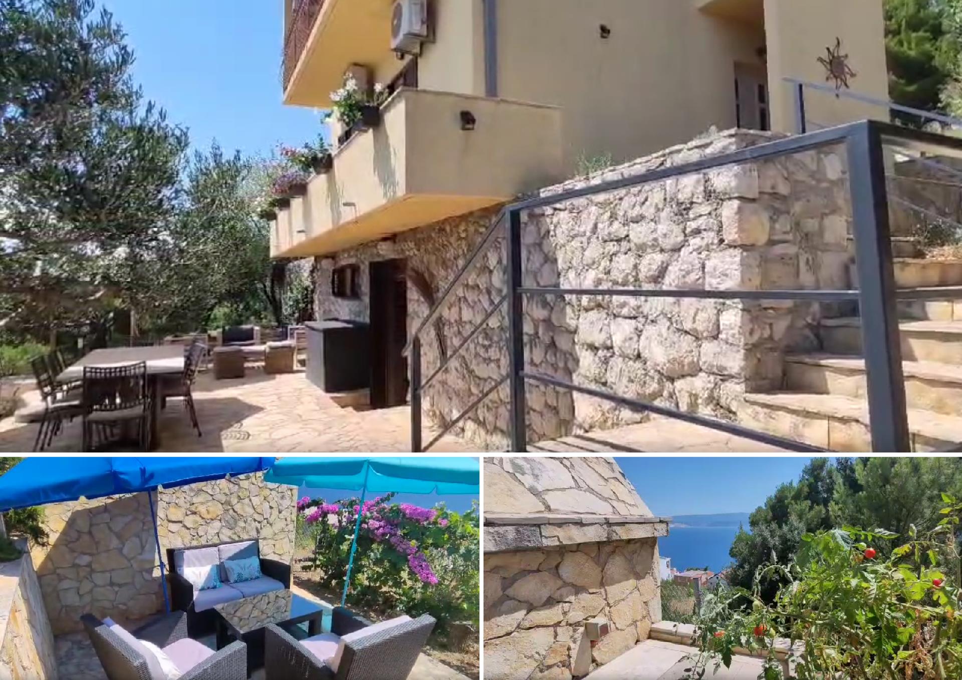 The outdoor area includes a swimming pool, a sunbathing area with sun loungers and parasols. You can also enjoy your evenings outdoors and prepare your meals on the barbecue. Relax by the private pool, enjoy the breathtaking views of the Adriatic Sea, the islands, and Biokovo National Park, and enjoy the ultimate comfort of the house.