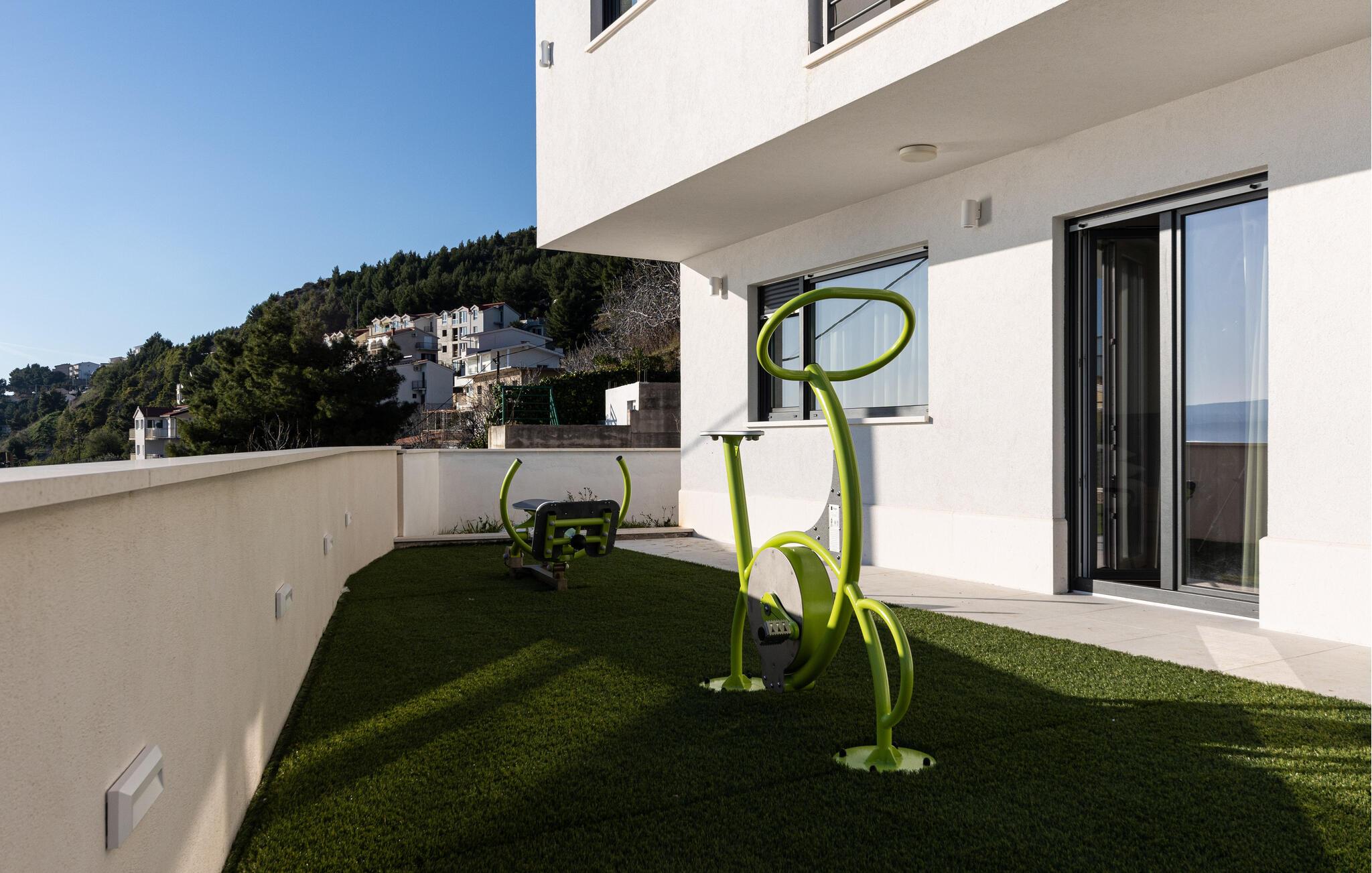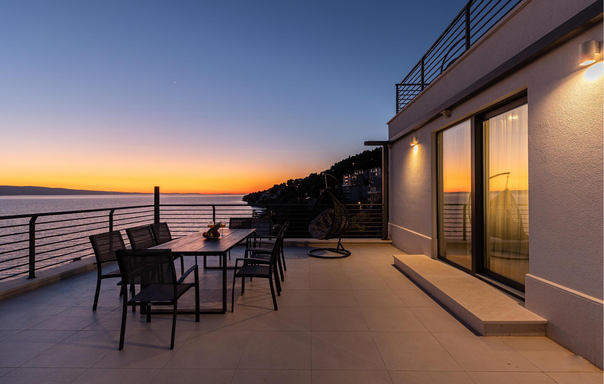 Det luksuriøse udendørsområde har adskillige terrasser, hvorfra I kan nyde en betagende udsigt over havet. snup en frisk dukkert i infinity-poolen, forkæl jer selv med en forfriskende drink i loungeområdet, nyd måltider al fresco eller træk jer tilbage med jeres yndlingsperson til en romantisk solnedgang.