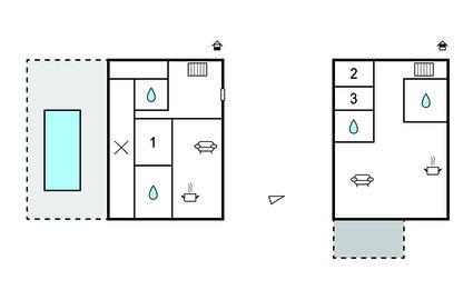 Badeværelse 7m2 (nr. 1) - WC. Varmt og koldt vand. Bruser og badekar