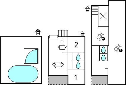 Badeværelse 3m2 (nr. 1) - WC. Varmt og koldt vand. Bruser