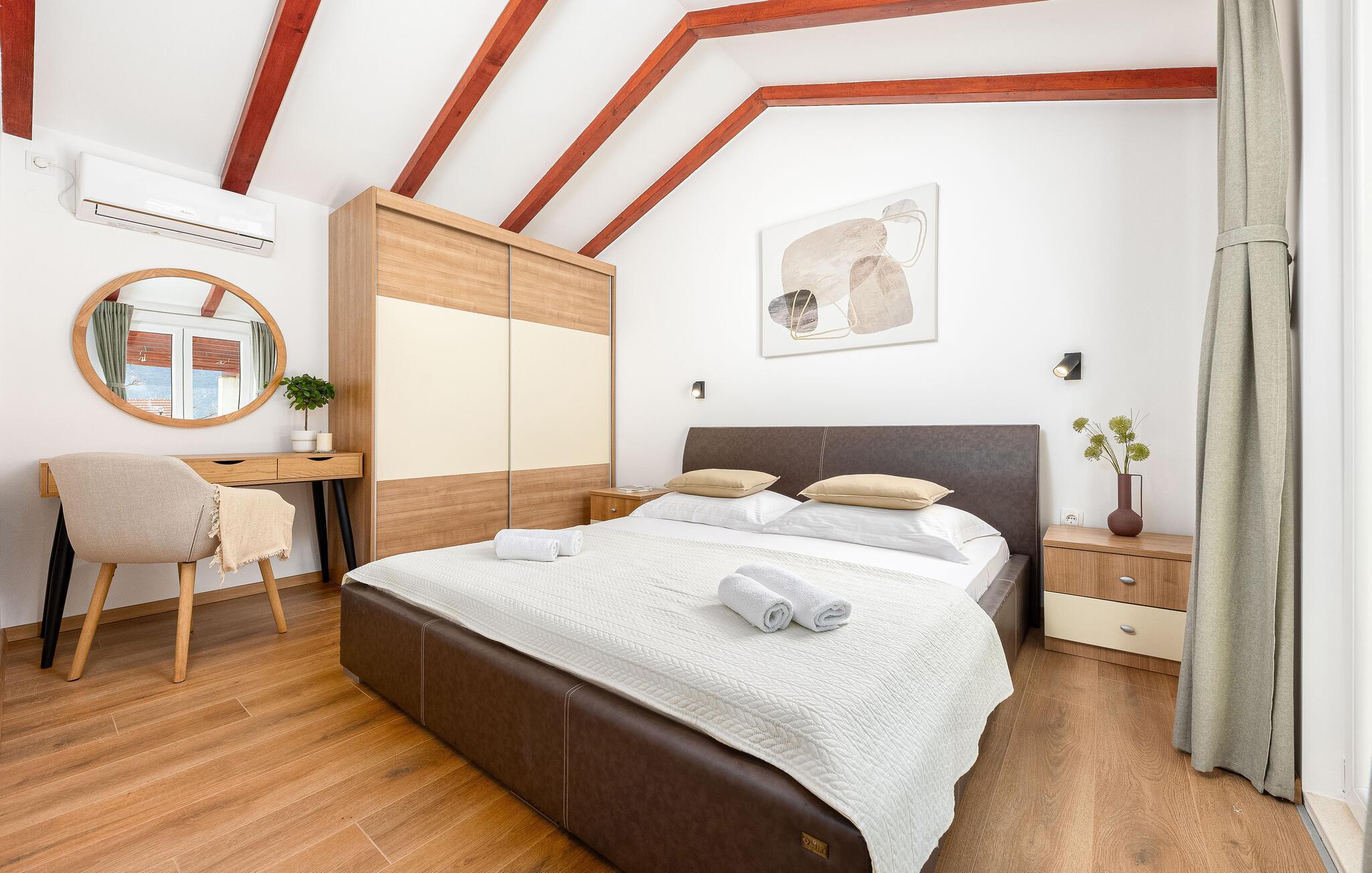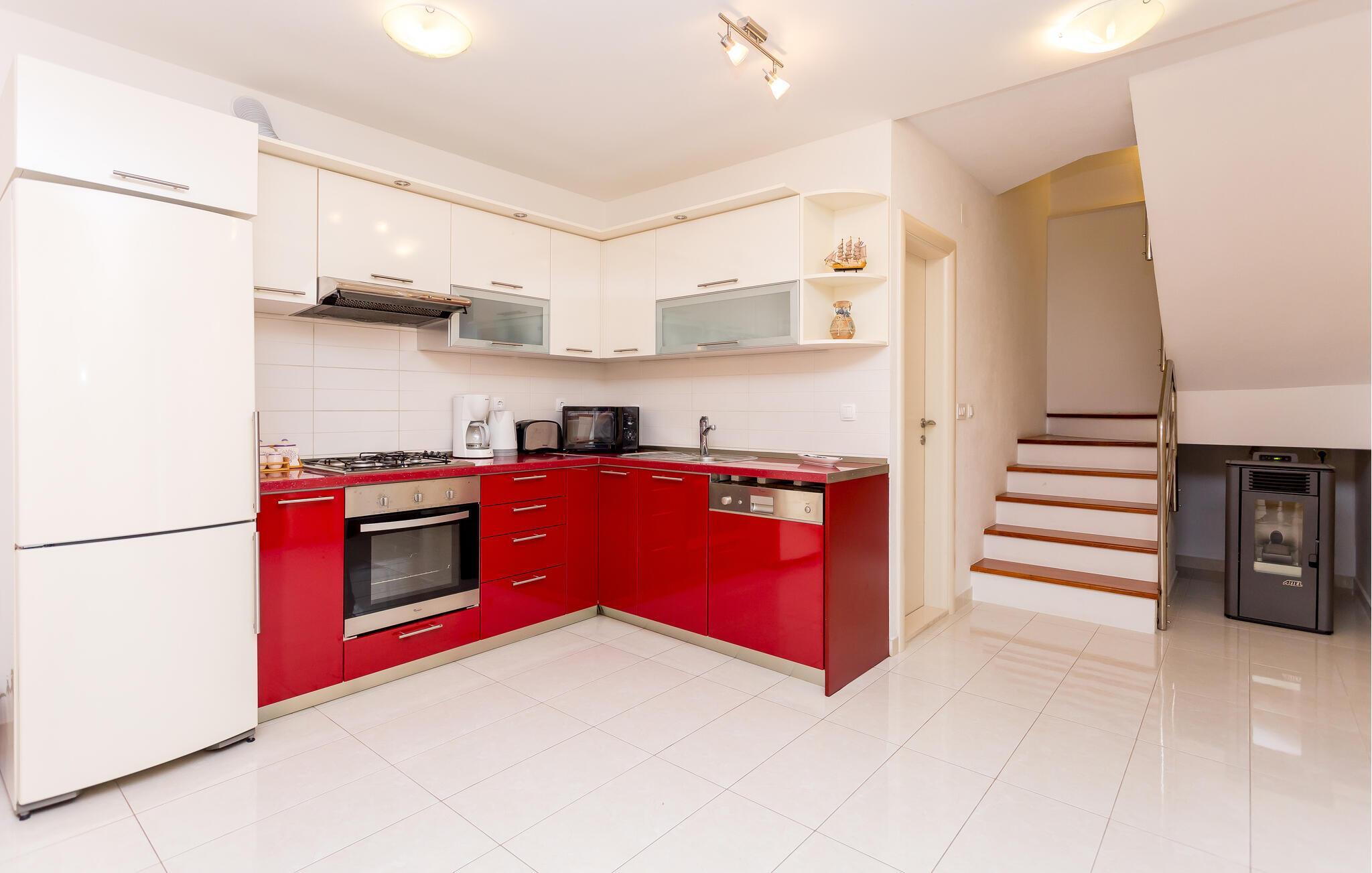 Tag en pause fra hverdagens hektik og rejs med familien til Ostrvica, hvor der venter jer en fantastisk base i dette rummelige og komfortable feriehus. Med sine mange kvadratmeter og soveværelser med eget badeværelse er huset det perfekte valg for jer, der gerne vil rejse som større flok uden at give køb på hverken komfort eller privatlivets fred. Huset hjerte er det åbne køkken-alrum, hvor I kan kræse om livretterne i det veludstyrede køkken, inden I runder aftenen af med brætspil eller en god film i sofaen efter en aktiv feriedag.