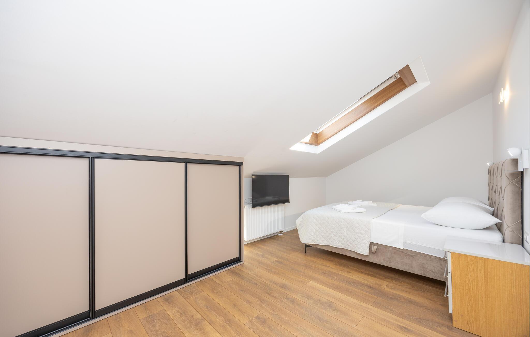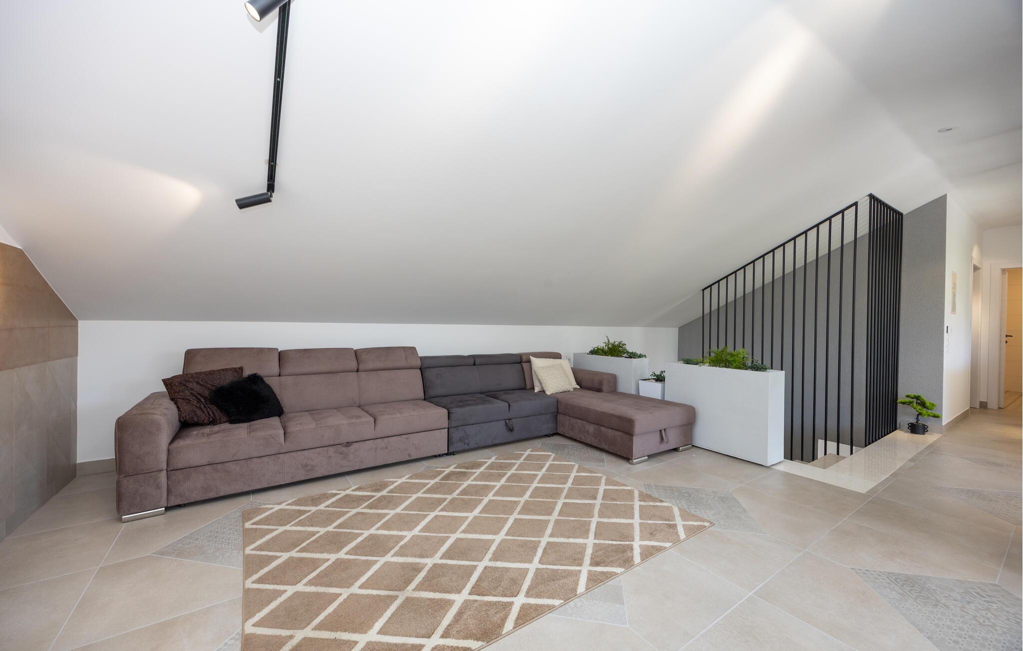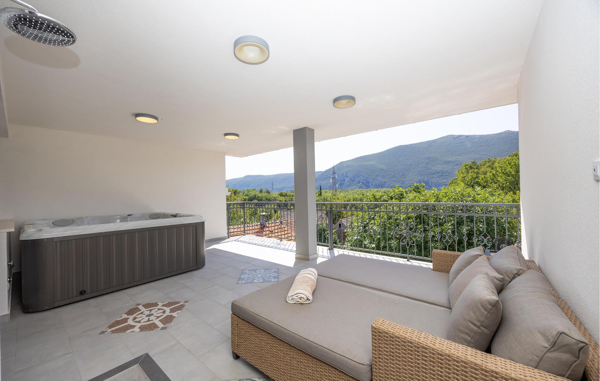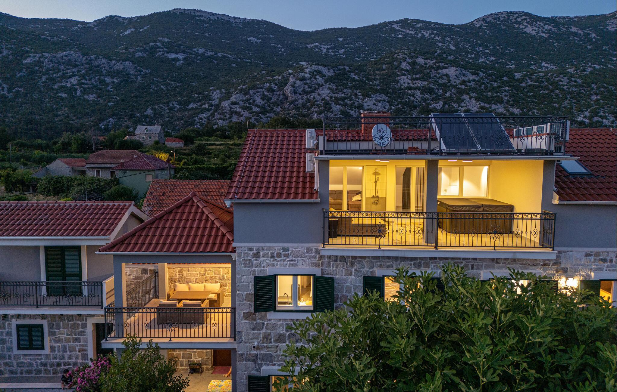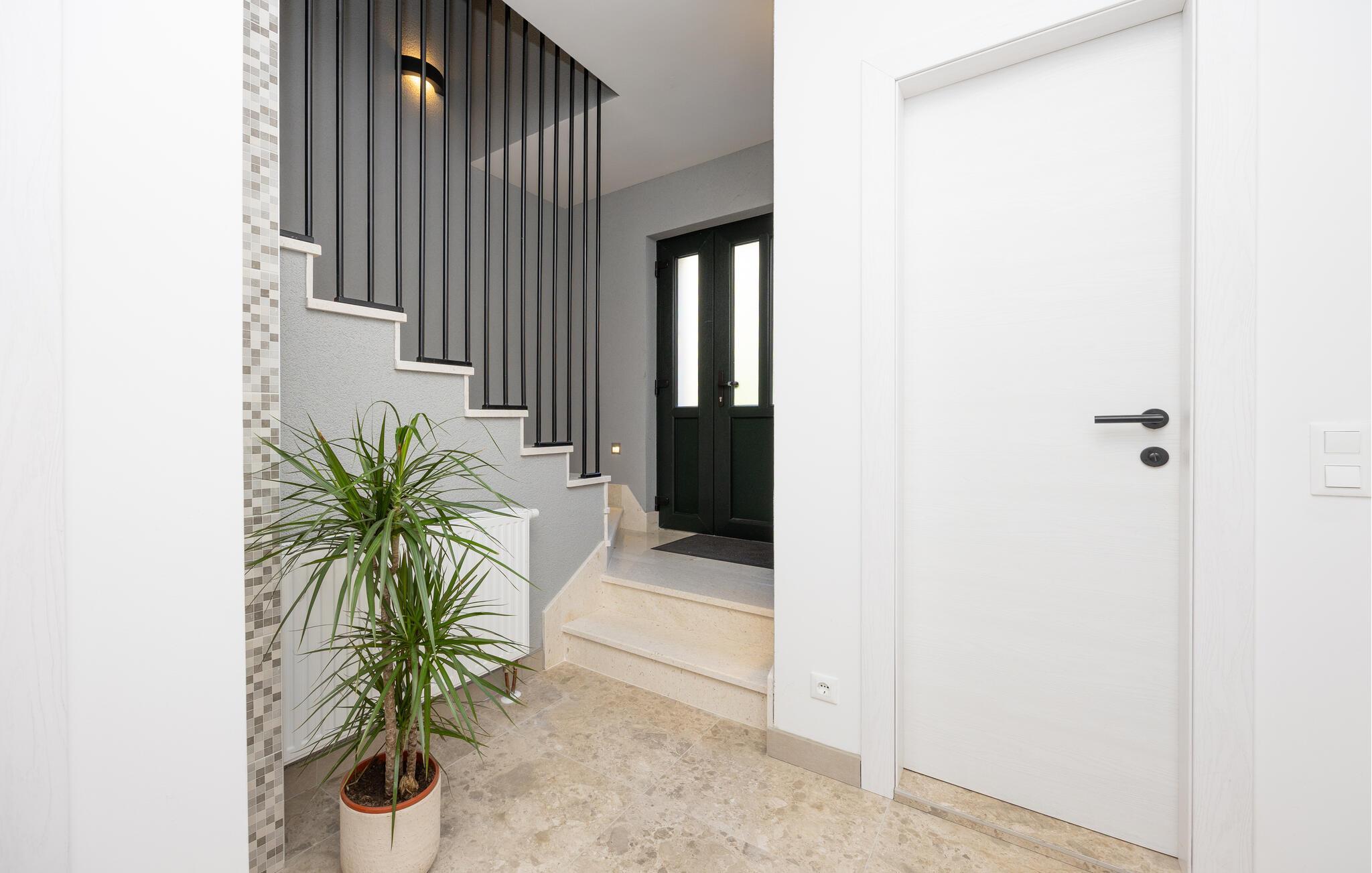 Oplev uforglemmelige ferier i dette luksuriøse feriehus med pool og spabad. Dette indbydende hus kombinerer moderne elegance og rustikke elementer på perfekt vis. Naturstenslook i stuerne, stilfulde møbler og pejs skaber en harmonisk atmosfære, hvor I hurtigt kan genoplade batterierne. Slap af med en kop kaffe eller et hjemmelavet måltid med et glas vin. Hvis I har lyst til motion, er der træningsmaskiner i fitnessrummet. Gå ud på terrassen ved de første solstråler og nyd den vidunderlige udsigt over de grønne, skovklædte bakker. Nyd en god morgenmad og fordyb jer derefter i en god bog. Svøm et par afslappende baner i poolen eller slap af i spabadet. Mød jer til en grillfest om aftenen og afslut dagen i en afslappet atmosfære. Tilbring afslappende timer på strandene ved Omiš Riviera, som er ideelle til svømning, solbadning og snorkling. Udforsk byen Omiš, hvor historiske gader, Cetina-flodens udmunding og det nærliggende hav smelter sammen til en unik atmosfære. Tag på vandretur gennem det omkringliggende bjerglandskab omkring Ostrvica og nyd en storslået udsigt. De, der leder efter noget mere aktivt, kan prøve rafting på Cetina-floden eller deltage i en klatretur.