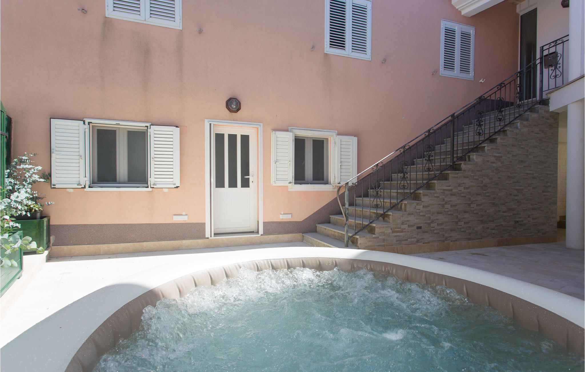 Glæd jer til en afslappende ferie i denne skønne lejlighed. Sammen som par eller jeres lille familie kan I finde jer tilpas i denne elegante lejlighed og nyde udsigten over haven. Lejligheden ligger i stueetagen og kan bookes sammen med andre lejligheder i huset, så I som stor familie eller venner har passende bolig til jeres ferie. I deler gårdhave og grill med en anden lejlighed. Slap af på jeres havemøbler, nyd i det fri spisning og tag en dukkert i jeres private jacuzzi.