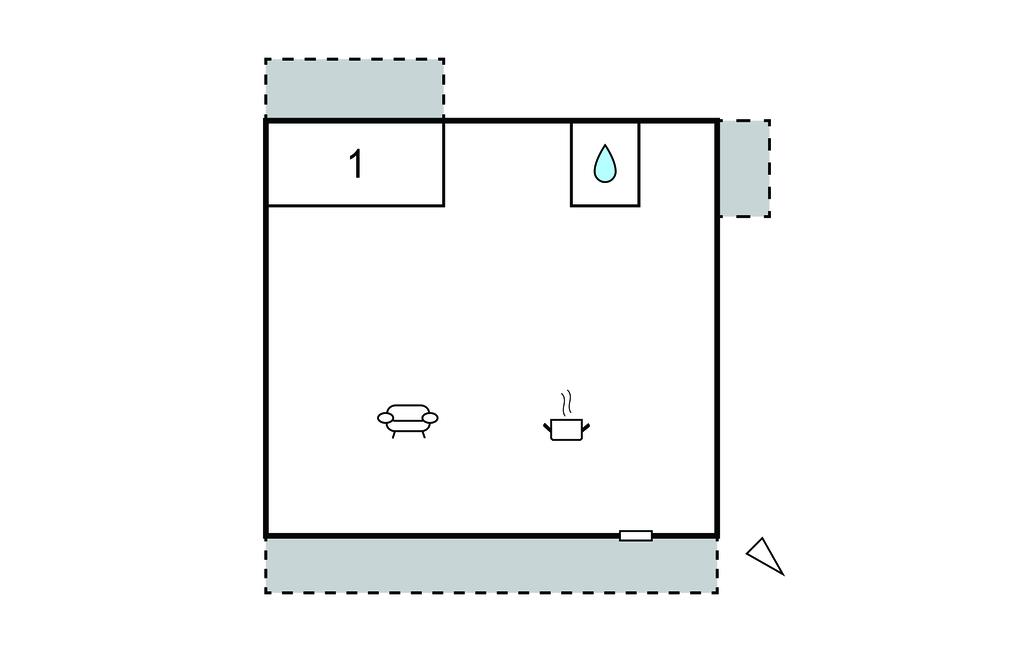 Opholdsstue/køkken 20m2 - 2 Sovepladser. (Sofa, madras eller lignende).