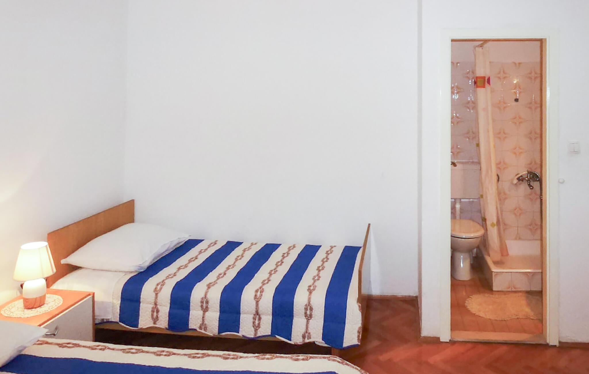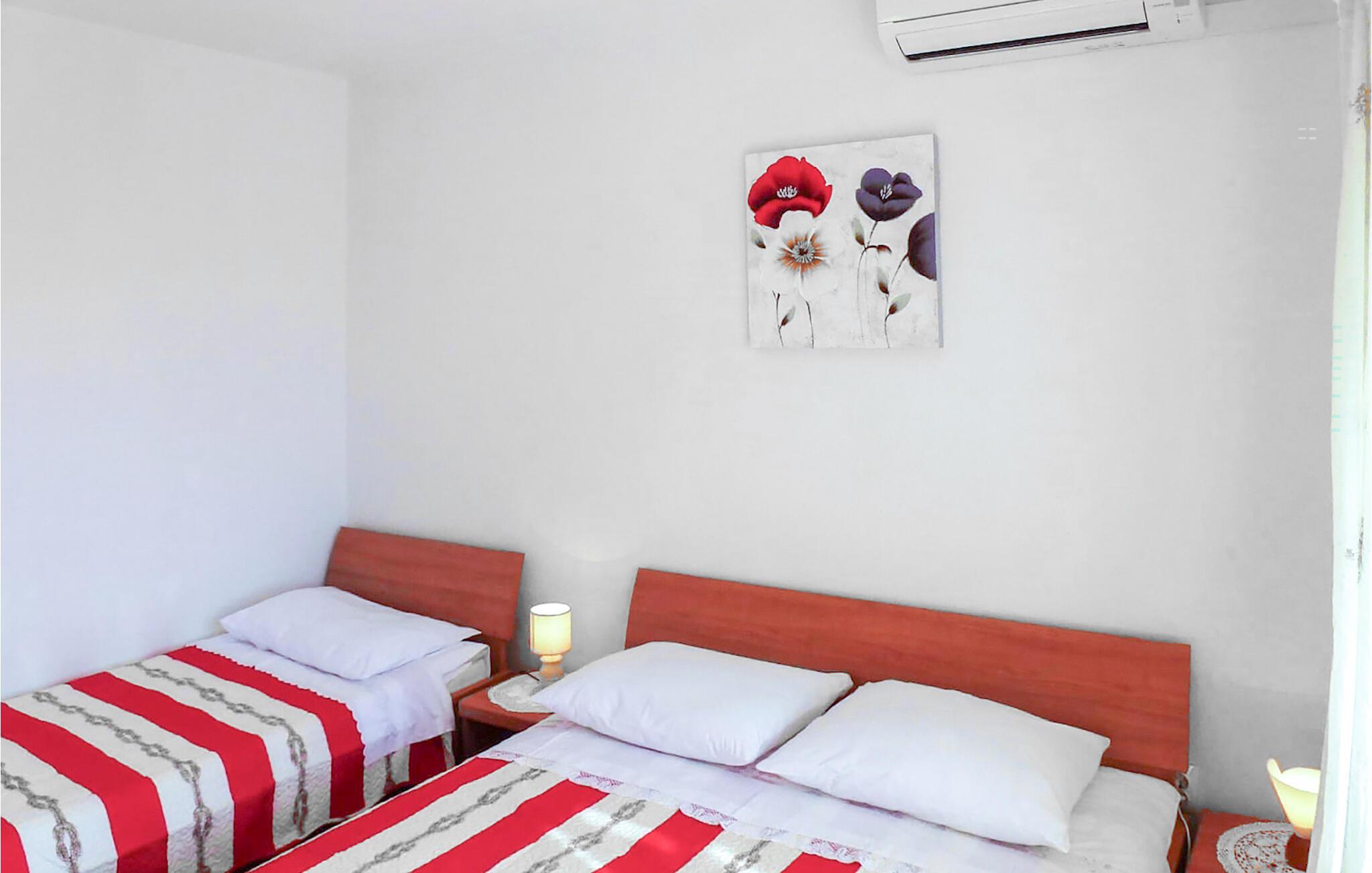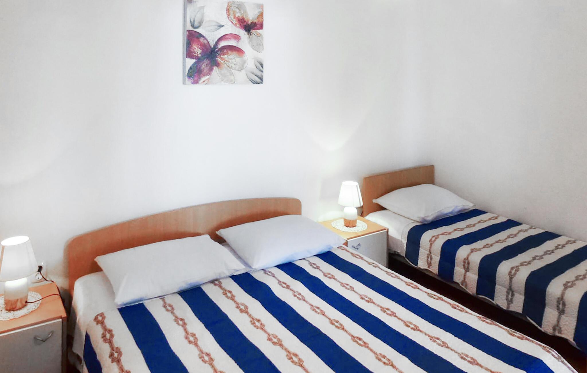 Nyd solrige dage i denne rummelige ferielejlighed nær stranden. Kun få skridt fra en smuk stenstrand byder denne lyse og komfortable ferielejlighed jer velkommen og tilbyder masser af plads til en stor familie eller en gruppe venner. Fremstil middelhavsretter sammen og glæd jer til hyggelige måltider ved det indbydende spisebord. Efter en lang dag kan I streame en film eller holde sjove spilleaftener. Nyd havet med jeres første kop kaffe på terrassen om morgenen. Gå en tur til stranden for at få en forfriskende dukkert og dyk ned i det turkisblå hav. Tænd op i grillen på den lille, fælles grund og snak over et glas vin i de lune sommernætter. Ro kajak på Cetina-floden, slentr gennem den charmerende gamle bydel i Omiš, og klatre op ad Mirabela-fæstningen eller Starigrad-fæstningen for at nyde panoramaudsigten over Adriaterhavet. Oplev de maleriske strande i Stanici, Nemira og Duce, hvor I kan svømme i det klare vand eller udforske undervandsverdenen, mens I snorkler. Tag en dagstur til Split eller besøg Makarska med dens livlige promenade.
