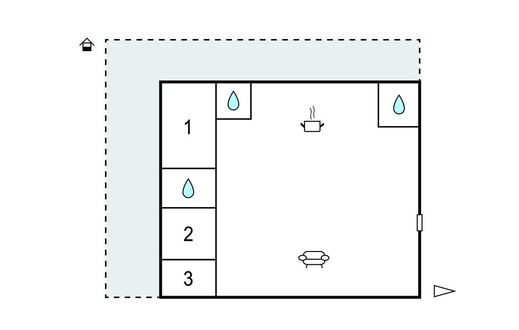 Opholdsstue/køkken 15m2 - 2 Sovepladser. (Sofa, madras eller lignende).