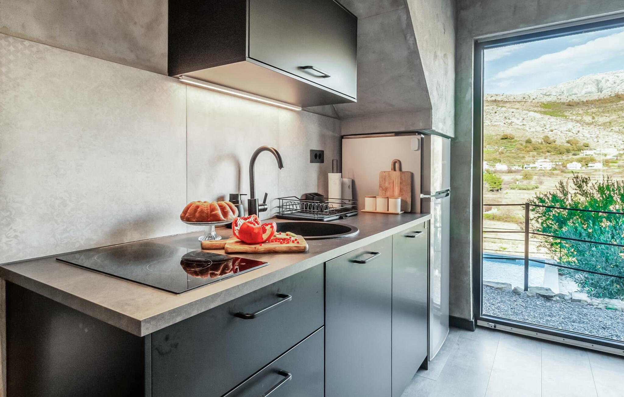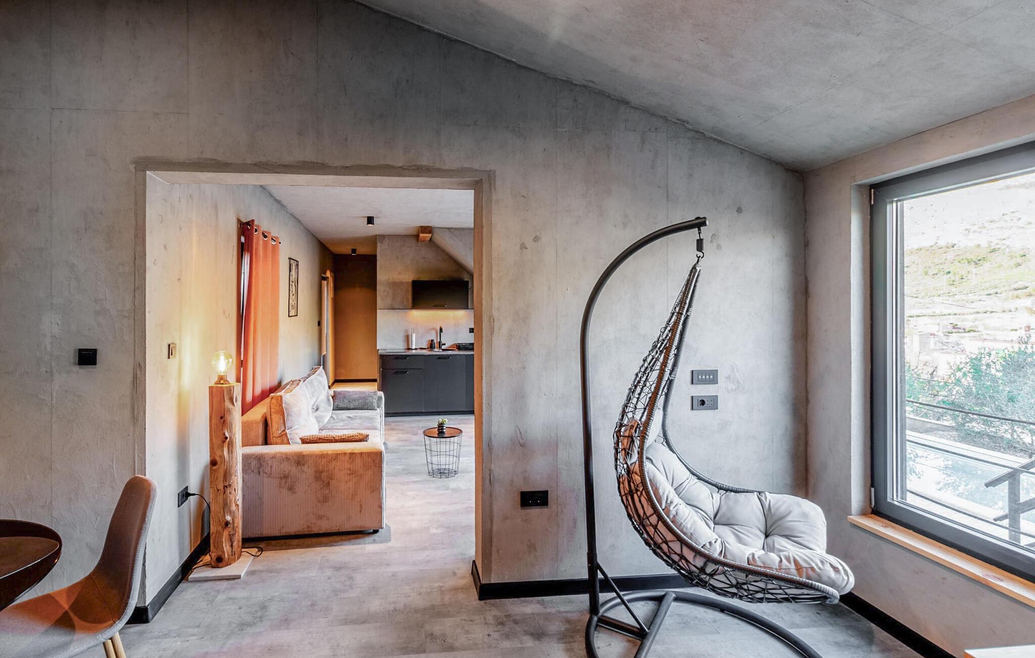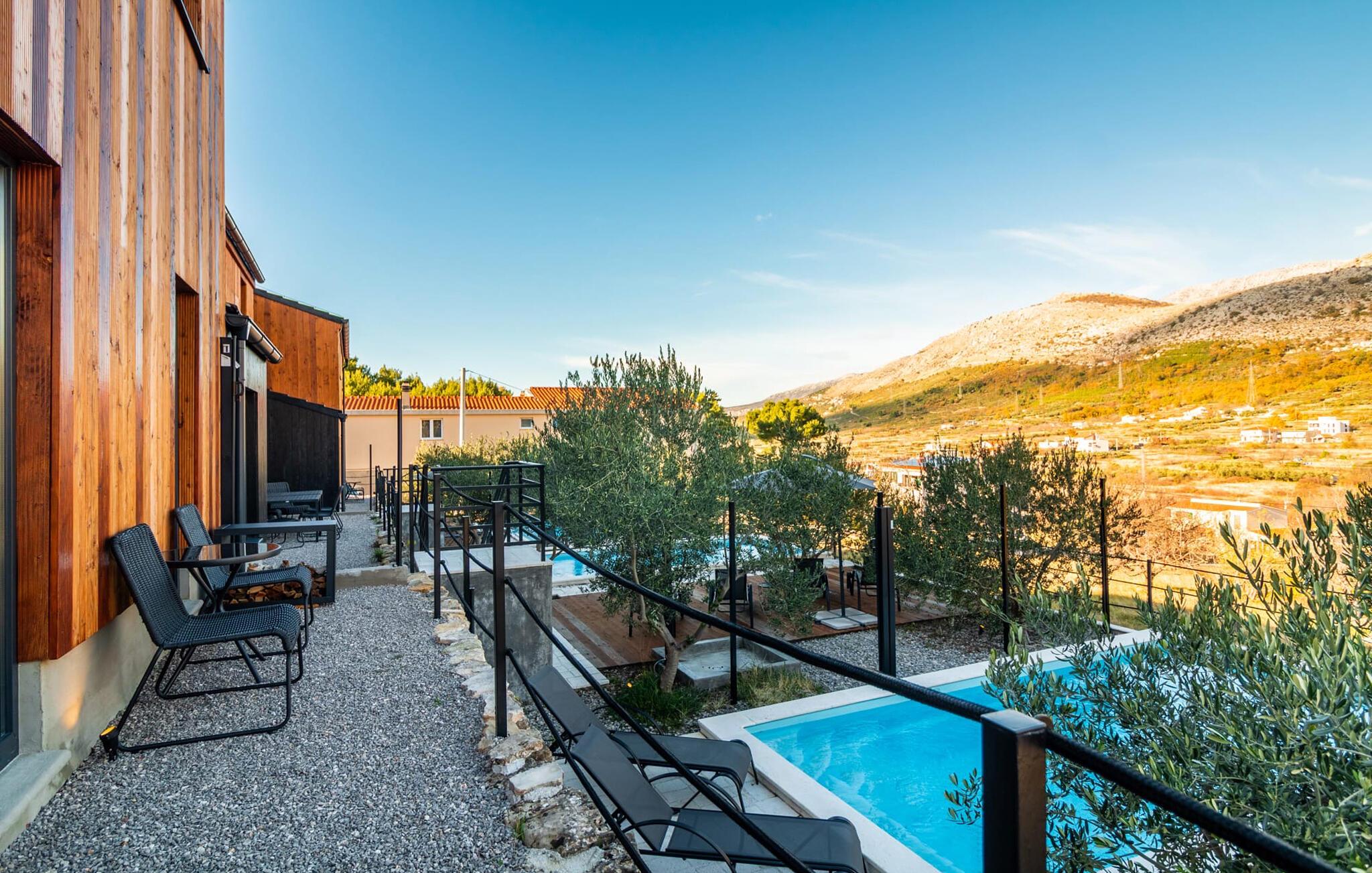 Jeres stilfulde feriehus består af tre separate boligenheder, hver med sin egen private pool, hvilket sikrer en høj grad af privatliv. De lyse opholdsområder er indrettet med moderne materialer og store vinduer. Læn jer tilbage i de komfortable sofaer og nyd det naturlige lys, der oversvømmer værelserne. Tilbered jeres måltider i de kompakte køkkener og nyd dem ved spisebordet, som giver et behageligt rum til fælles øjeblikke.