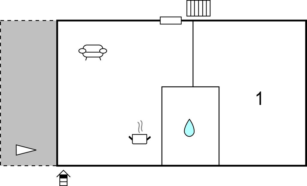 Komb. spisestue/køkken 21m2 - 1 Soveplads. (Sofa, madras eller lignende).