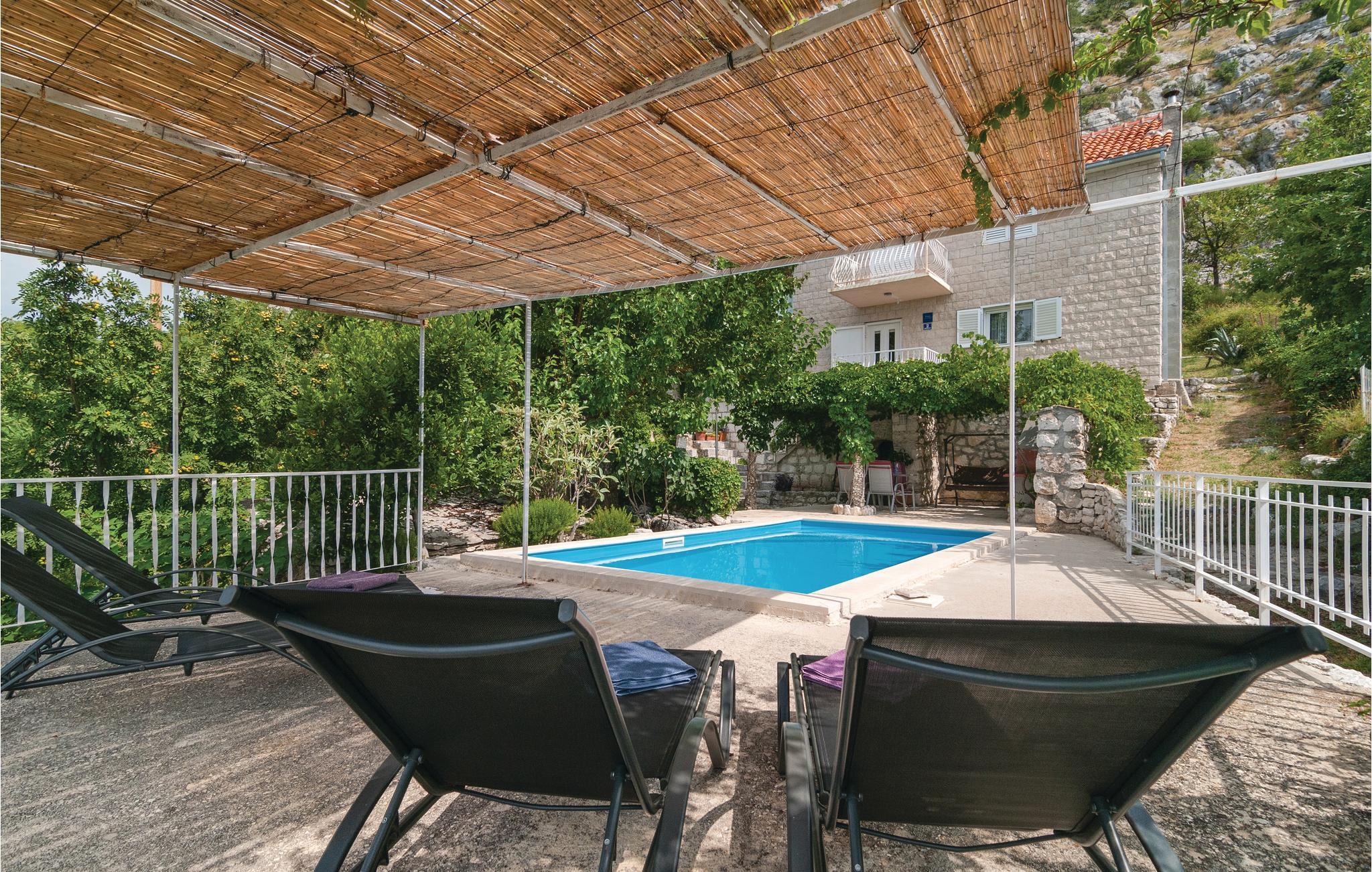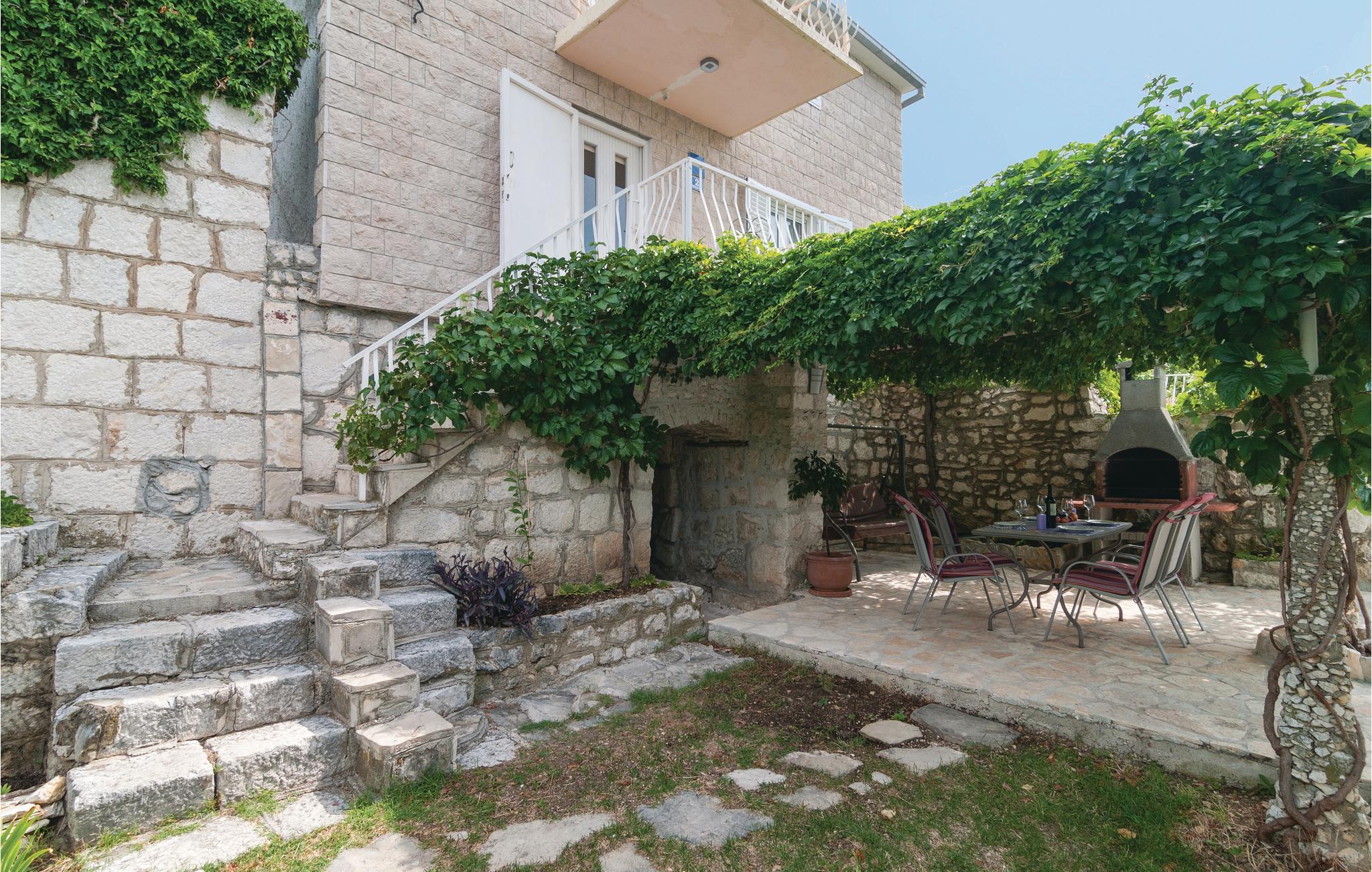 Denne ferielejlighed med adgang til pool, ligger i et gennemrenoveret dalmatisk hus. Indretningen er helt enkel, det særlige er, at lejligheden ligger i en ejendom i rolige og idylliske omgivelser. Der er mange gode stier i dette rolige og naturnære område. For dem der ønsker en aktiv ferie, er der mange gode tilbud i den nærliggende by Omis. Nyd at tage solbad og svømme fra de lange kies- og sandstrande, der ligger mellem byerne Dugi Rat og Omis. I Cetinaslugten venter der spændende aktiviteter som ziplining, riverrafting, ture i kano og mindre udfordrende: gåture langs floden. Vejen op til huet er smal og kurvet.