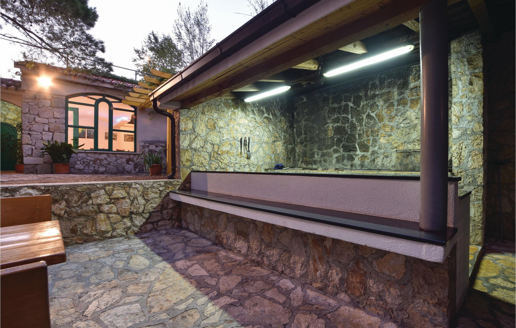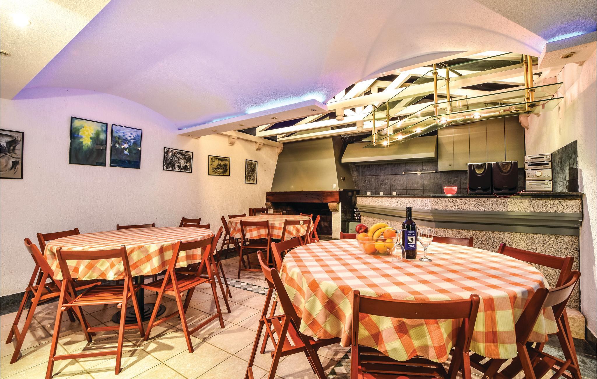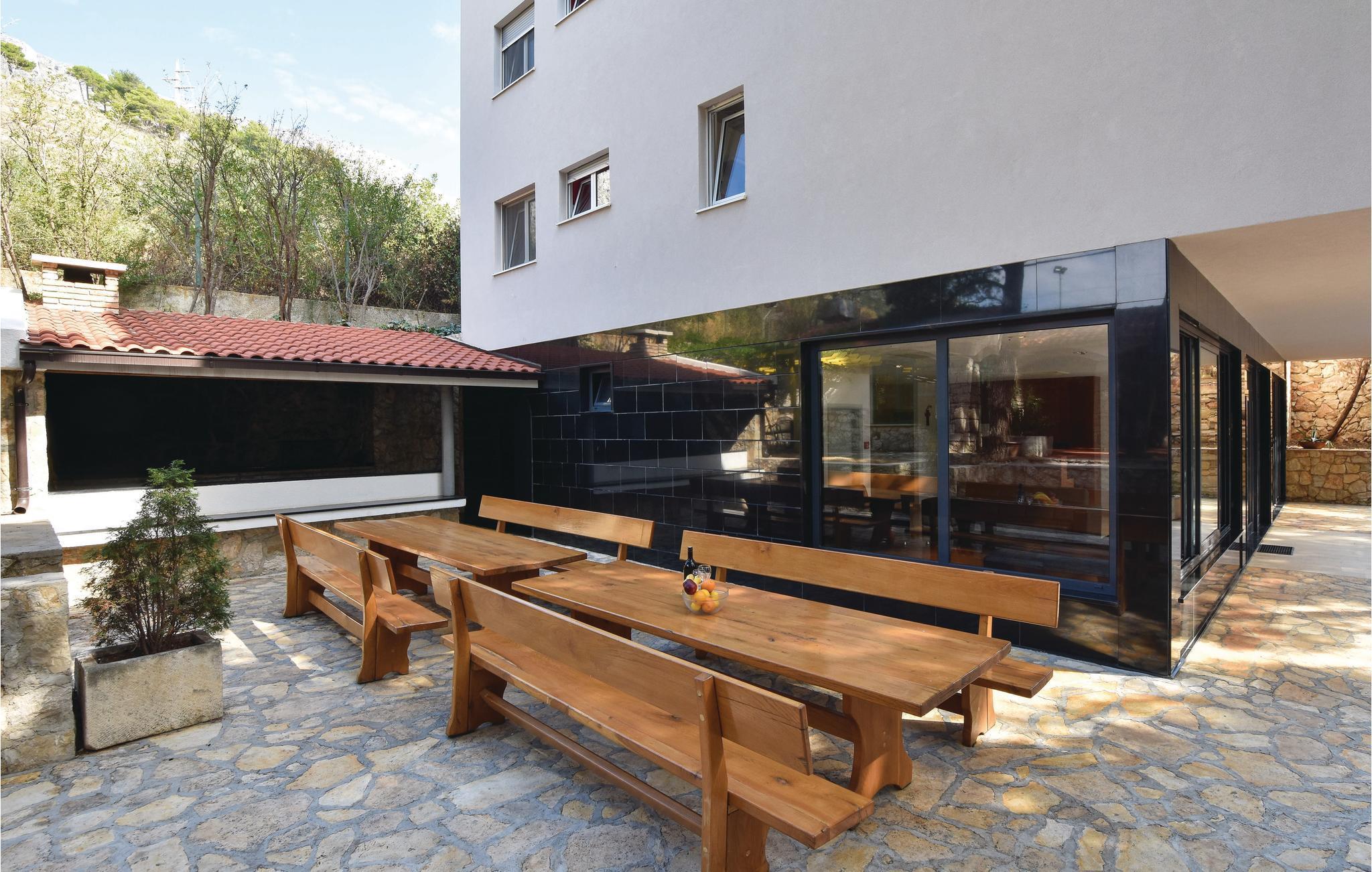 Moderne hus med masser af ekstraudstyr. Lejlighederne er forbundet via trapper og en elevator. Det fuldt klimatiserede hus ligger på en stor grund, og giver jer alle forudsætningerne for en afslappende og rolig ferie. Den hyggelige stue og indendørs pool i stueetagen inviterer dig til at slappe af fra hverdagens stress og jag. En stor udendørs terrasse med bar og grill er placeret ved siden af ??hovedhuset. Ved den store udendørs swimmingpool har du en fabelagtig panoramaudsigt over bugten ved Omis. På petanque eller tennisbanen kan voksne og børn dyste mod hinanden. Du kan også bruge tennisbanen, der har professionelt udstyr. I skyggen af ??fyrretræerne kan du på forskellige terrasser finde afkøling på de varmeste dage. Grunden har et lukket parkeringshus, hvor du kan parkere din bil. Administratoren bor i nærheden og er gerne behjælpelig med at arrangere ture til de dalmatiske øer. Hele Omis' Riviera byder på alt, hvad du behøver for en afslappende familieferie. Der er stadig steder, hvor du kan være uforstyrret, også i højsæsonen. Med bil kan man køre langs den smukke kystvej og nyde fabelagtig udsigt over til øen Brac. Nyd Middelhavet charme i de små kystbyer og gå ind i de små Konobars og restauranter. Du kan virkelig opleve de omkringliggende landsbyer, før du drejer til højre fra hovedvejen i byen. Du vil, så snart du forlader det pulserende liv på gaden, straks finde den fred, du søger.