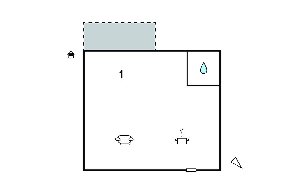 Opholdsstue/køkken 15m2 - 1 Soveplads. (Sofa, madras eller lignende).