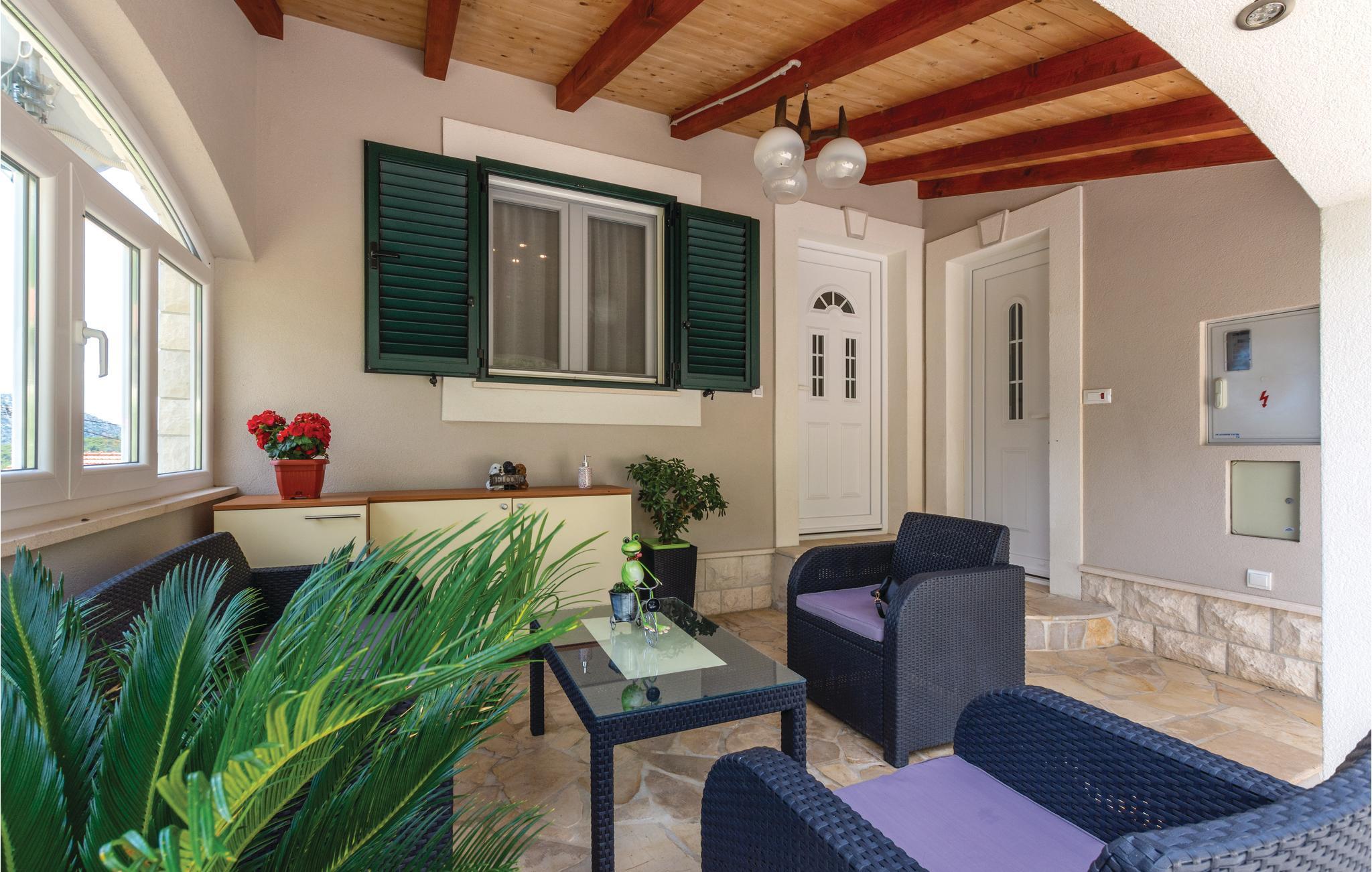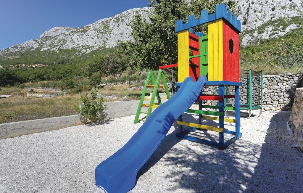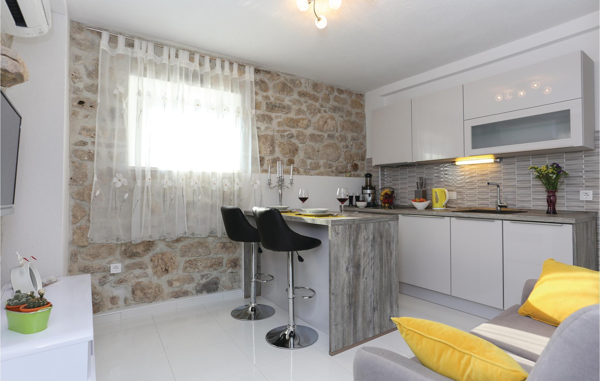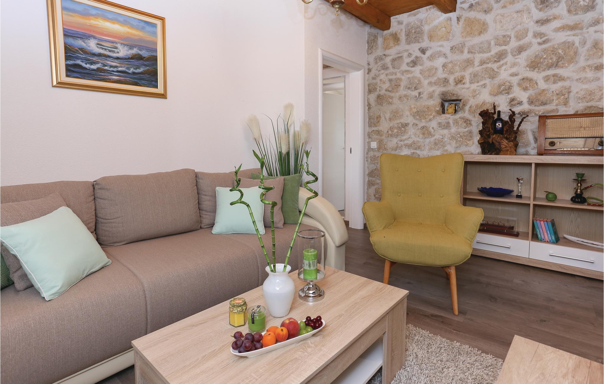 Skønt gennemrenoveret hus af sten, der ligger i landsbyen Gata, for foden af bjerget Mosor, med en betagende udsigt over det smukke landskab i Omis bagland. Huset er fordelt på to etager, som er forbundet via udendørs trappe – i stueplan er der en lille enkel lejlighed med et soveværelse, på første sal er der en mere komfortabel lejlighed med to soveværelser. I haven dominerer den dejlige swimmingpool, som I kan hoppe i lige så tit og lige når I har lyst. Der er også en konoba med en grill, hvor I kan slappe af med et godt glas vin, mens maden bliver færdig over gløderne. I bor ikke lagt fra en vandresti og mange aktivitetsmuligheder: I kan cykle, rafte og zip-line over Cetinafloden og gå lange ture. For længe siden var Gata den vigtigste by I Poljicka republikken, så besøg museet og se de mange velbevarede eksempler fra den spændende tid i byens historie.