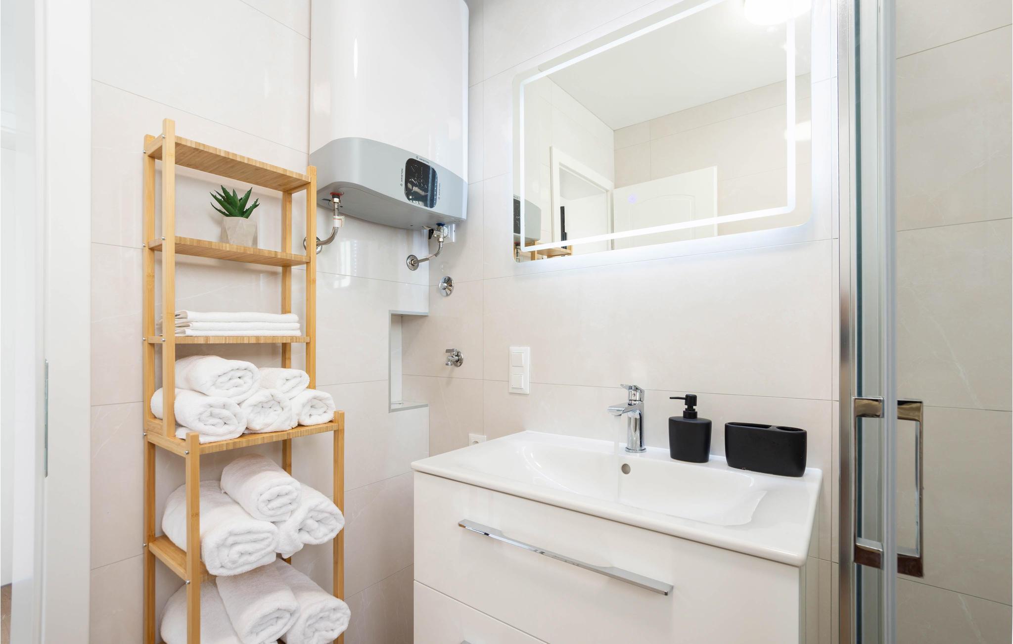 De nærliggende stenstrande betragtes som de smukkeste på Rivieraen, og den maleriske piratby Omis ligger ved mundingen af Cetina-floden, hvis kløfter giver mulighed for adskillige adrenalinsportsgrene såsom rafting, vandreture, klatring, canyoning, paragliding og meget mere. Tag et dykkerkursus og oplev den smukke undervandsverden, eller lej en båd for at udforske området fra vandoverfladen. Det er lige meget om I er til ren afslapning eller varierede aktiviteter. Enhver ferierejsendes drømme vil med garanti gå i opfyldelse her.