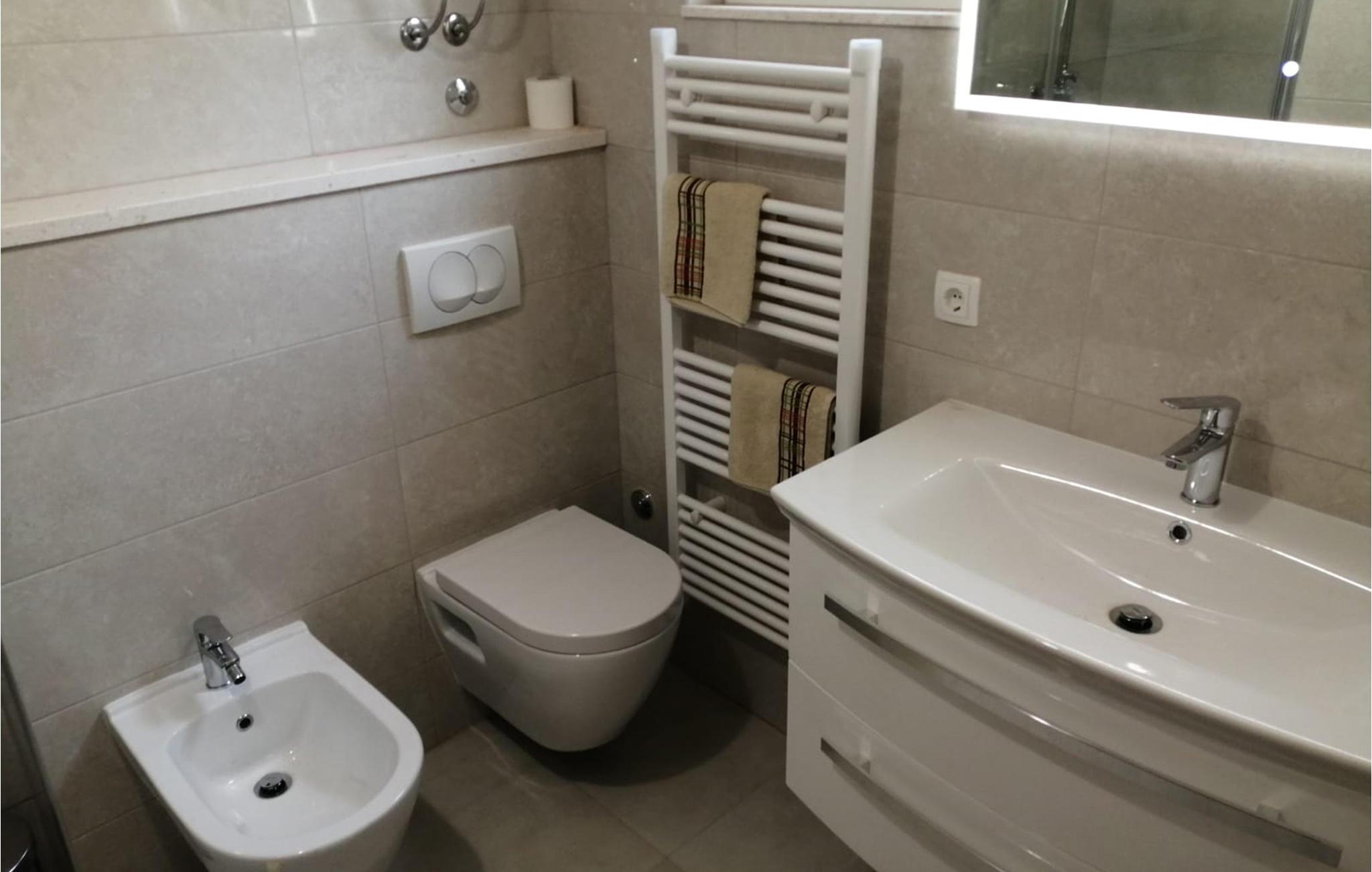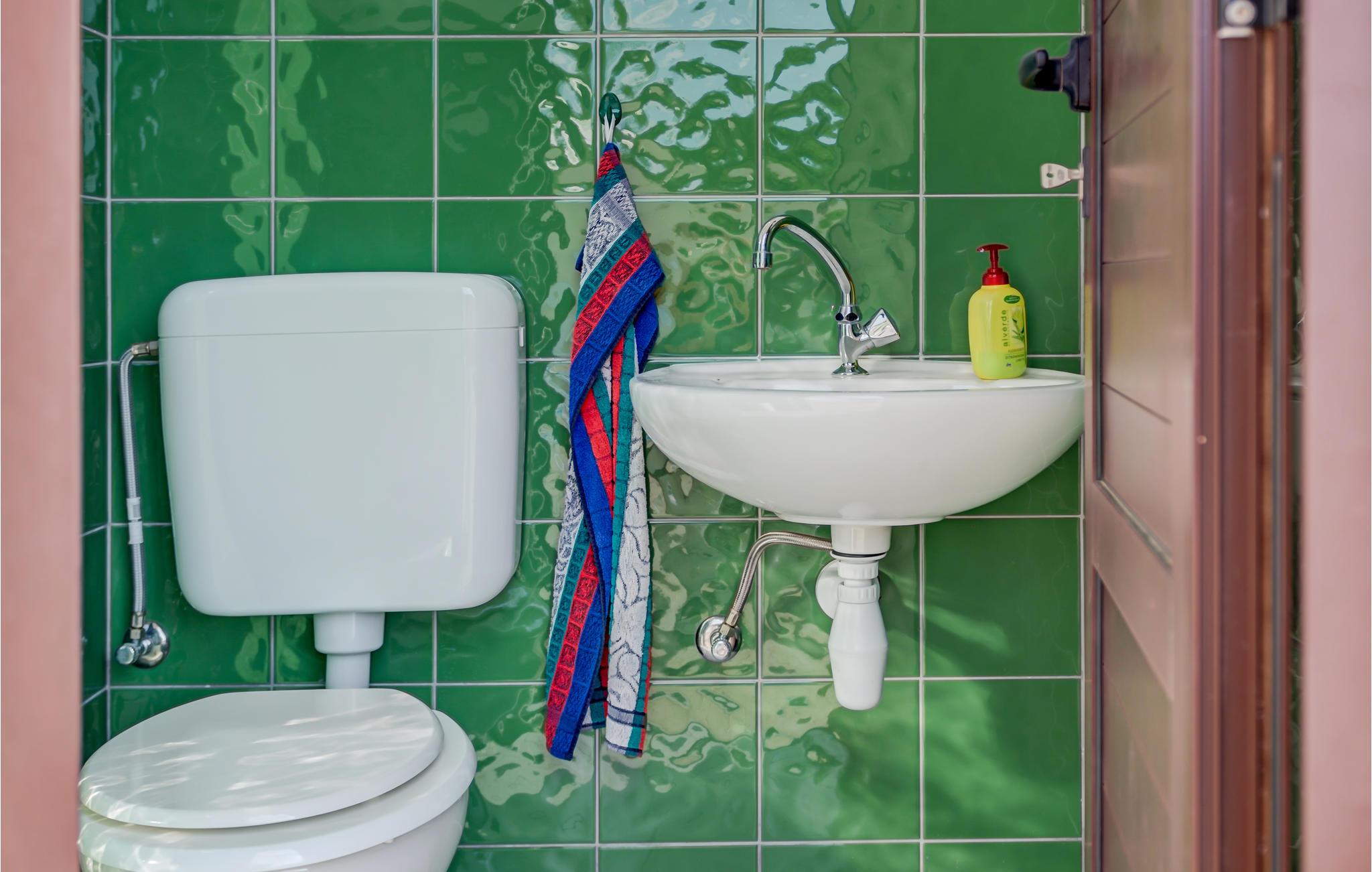 Badeværelse 9m2 (nr. 1) - WC. Varmt og koldt vand. Bruser og badekar