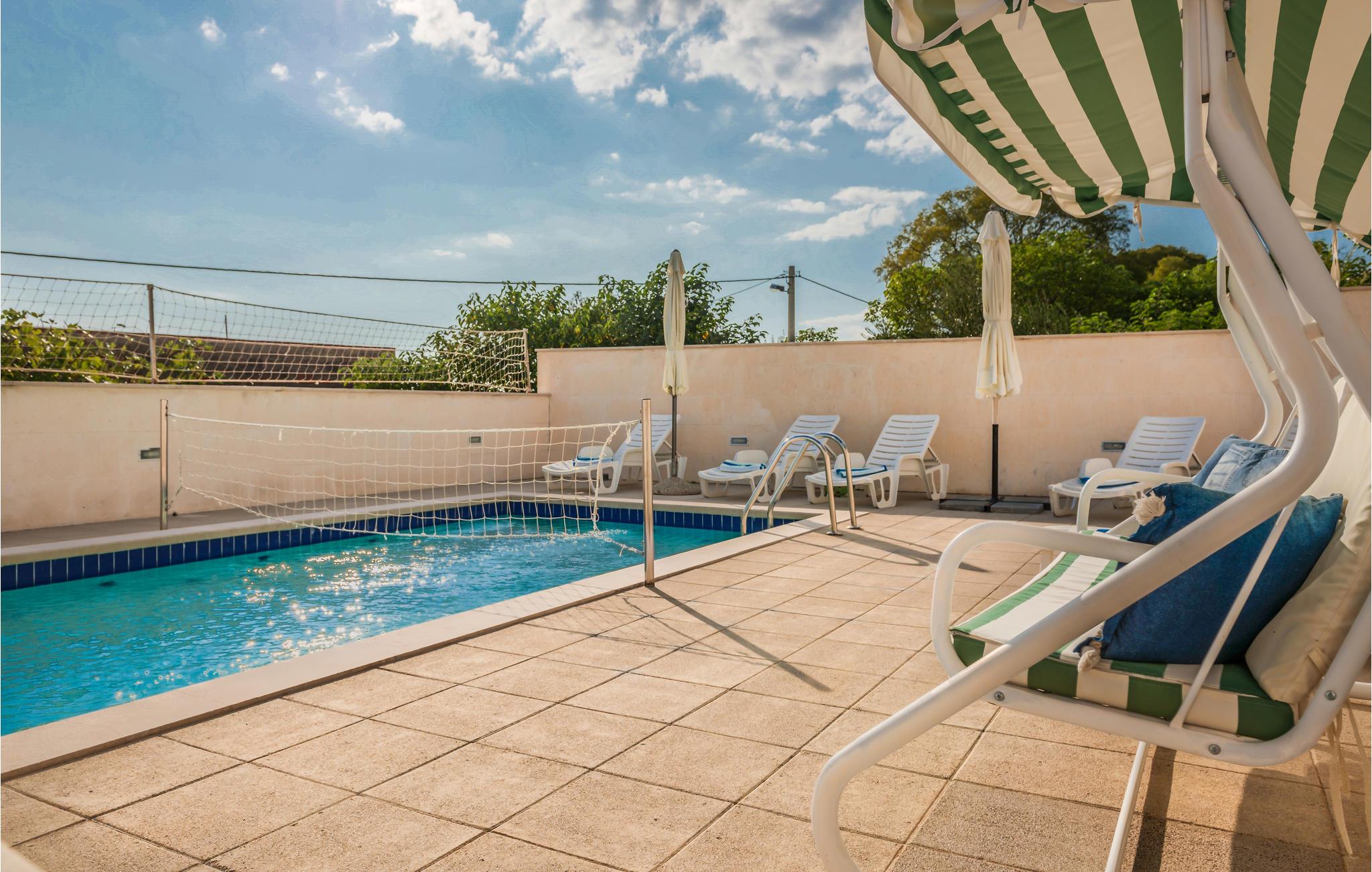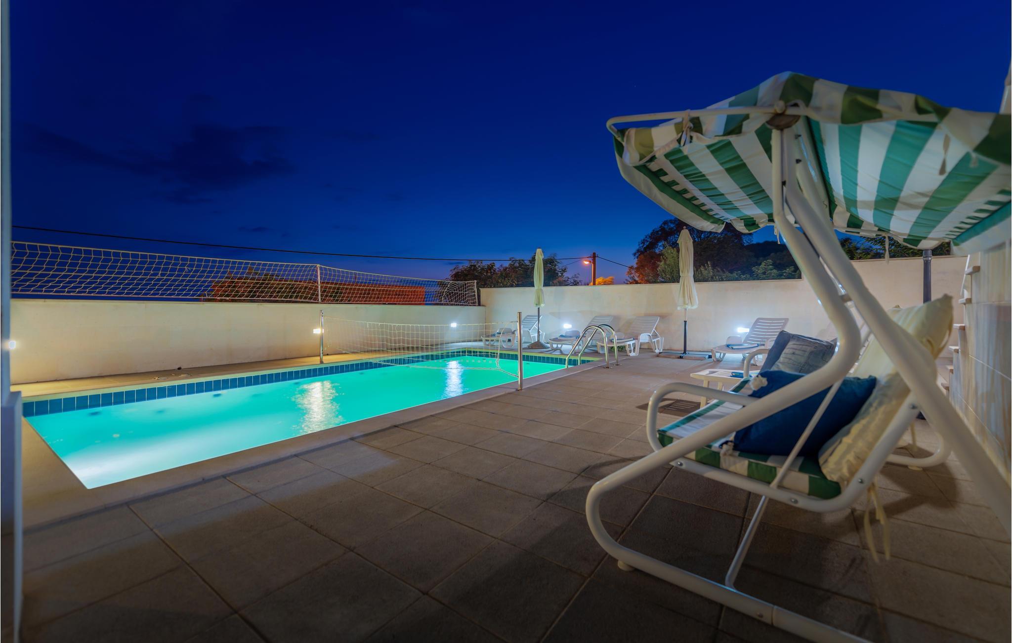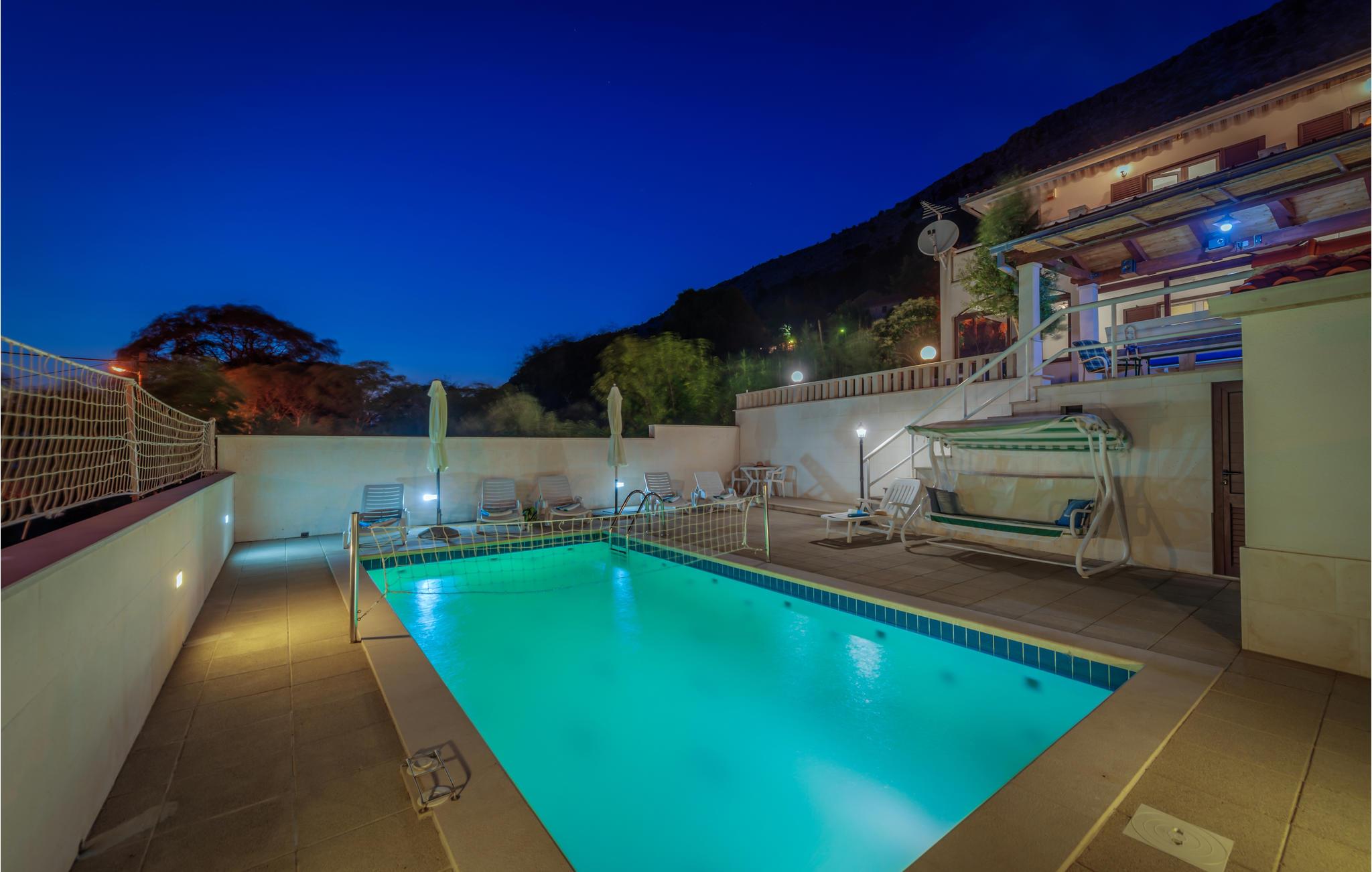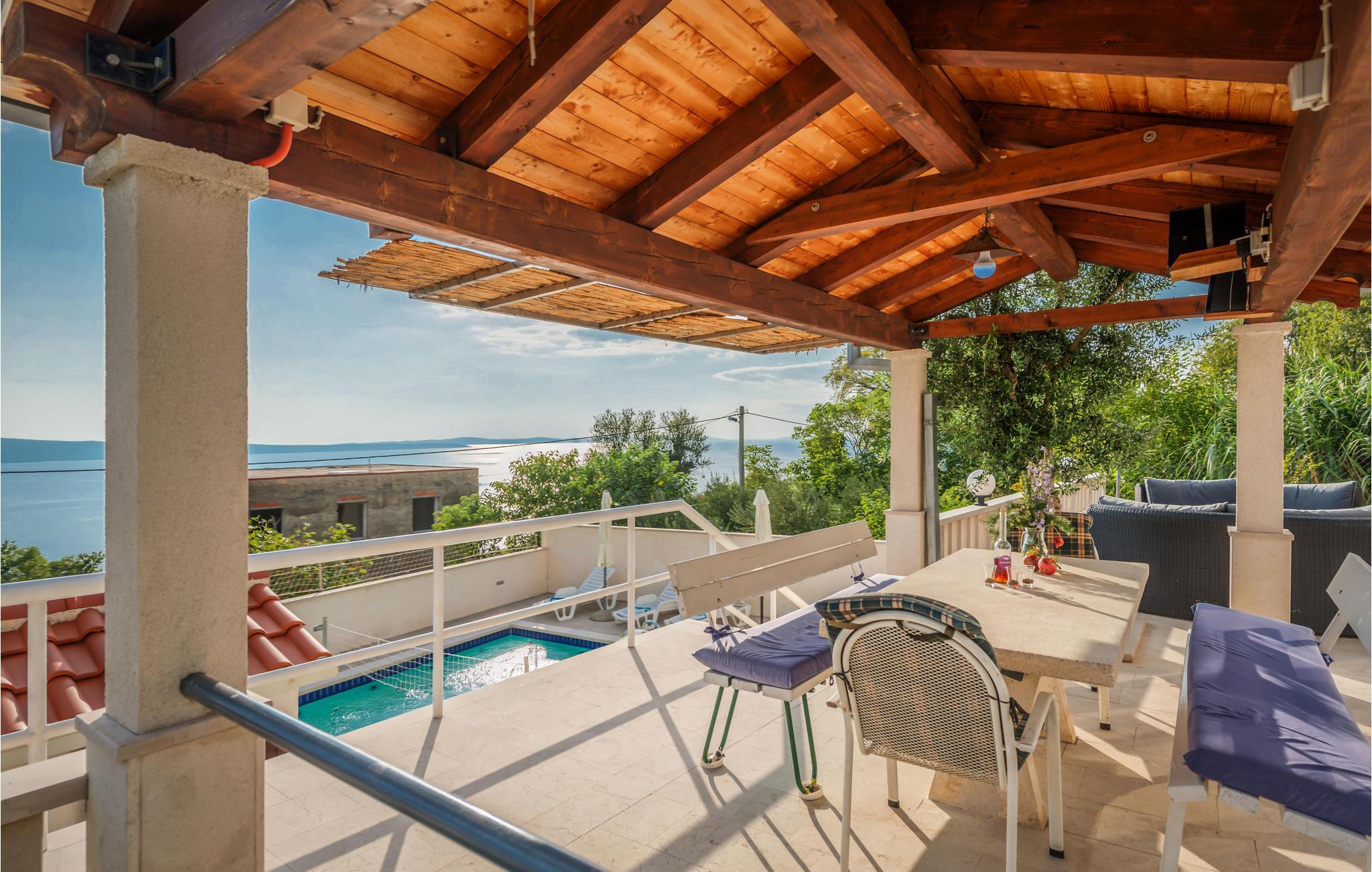 Dette smukke og godt indrettede feriehus på en lille indhegnet grund ligger lige ved foden af bjerget Masor på Omis' riviera. Huset er særdeles veludstyret og komfortabelt indrettet. Og det er ikke kun familien med børn, der vil føle sig godt tilpas her, for der er et væld af forskellige fritids- og underholdningsmuligheder med noget for enhver smag: bordtennis, billard, 2 cykler og det dalmatiske spil Balote, som er en kroatisk variant af Boccia. Konditionen kan I holde ved lige på kondicyklen. I swimmingpoolen, der er oplyst om aftenen, kan I på de romantiske aftener nyde forfriskende svømmeture. Fra altanen og poolterrassen åbenbarer sig en fantastisk udsigt til det omkringliggende kystlandskab - stedet er et ferieparadis par excellence. Den direkte udgang til havet er ikke nem, men med få minutter i bil kommer I til den skønneste kiselstrand. I området finder I et væld af gastronomiske tilbud.