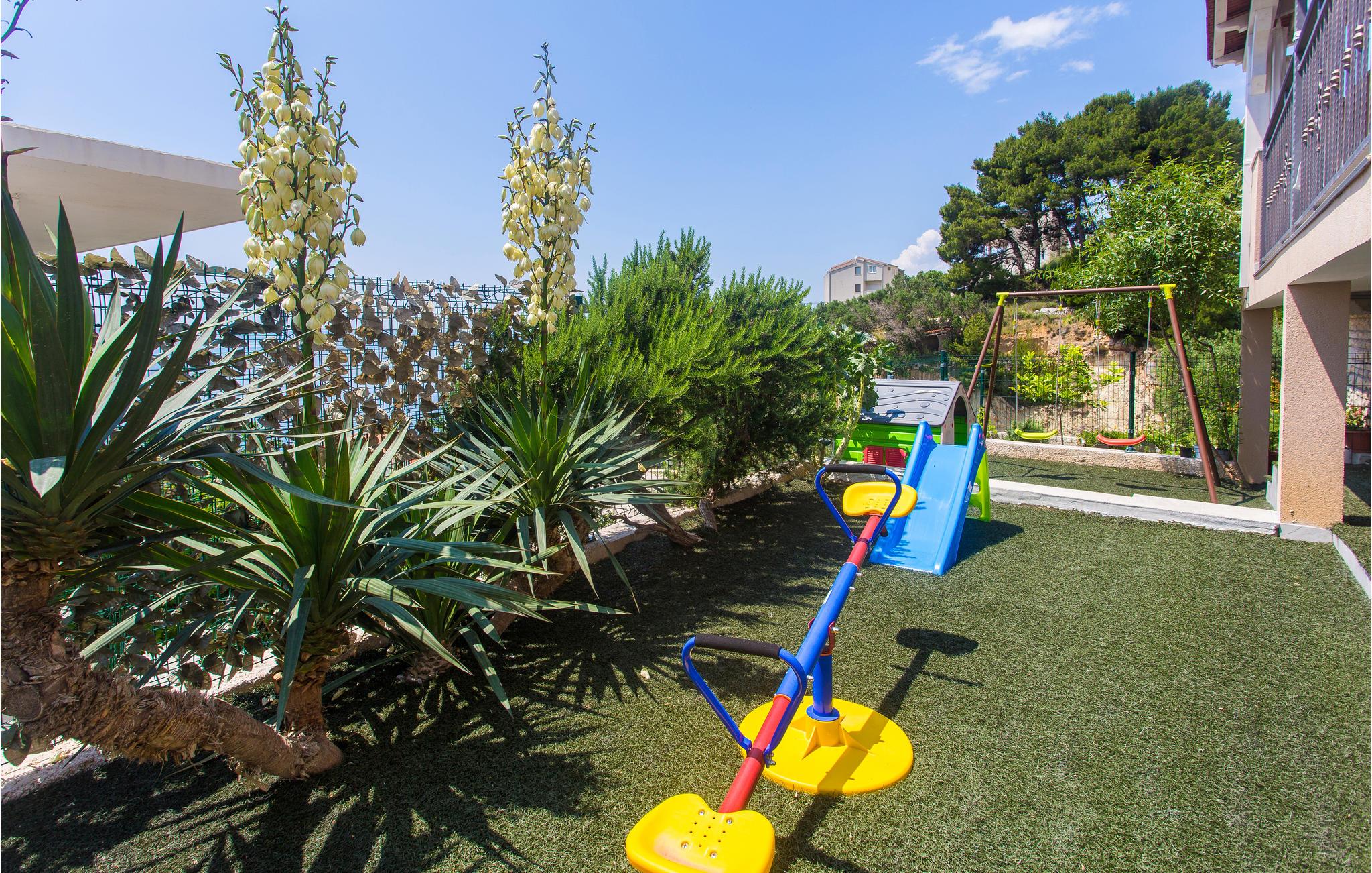 Pak en strandtaske og tag ned til stenstranden, som stort set begynder lige uden for døren. Dyk ned i det blå hav og nyd nogle afslappende timer ved vandet, hvor I kan snorkle eller lægge jer til rette i solen på stranden.