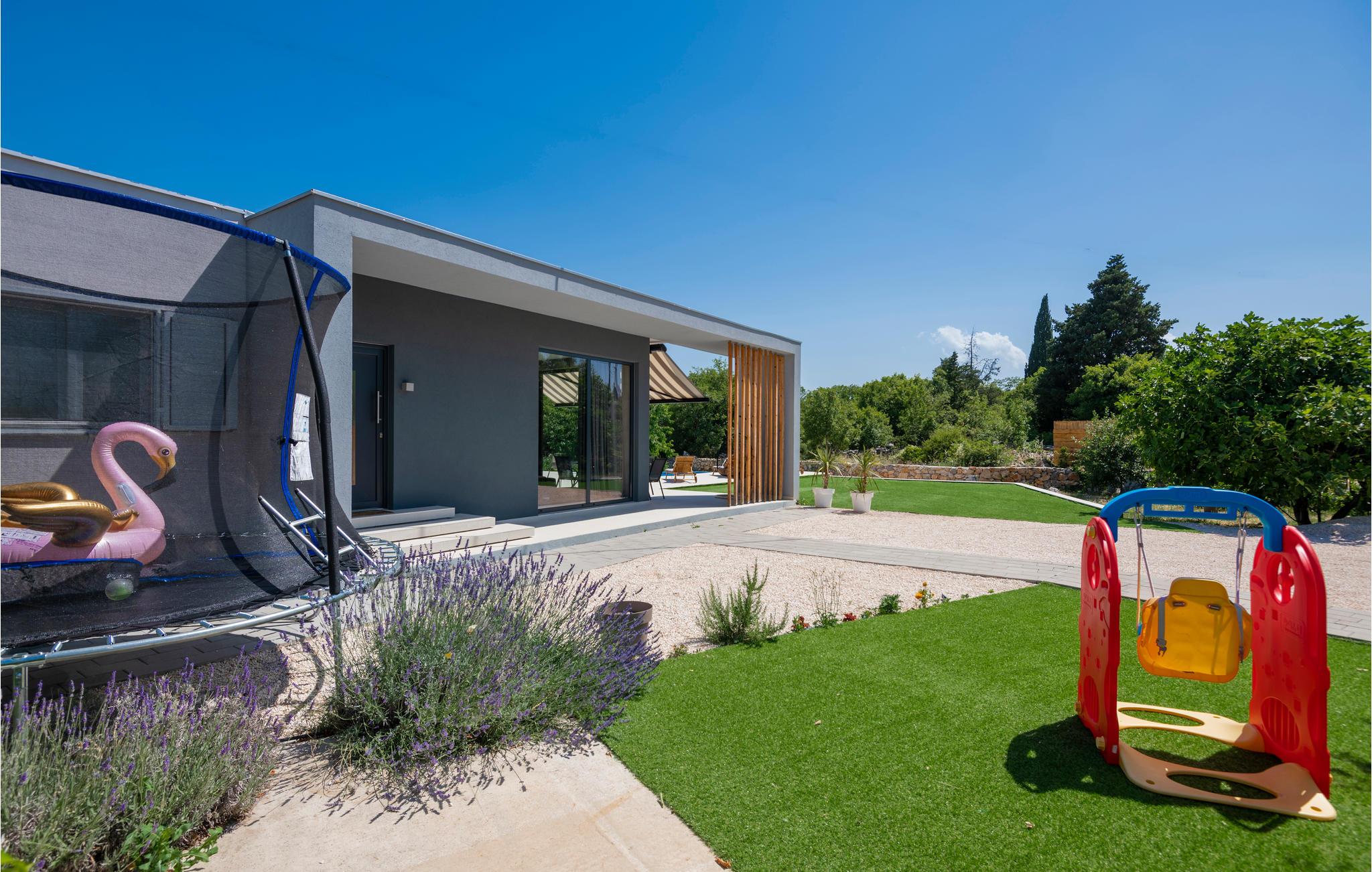 Børnene kan bruge alt deres krudt i haven, hvor den rummelige overløbspool er det absolutte højdepunkt for dit ophold.