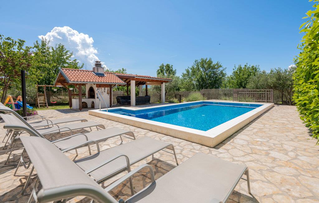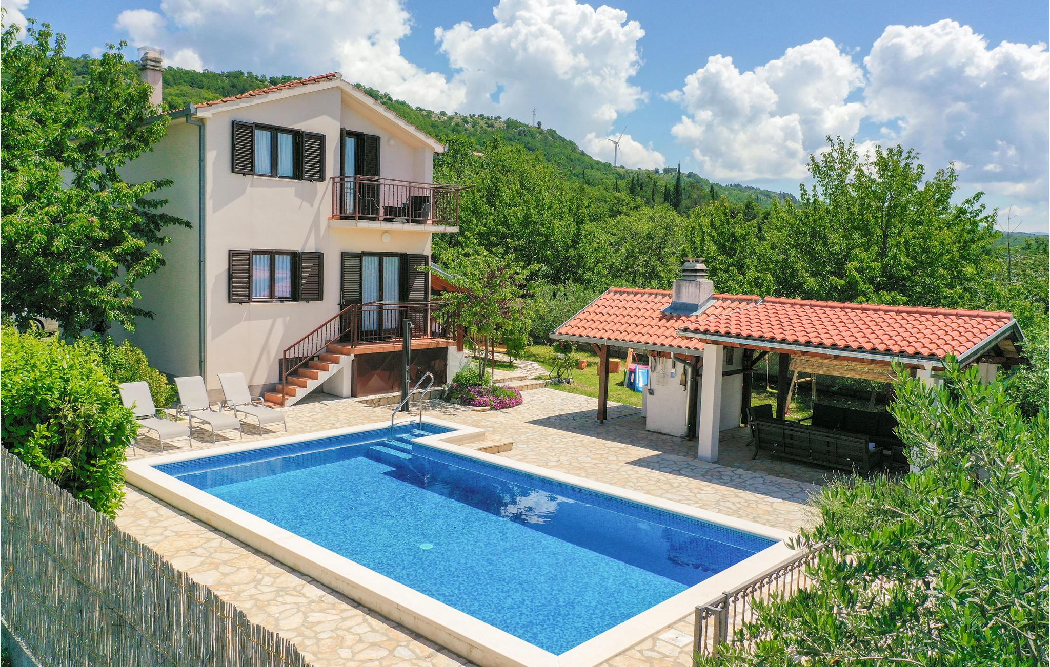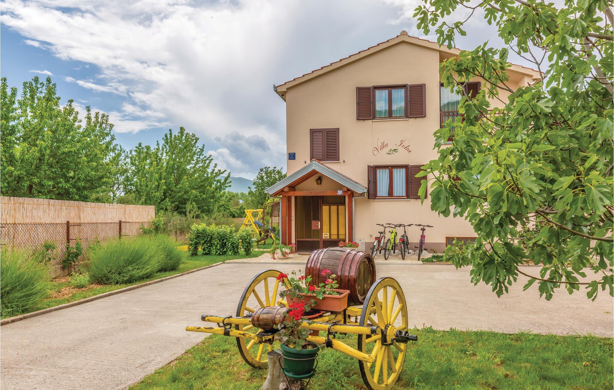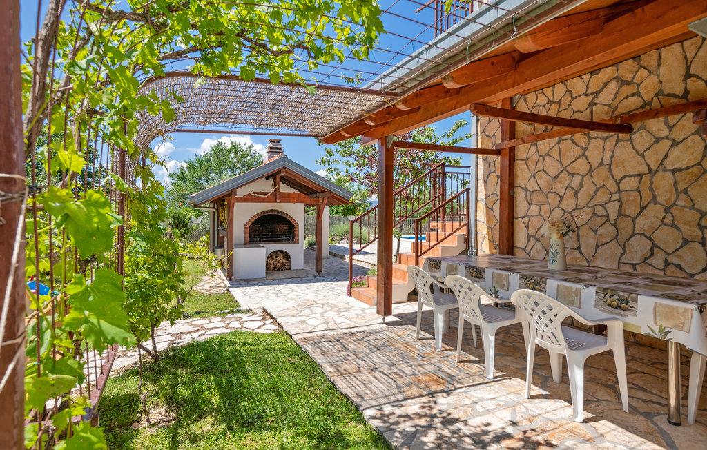Dette dejlige feriehus ligger i den lille by Katuni, i Omis bagland og huset er fordelt på to boligenheder forbundet med en indre trappe. Huset ligger i en skøn have med planter og blomster. Foran huset ligger den luksuøse swimmingpool, en overdækket terrasse med grill og legetøj, hvor I kan slappe af og nyde ferielivet. Den kendte canyon med floden Cetina, kiesstrand og restaurant ligger blot to km væk. Her kan I prøve at rafte og sejle kano. På kun en halv time i bil kommer I til de skønne strande ved Omis riviera. Lad sjælen tage på langfart i dette naturparadis.