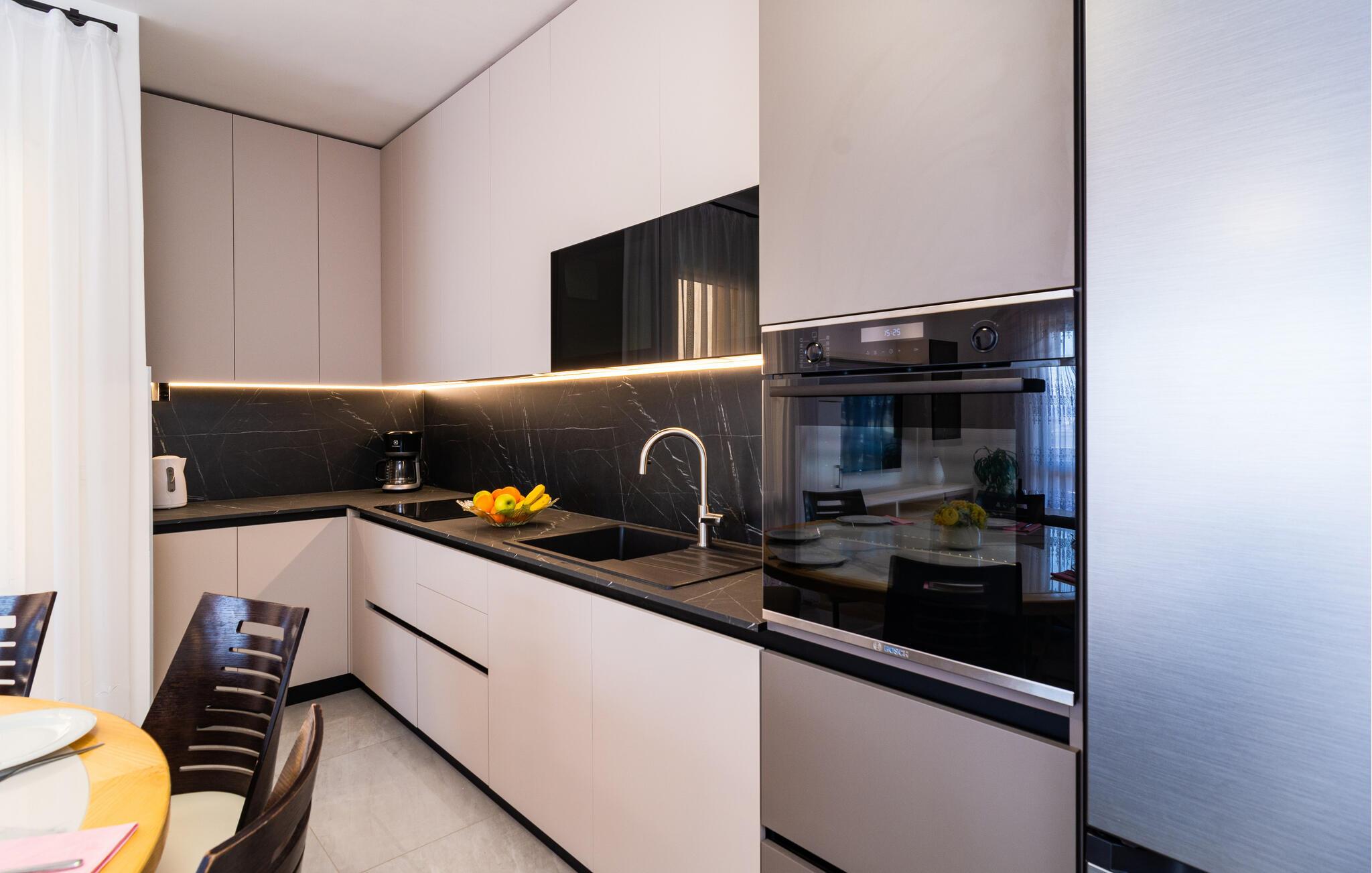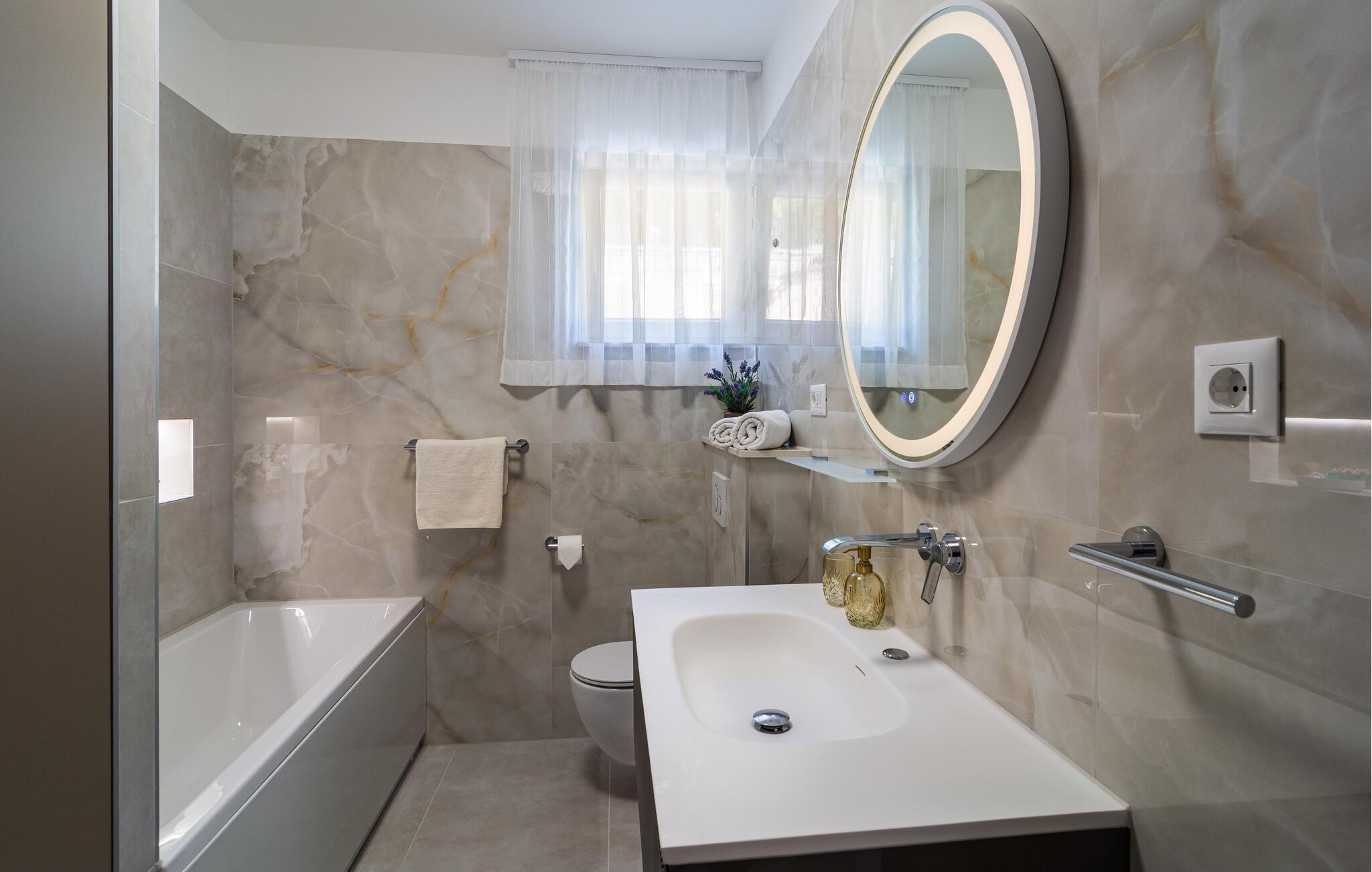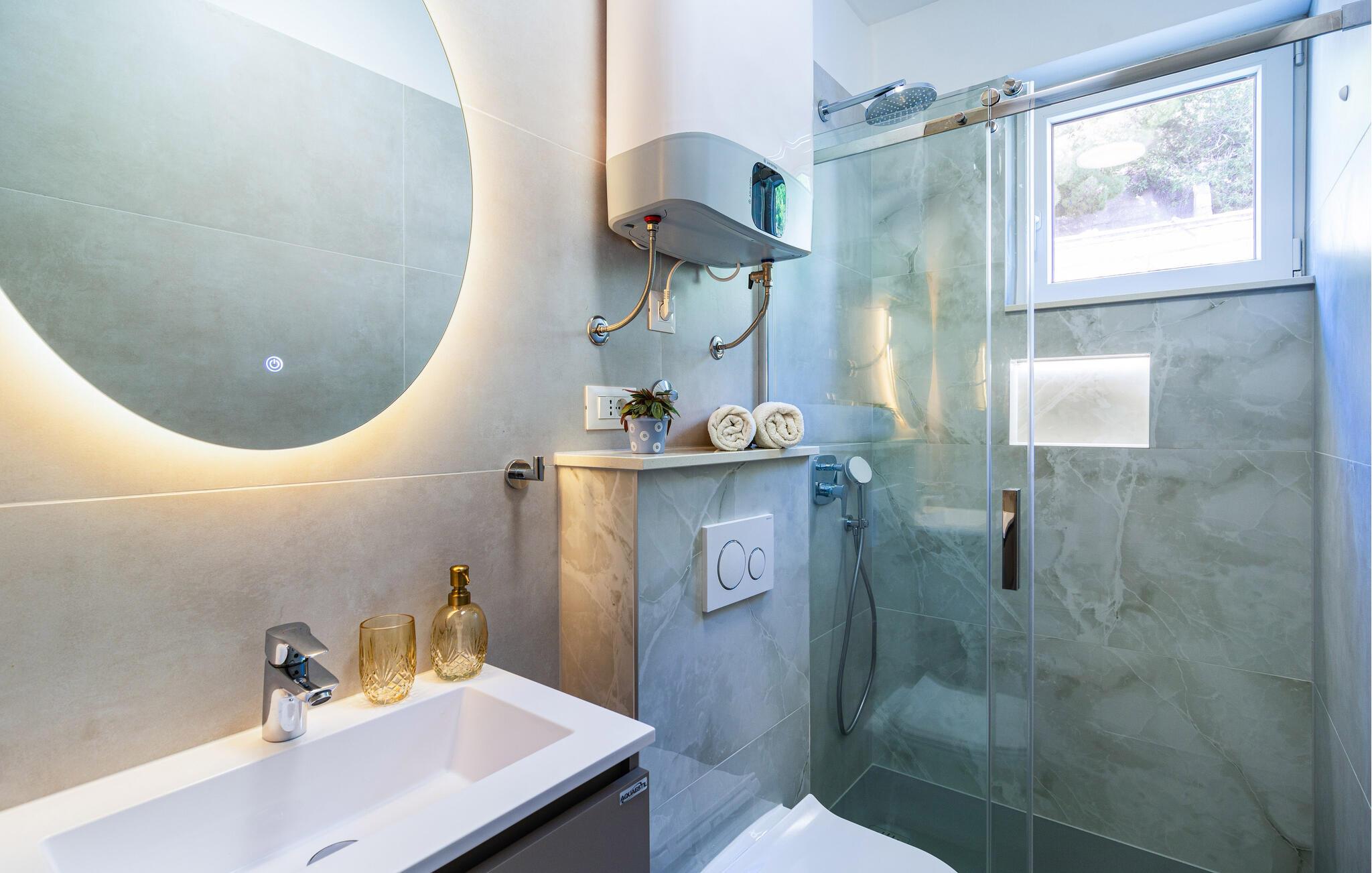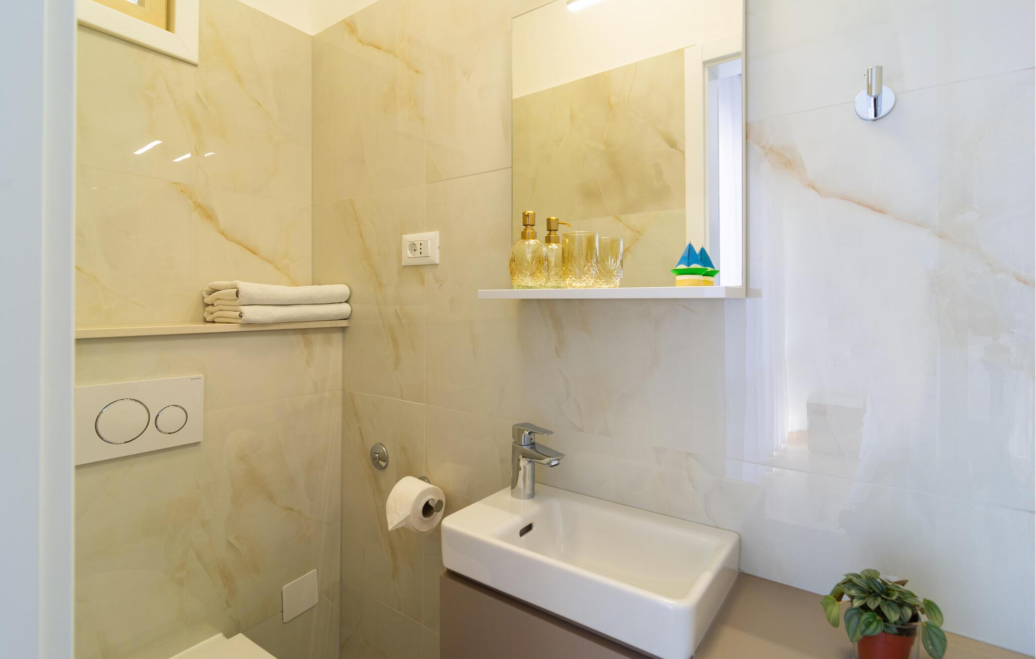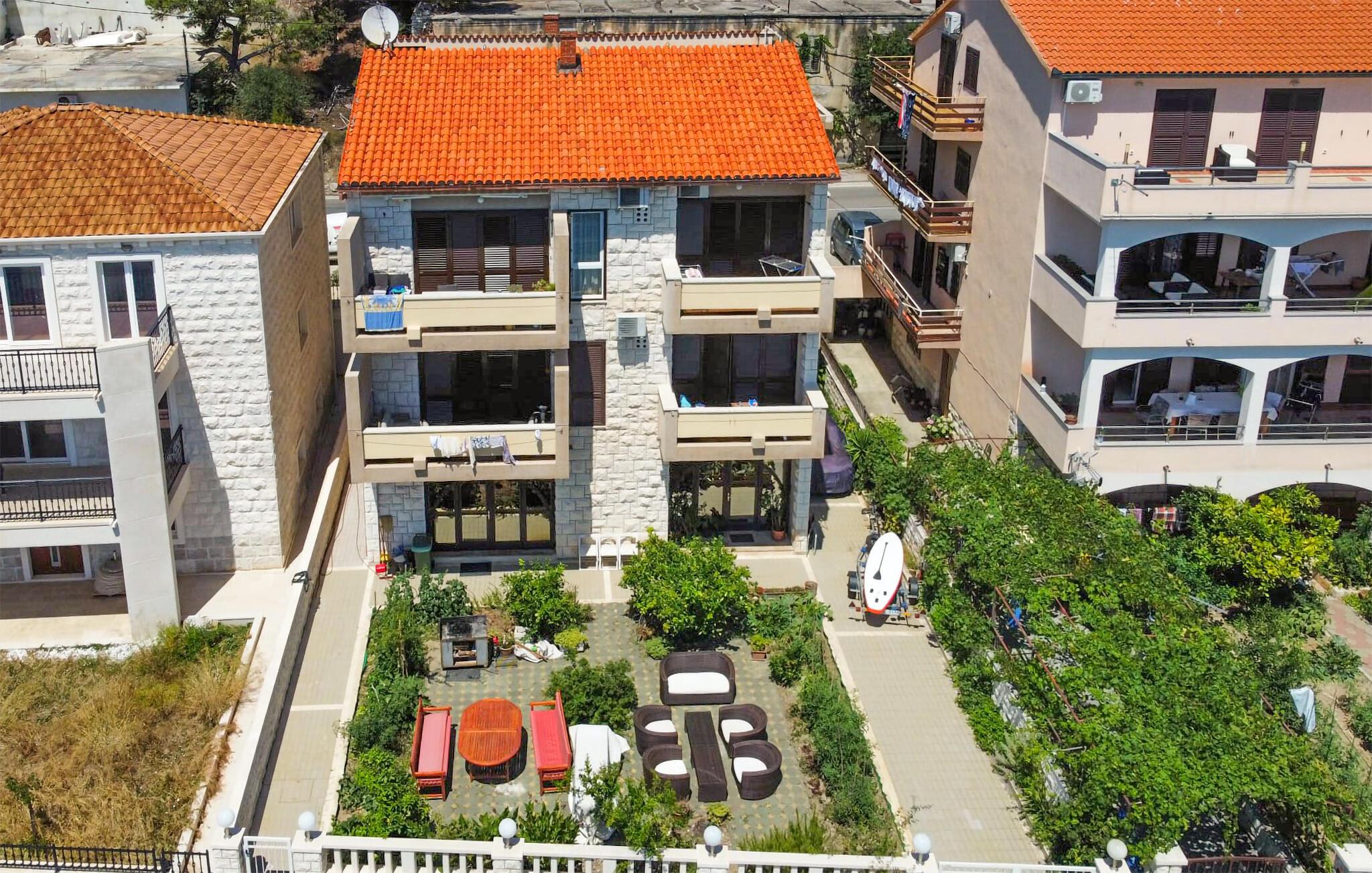 På promenaden i den hyggelige kystby Krilo Jesenice ligger denne store og enkelt indrettede ferielejlighed.
